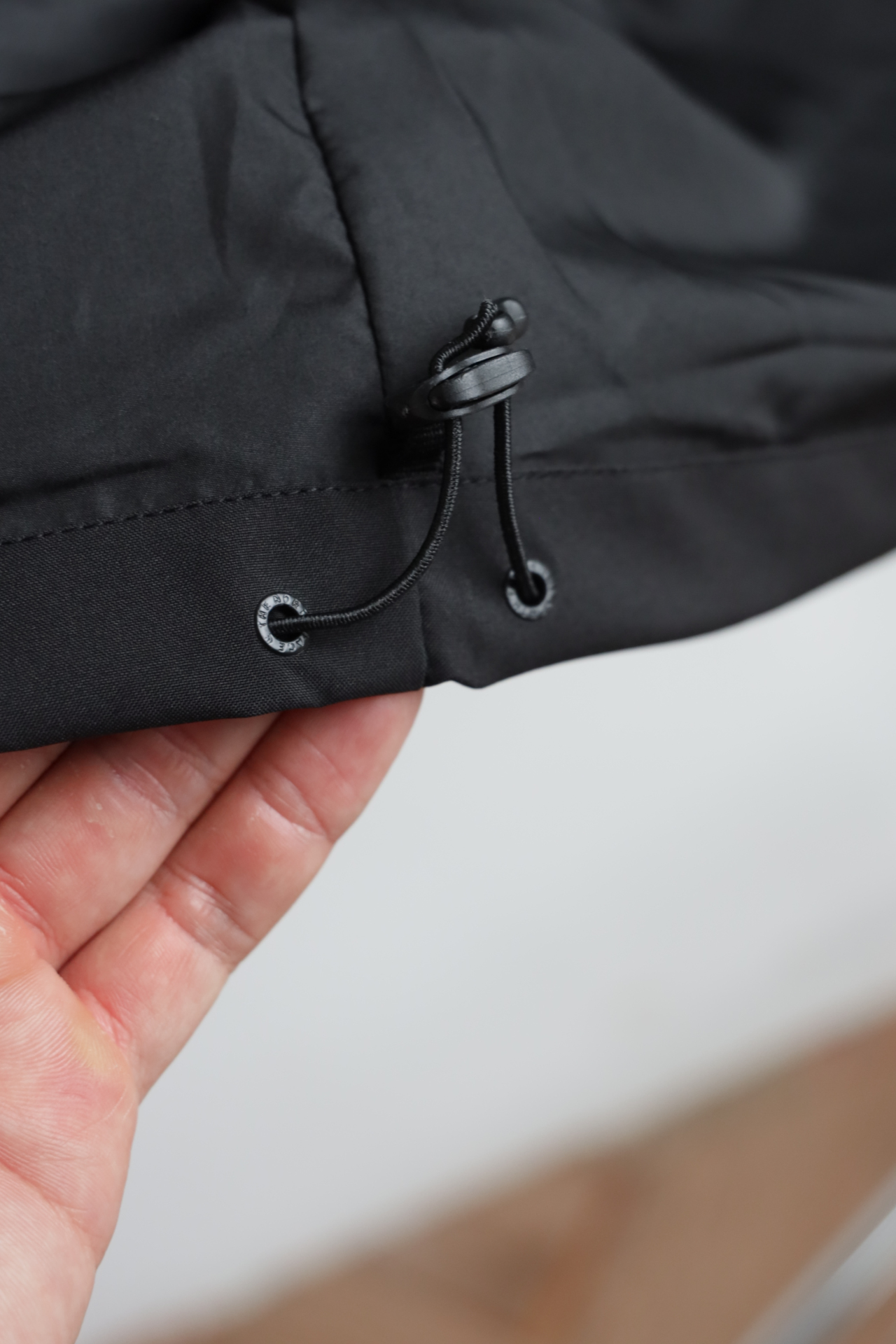 科技梭织面料,经过windstopper防水处理,复合微孔结构,双重稳固防水性能。