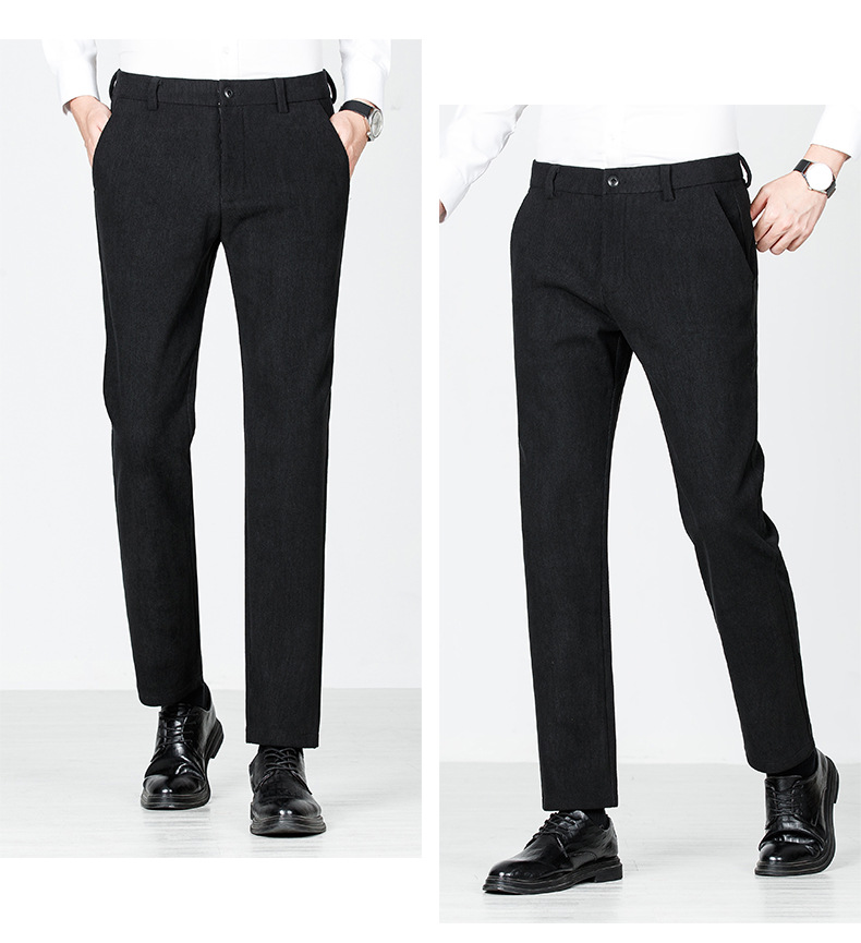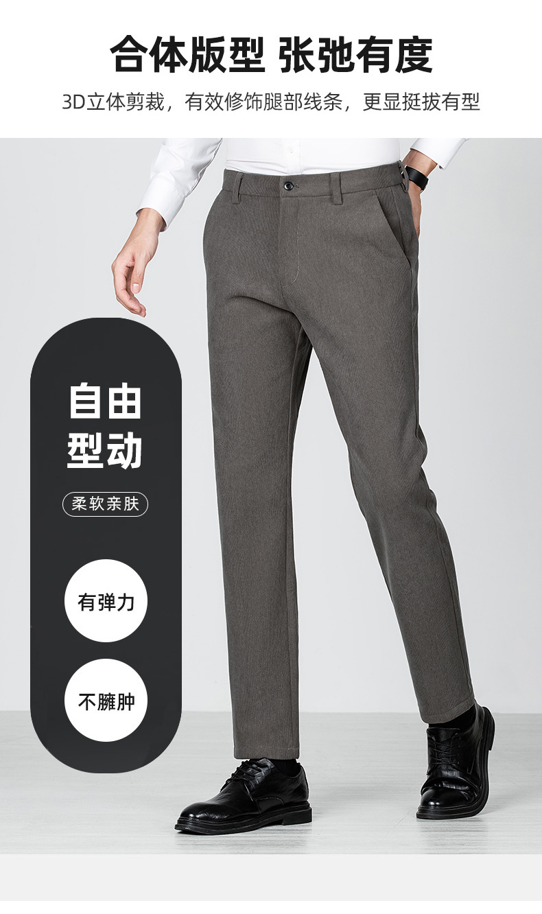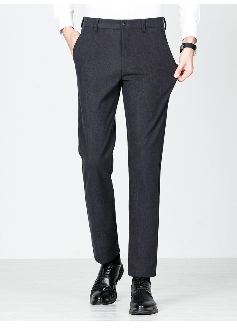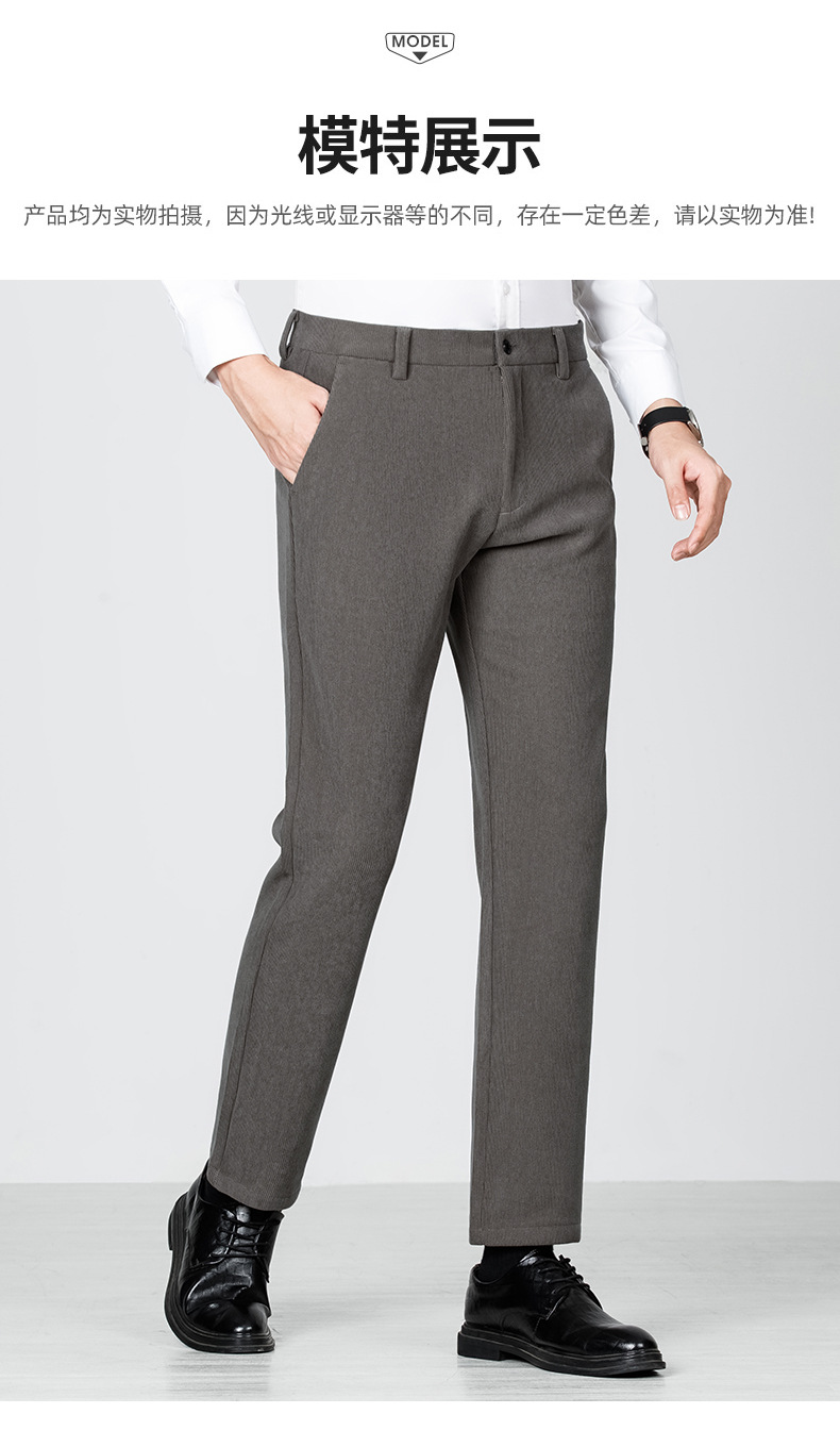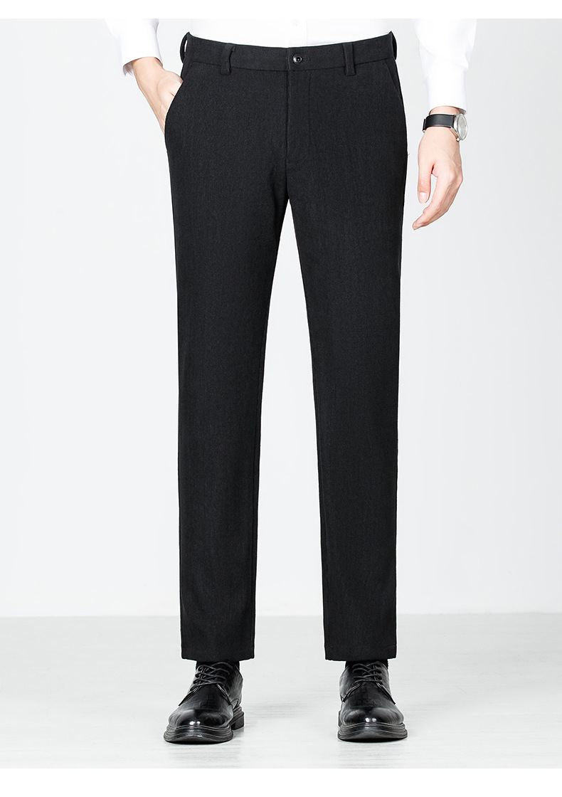 绵羊毛男士休闲裤秋冬新款直筒易打理纯色休闲西裤加绒加厚长裤男💕
