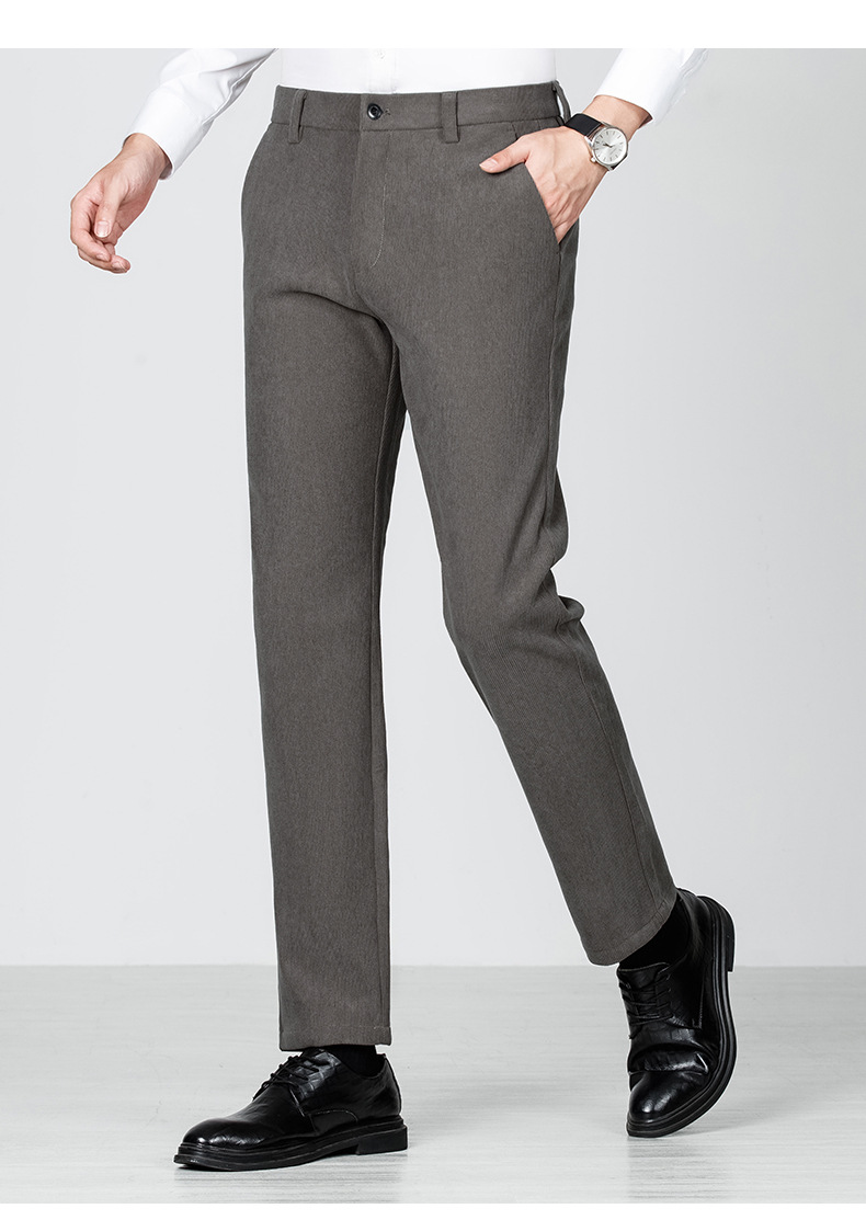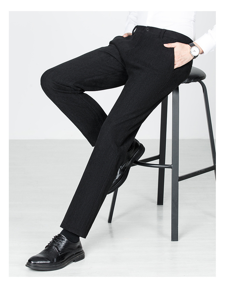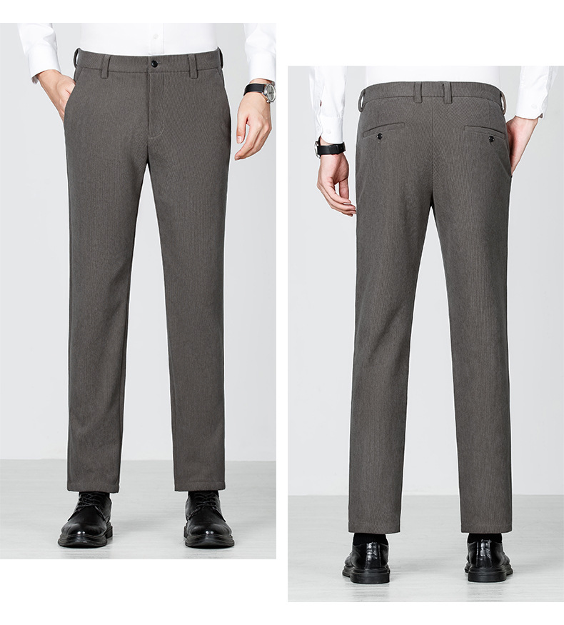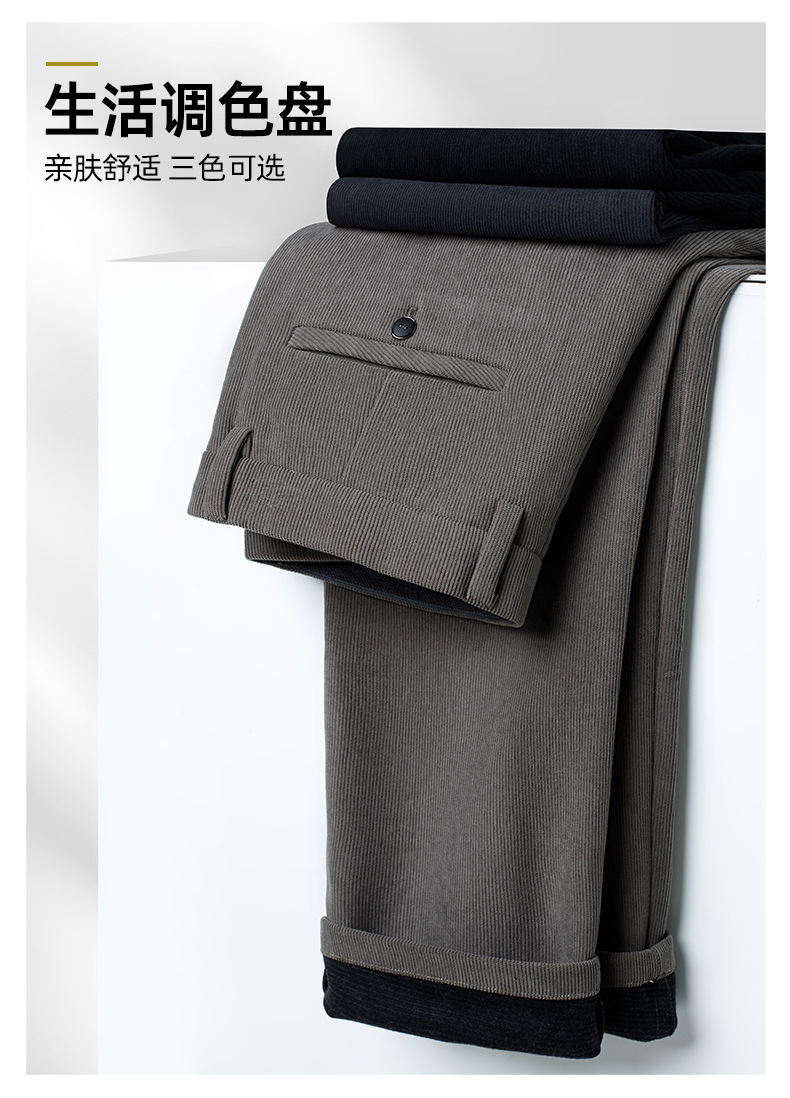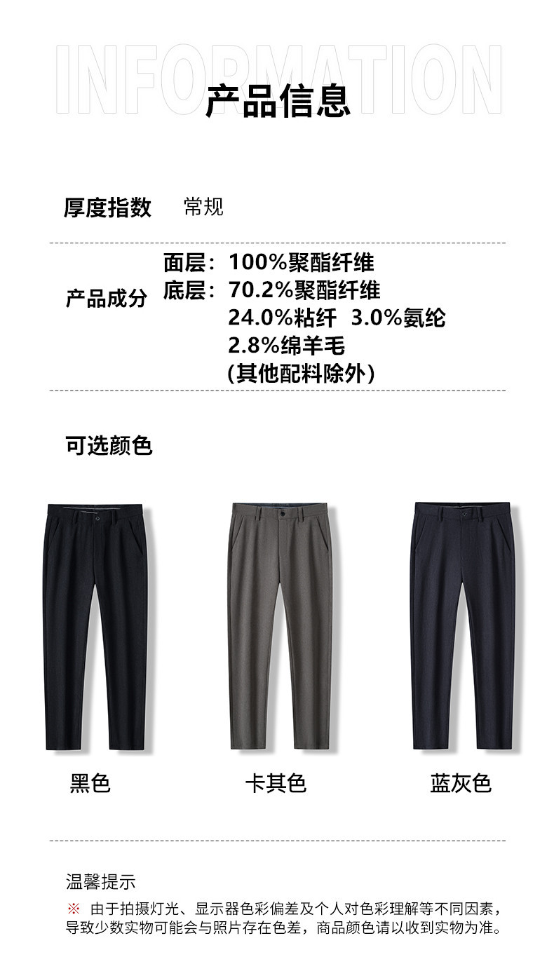 绵羊毛男士休闲裤秋冬新款直筒易打理纯色休闲西裤加绒加厚长裤男💕