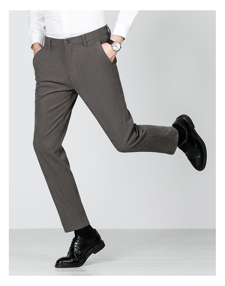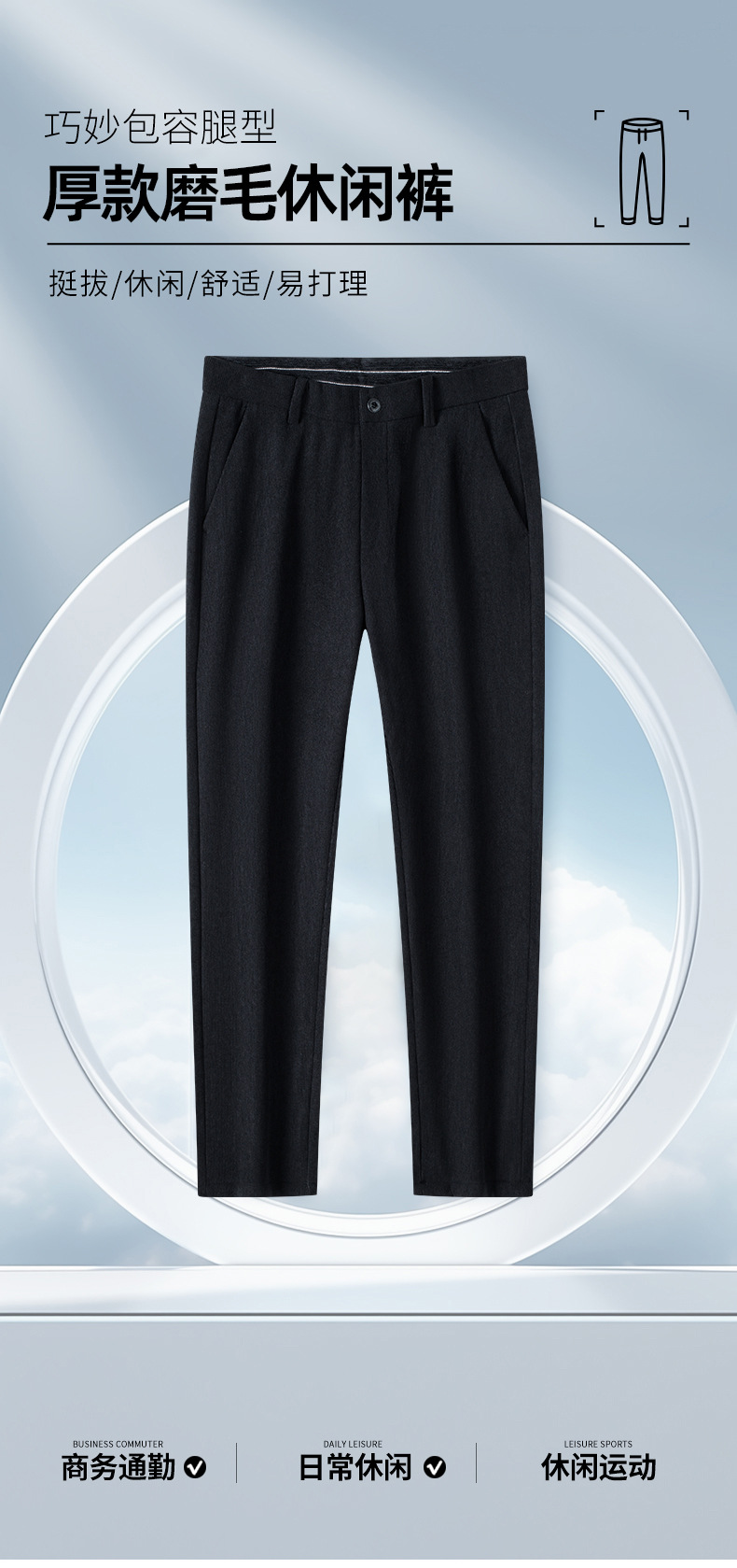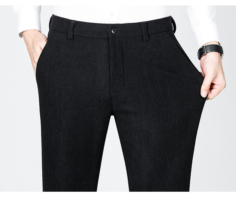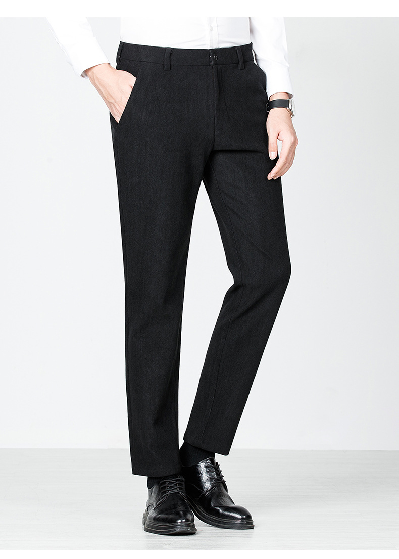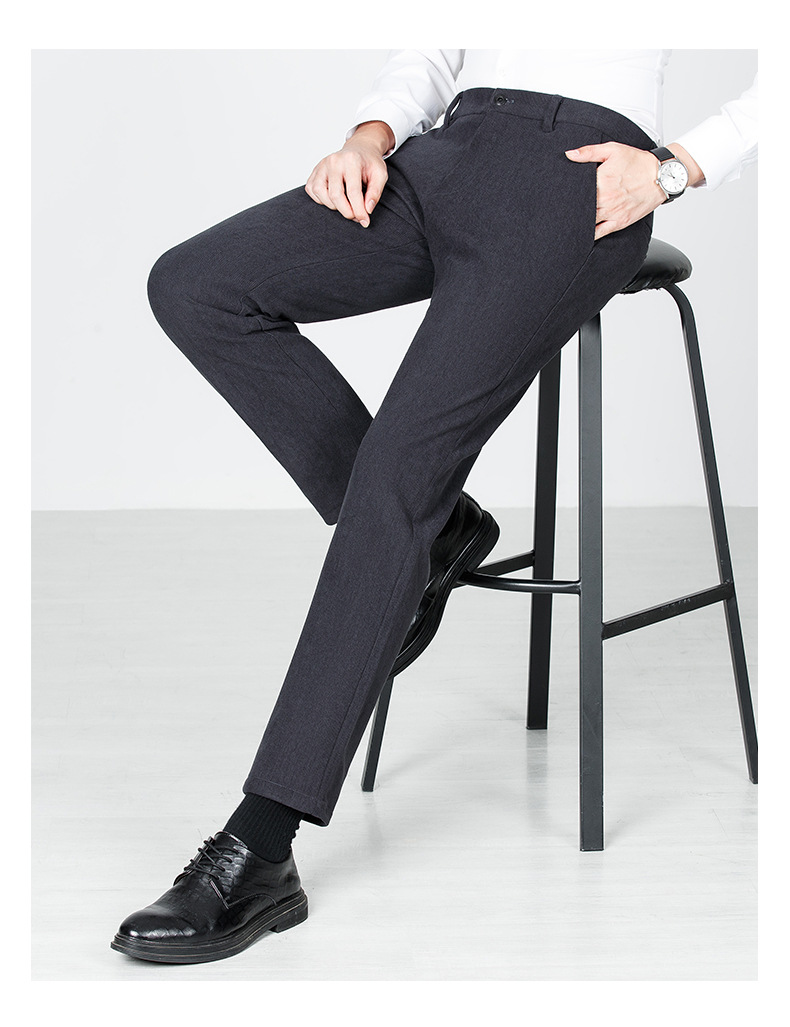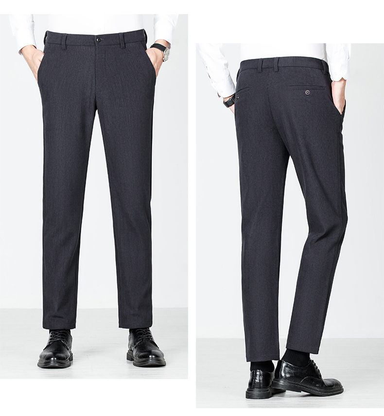绵羊毛男士休闲裤秋冬新款直筒易打理纯色休闲西裤加绒加厚长裤男💕