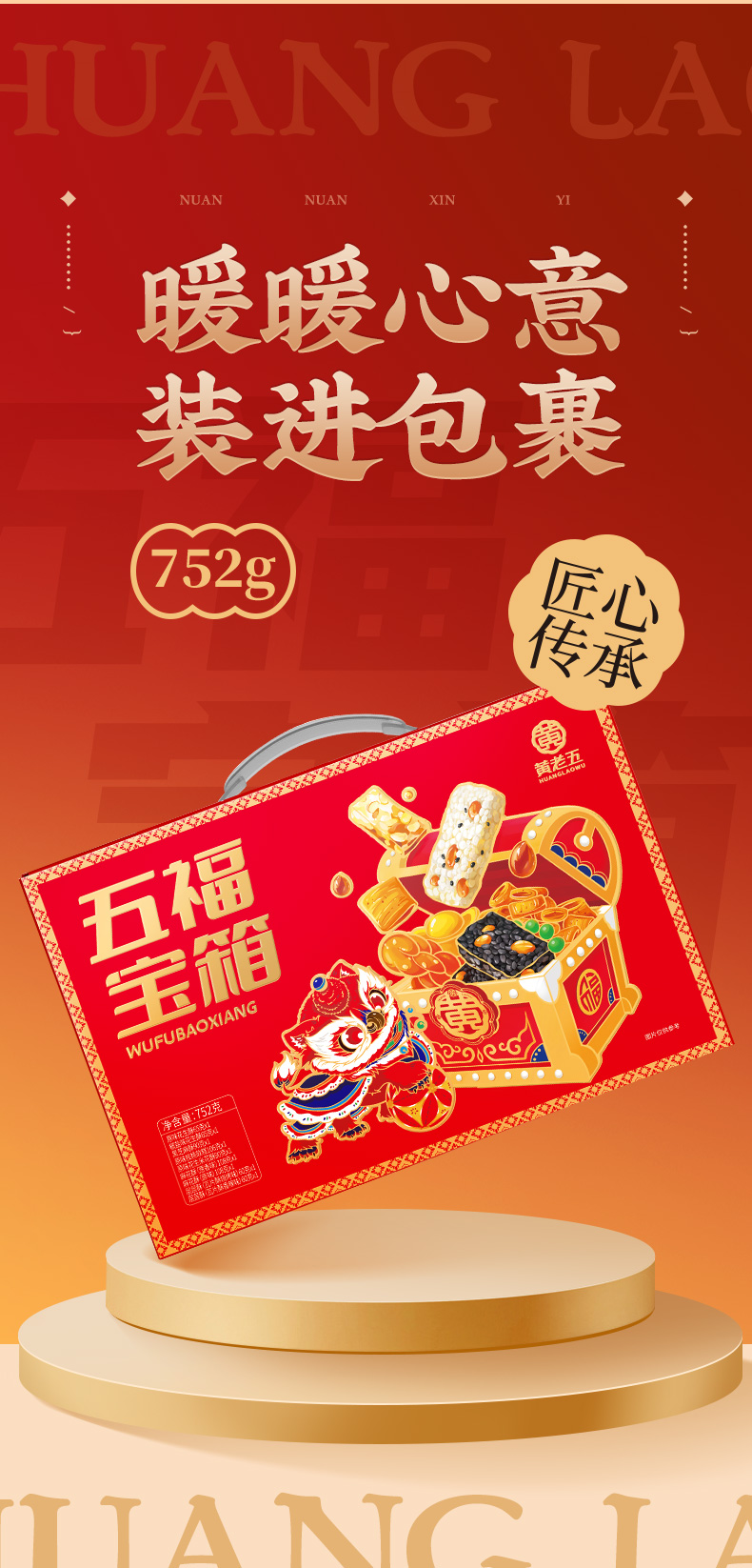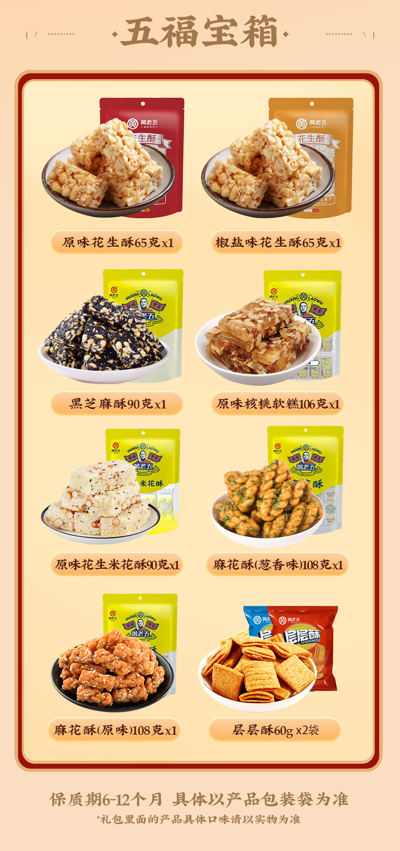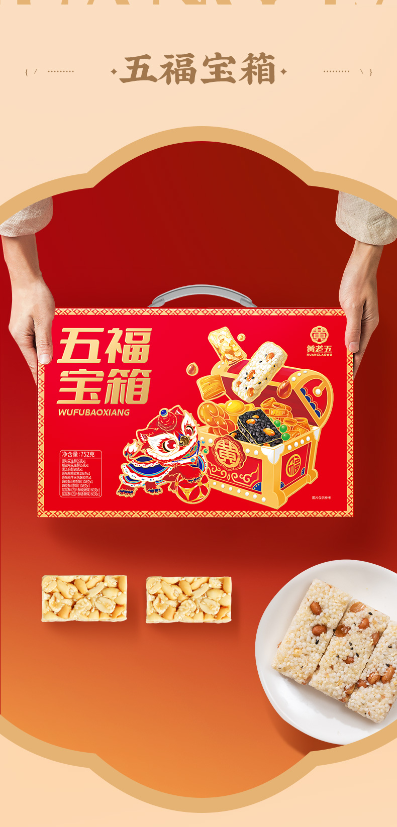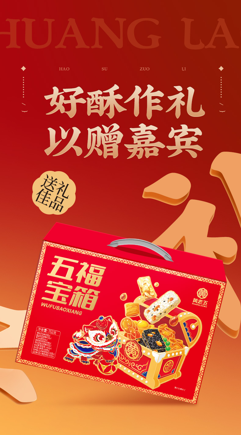 [屁侠推荐]黄老五 五福宝箱752g 多种零食礼盒装 9袋装