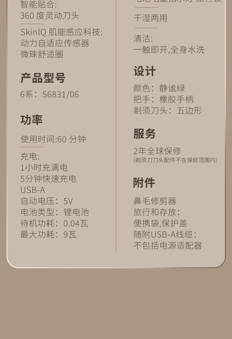 【6F】飞利浦云感6pro剃须刀SW6931/12