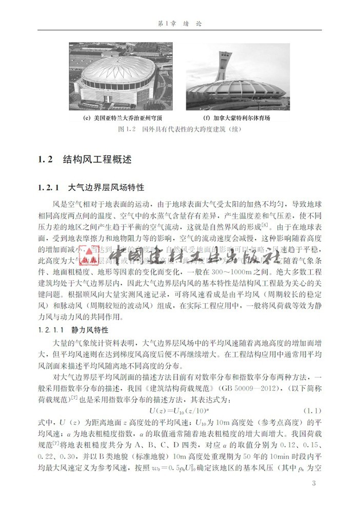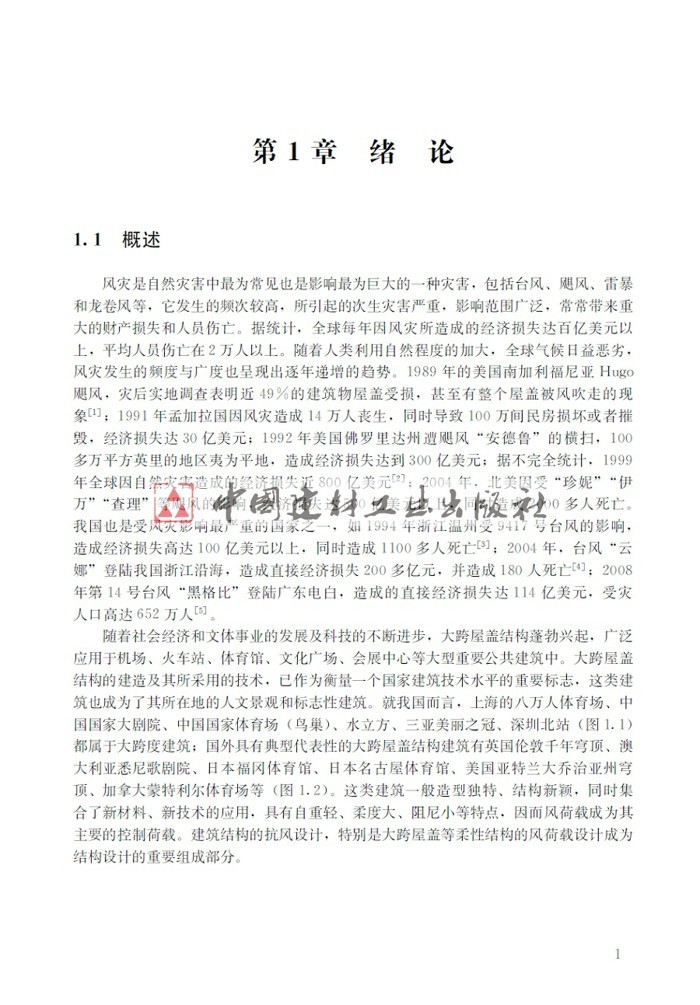 随着社会经济的发展和科技的进步,各种造型独特、结构新颖的大空间结构建筑大量涌现。其中,大跨屋盖结构因其具有优美的造型和良好的性能,被广泛应用于各种大型公共建筑中。这些建筑物大多具有质量轻、柔性大、阻力小等特点,对风荷载较为敏感,结构设计时往往以风荷载为主要控制荷载。此外,建筑物使用中,部分门窗的开敞或突然开孔导致的内压增大对屋盖结构的安全也会产生较大的影响。大量风灾调查表明,屋盖结构的风致破坏在很大程度上都是由于内外压的联合作用所引起的。然而,目前人们对建筑物内压变化的产生机理及评估尚处于研究阶段,在进行结构的抗风设计时,国内外现行荷载规范仅提出了名义封闭或者开敞时的内压系数建议值。因此,开展屋盖结构风致内压的研究具有极其重要的学术意义和工程应用价值,也是现代结构风工程领域研究的热点之一。
