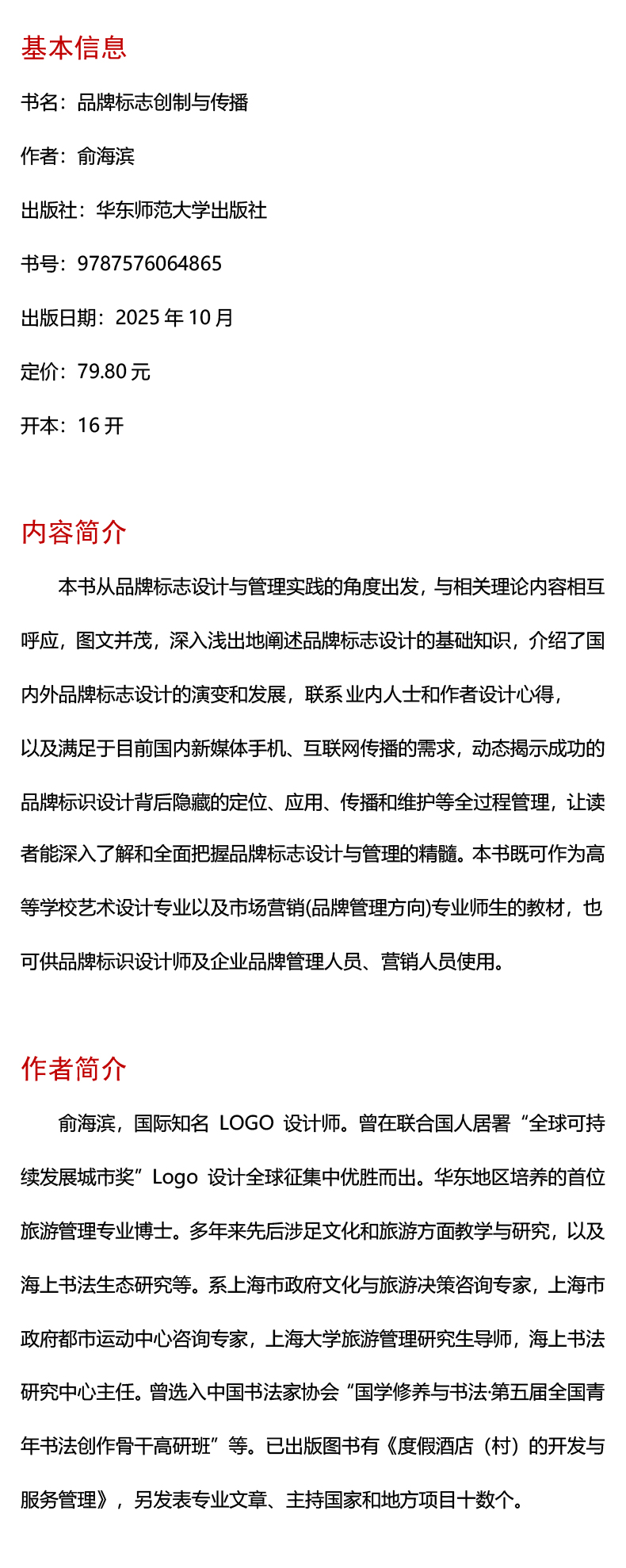 品牌标志创制与传播 俞海滨 高等学校艺术设计 市场营销 品牌管理专业教材