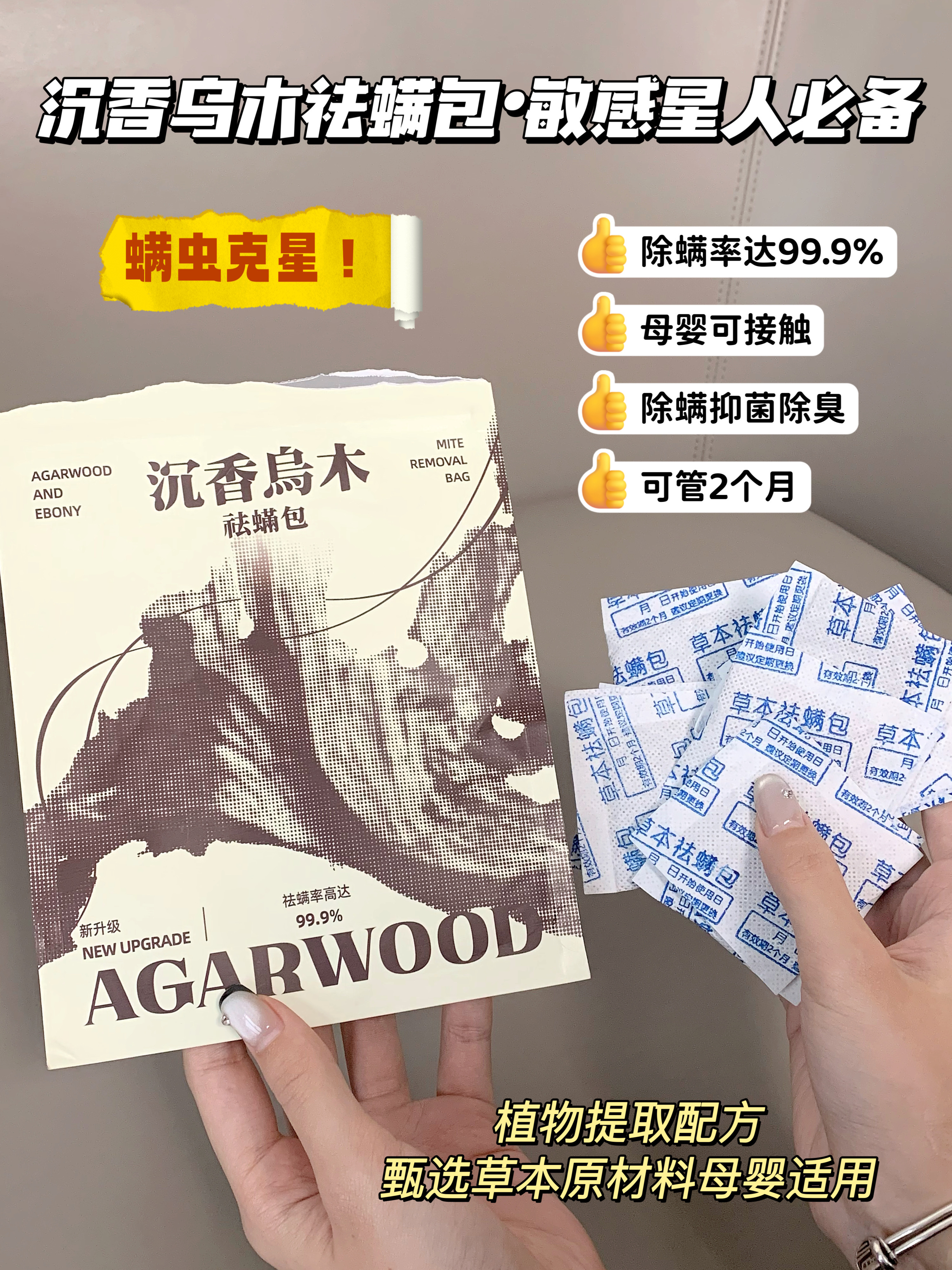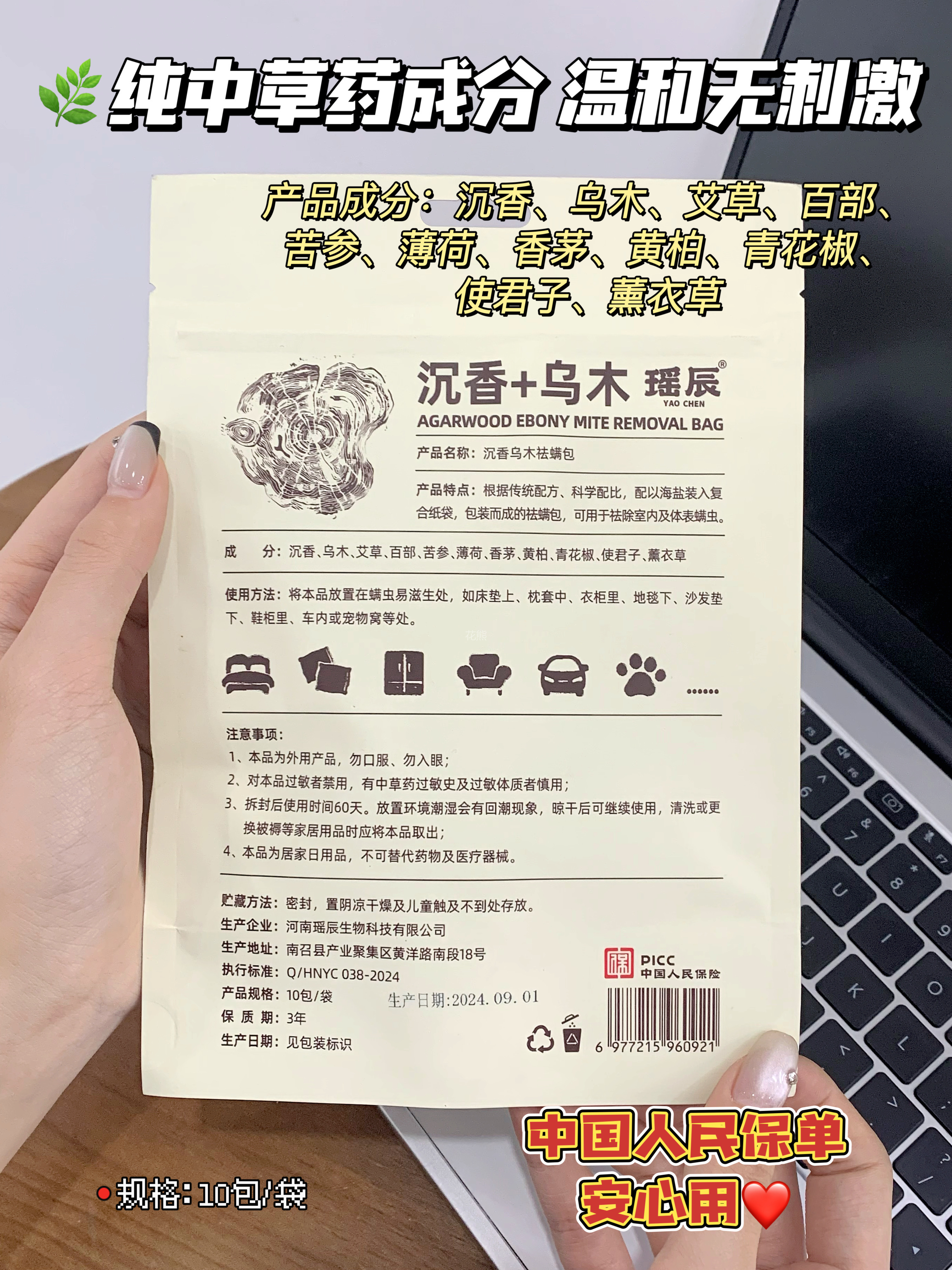 【瑶辰沉香乌木祛螨包】螨虫团得)灭!根源除螨!不含杀虫剂!纯天然草本 驱螨率高达99.9% 不受空间限制 母婴都可以使用 味道是好闻的木质香,空气清新去味有效
