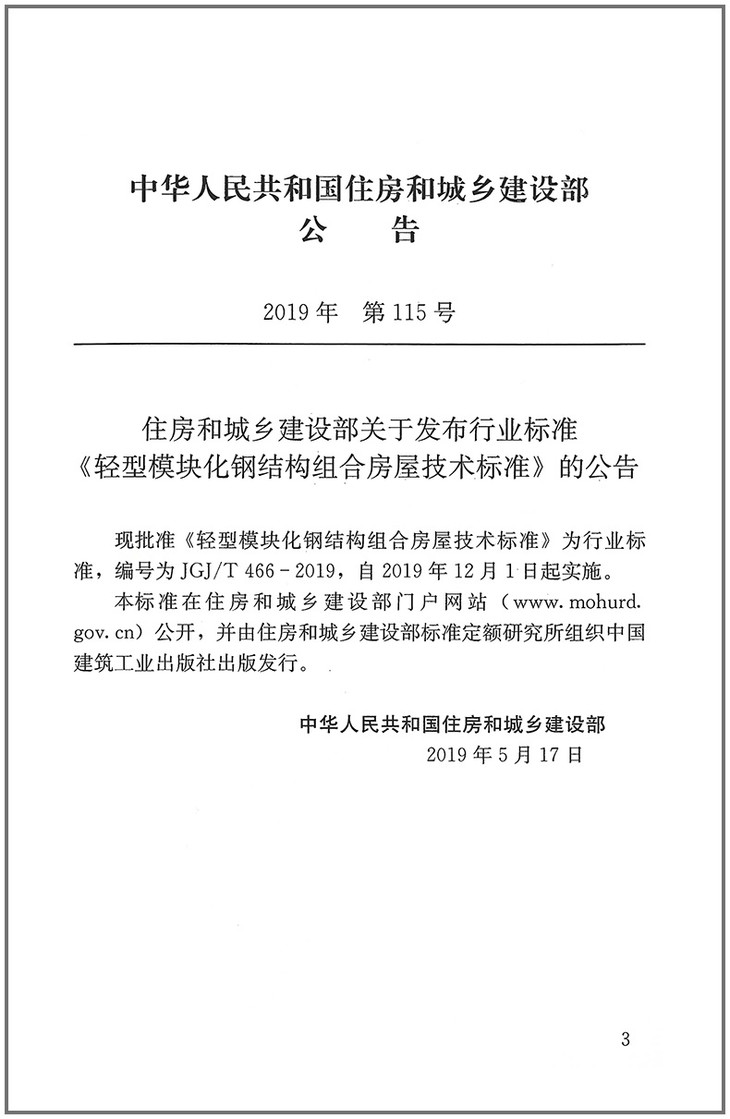 JGJ/T 466-2019 轻型模块化钢结构组合房屋技术标准