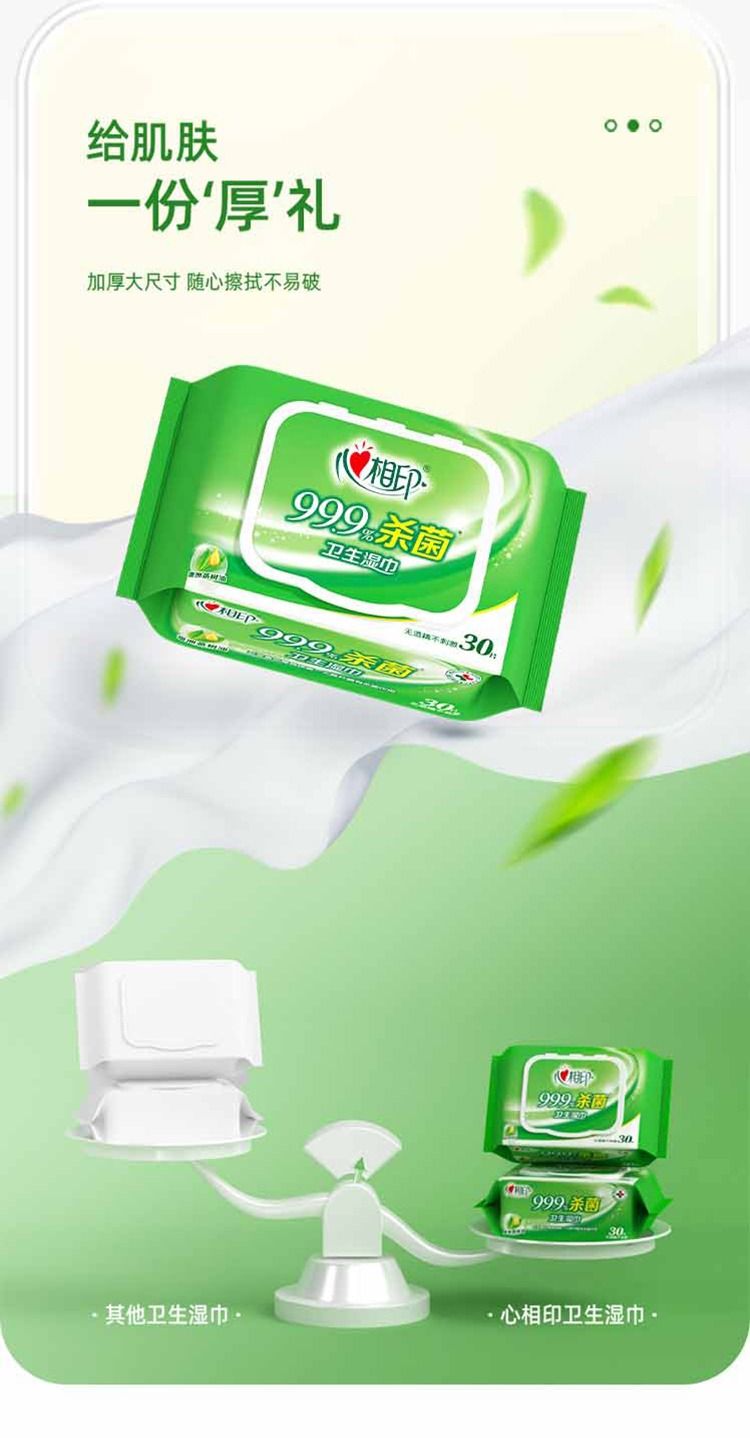 心相印卫生湿巾 不含酒精便携消毒湿纸巾 30片/包