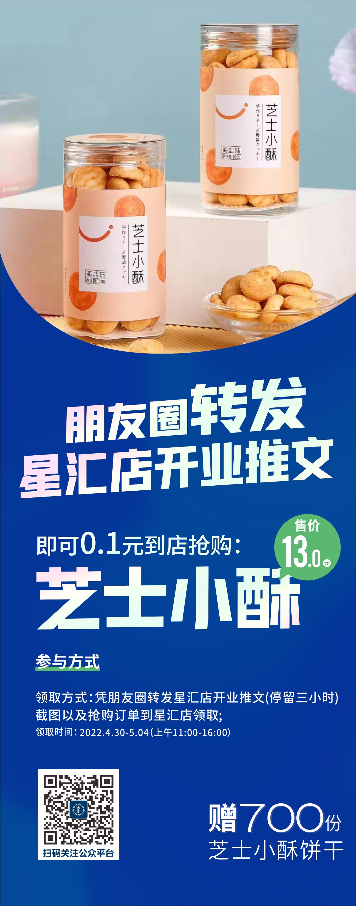 活动要求:转发慕焙滋星汇店开业活动推文到朋友圈公开停留3小时,0.1元领取芝士小酥1盒。仅限在慕焙滋星汇店领取