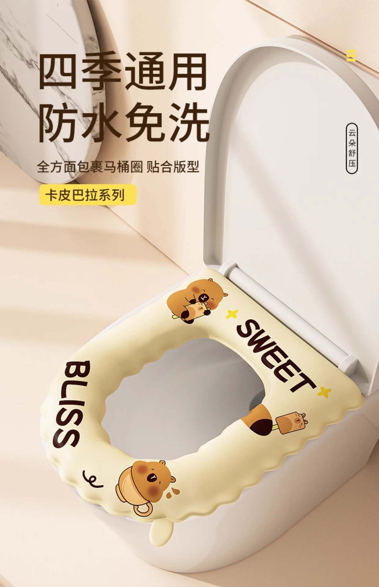 【四季通用❗️加厚防水马桶垫】无惧挑剔享坐“云端,高弹减压贴合臀部,便捷提手开盖不脏手,清水一冲一擦,洁净如新,四季通用新款坐便套垫子冬季加厚绑带款厕所QQ