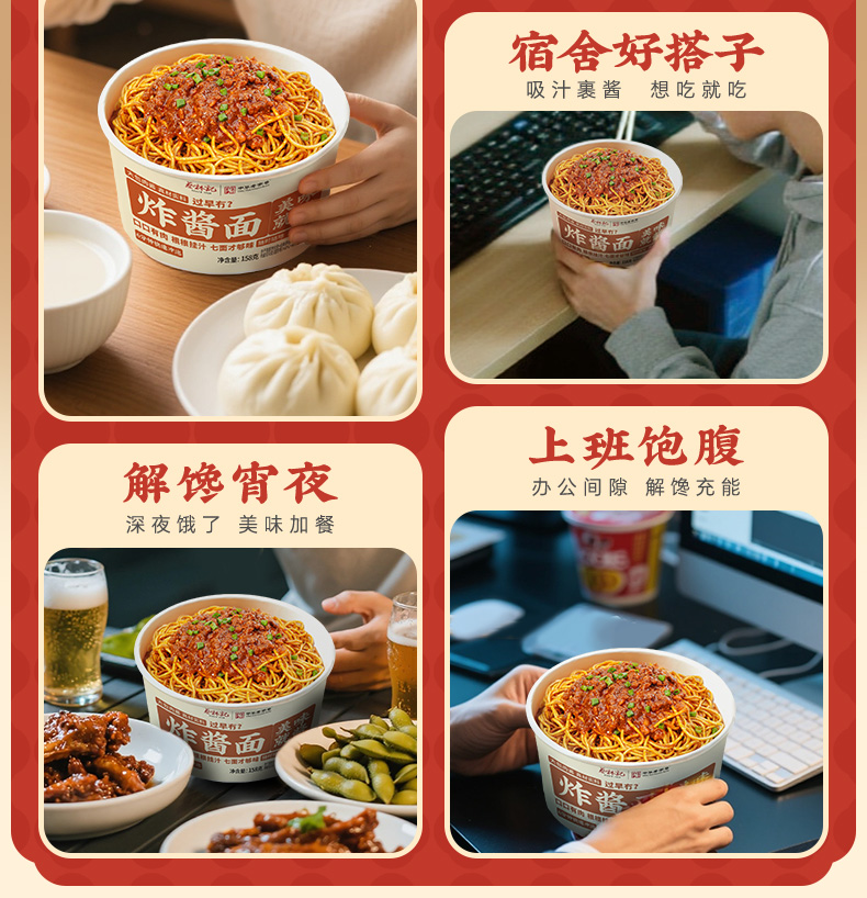 蔡林记冲泡炸酱面158g*4盒湖北特产方便面含酱料包懒人速食早餐泡面 湖北直发