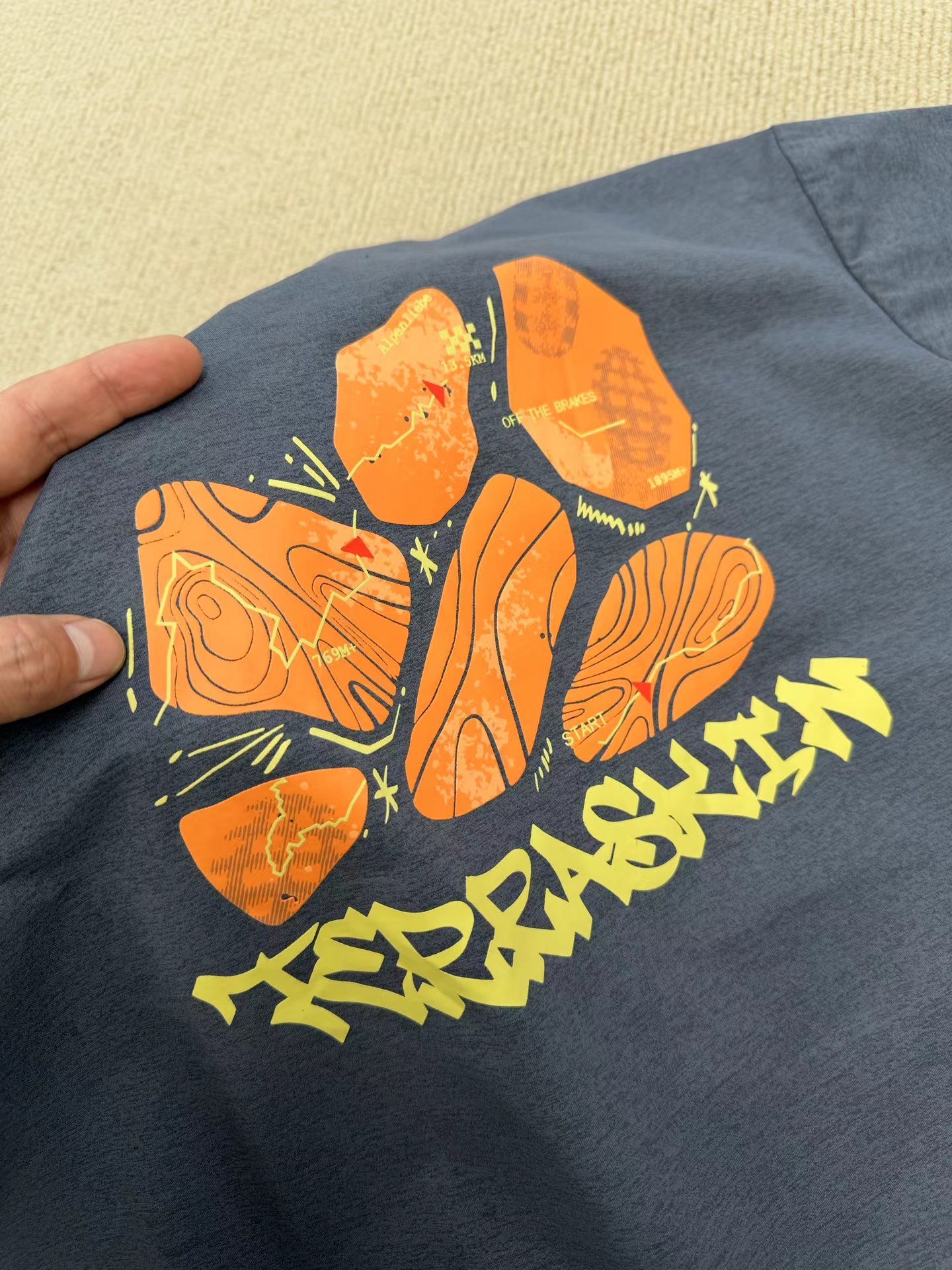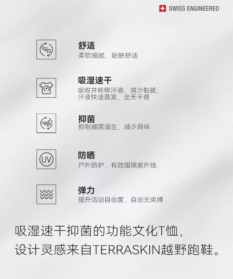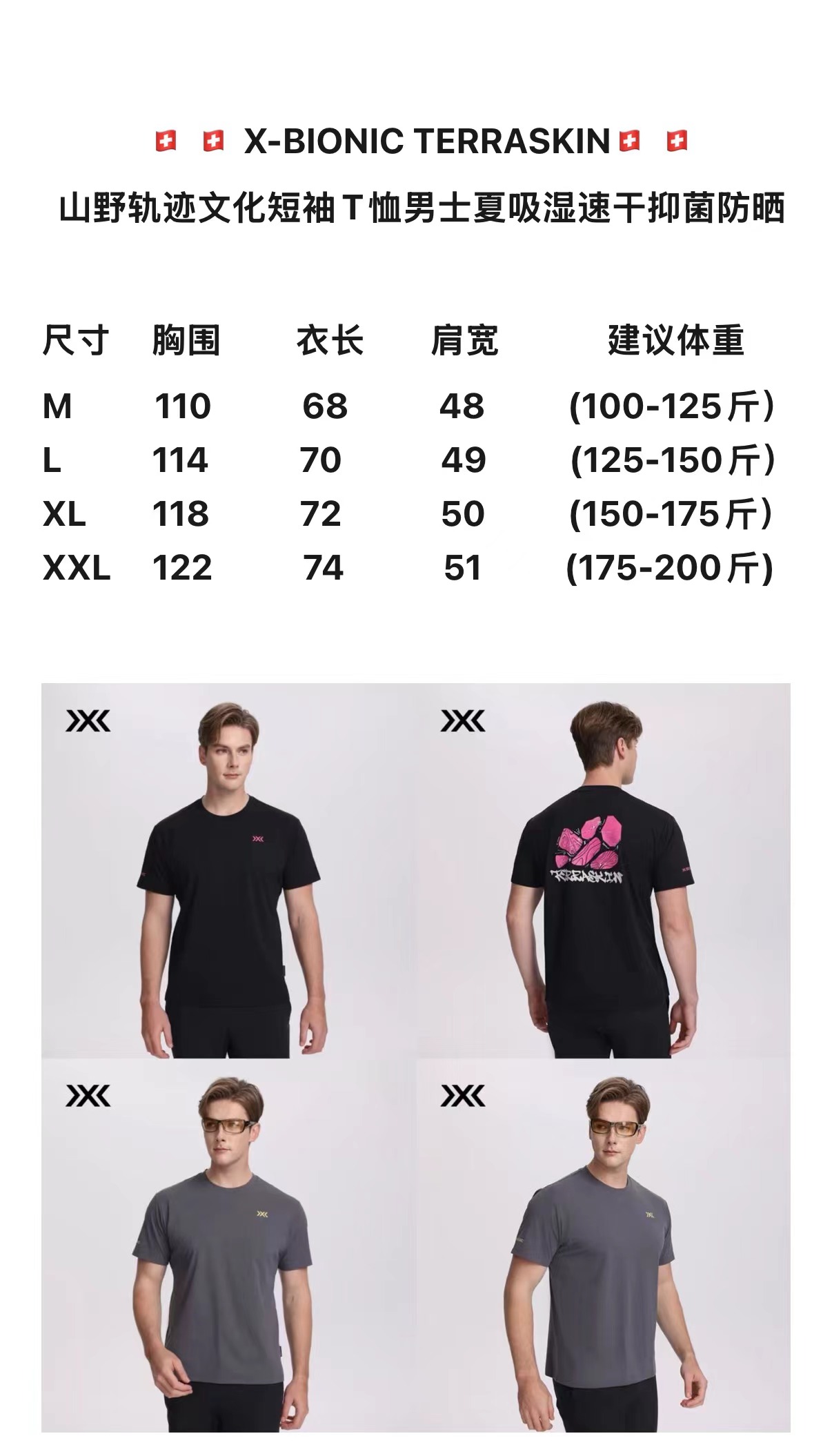山野轨迹文化短袖T恤男士夏吸湿速干防晒超轻超薄系列,功能性面料:通常采用100聚酯纤维面料,这种面料以其出色的吸湿排汗性能著称,能快速将汗液从皮肤表面导出并蒸发,保持身体干爽。防晒保护:具备防紫外线功能,可以减少皮肤被晒伤、晒黑的风险,在户外阳光下提供多一层保护。版型设计:一般为宽松的H版型,穿着舒适自在,活动时没有束缚感。同时,这种版型对身材的包容性也较好。 舒适体验:面料通常具有良好的弹性,触感轻薄柔软。部分款式还会采用腋下整片式剪裁等人体工学设计,减少运动时的摩擦。