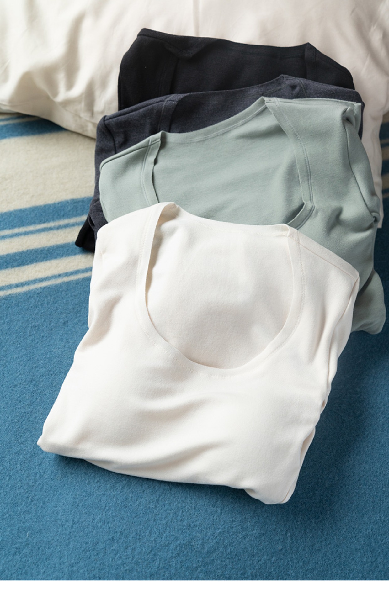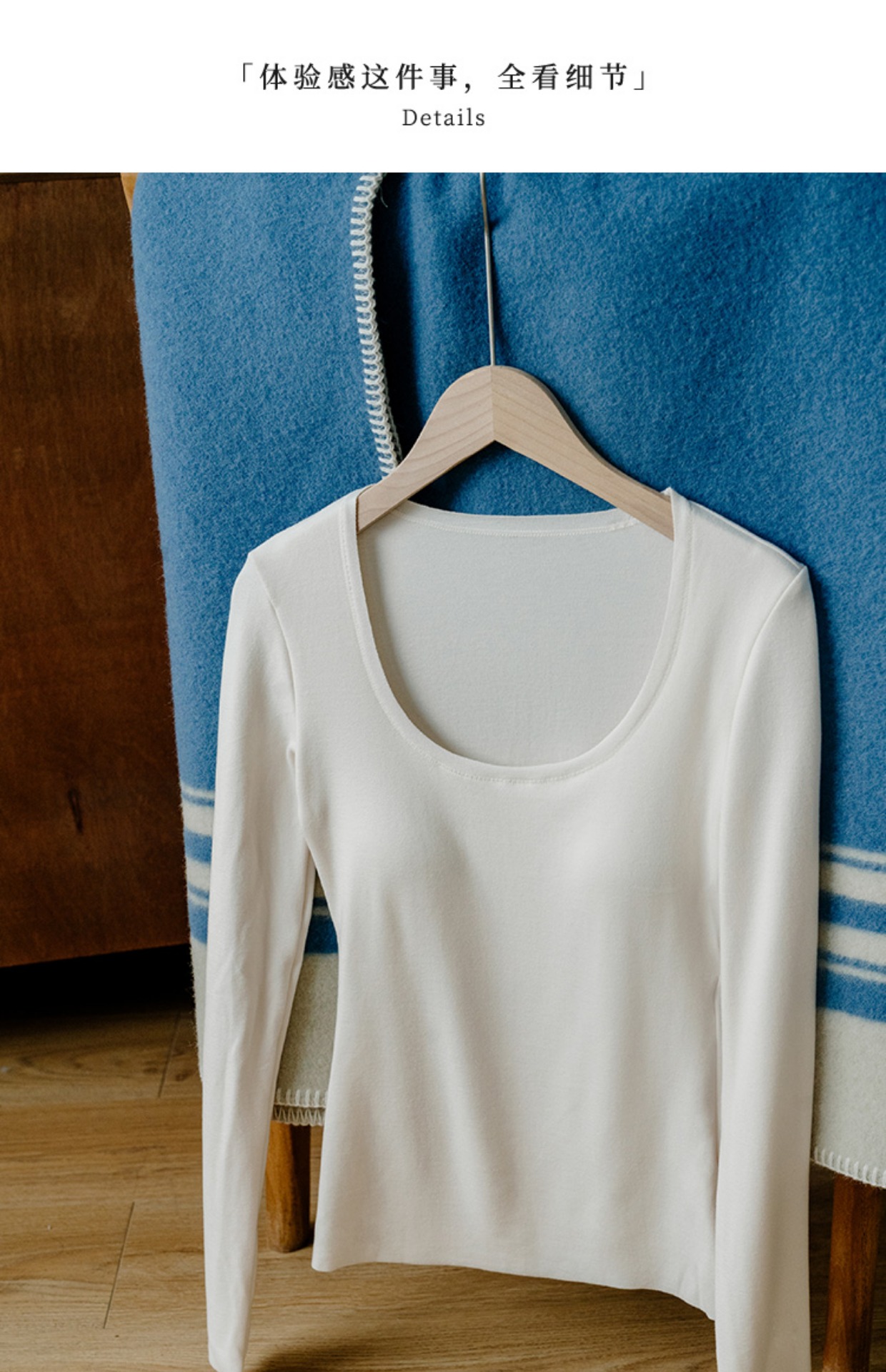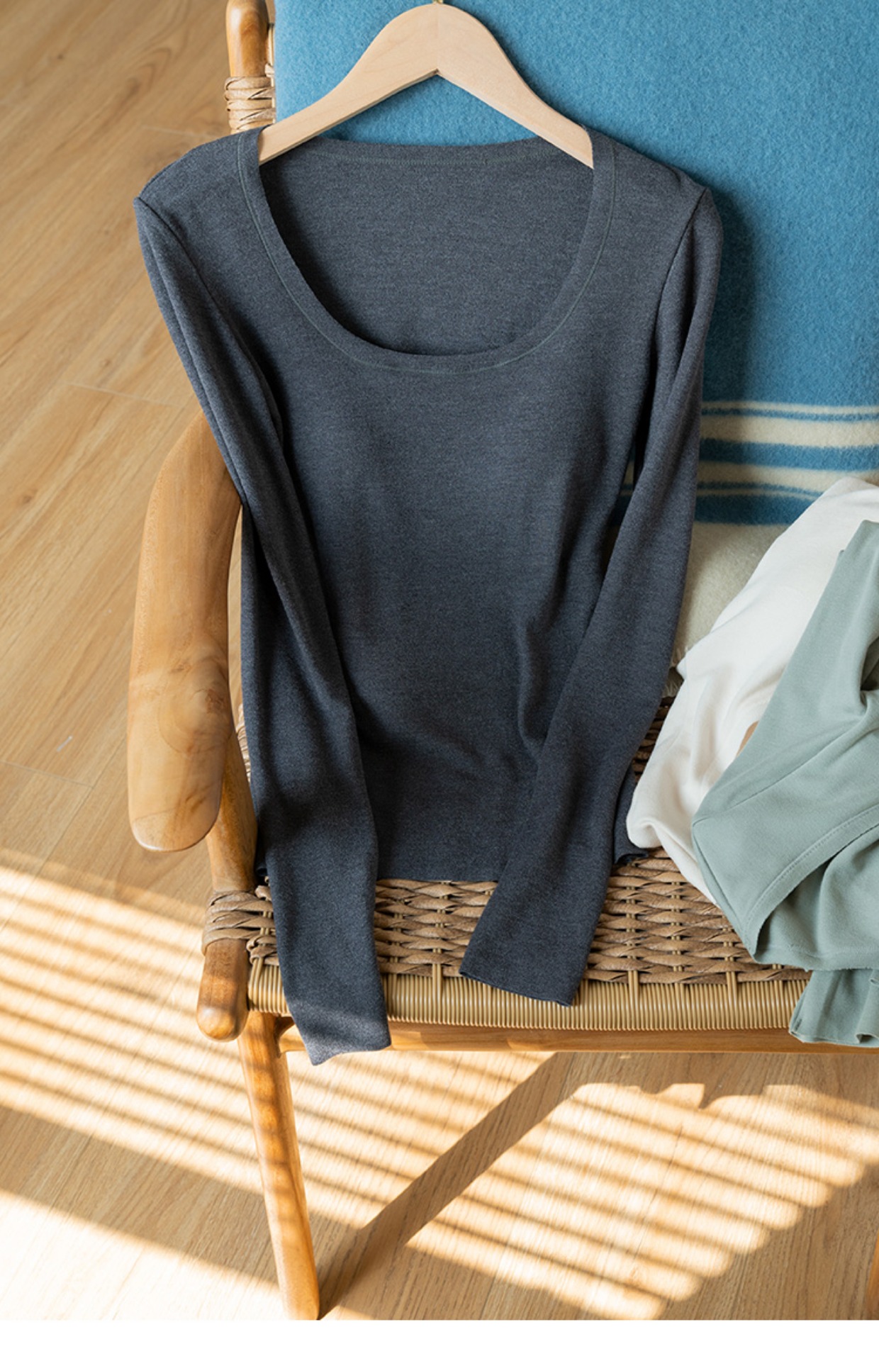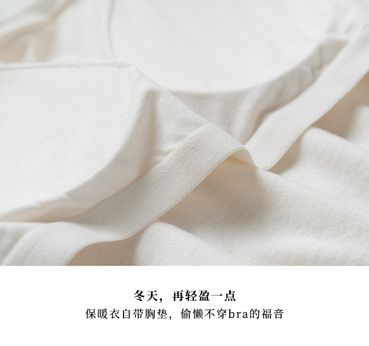 靴下物保暖内衣女秋冬纯色打底衫内搭圆领修身舒适长袖上衣带胸垫