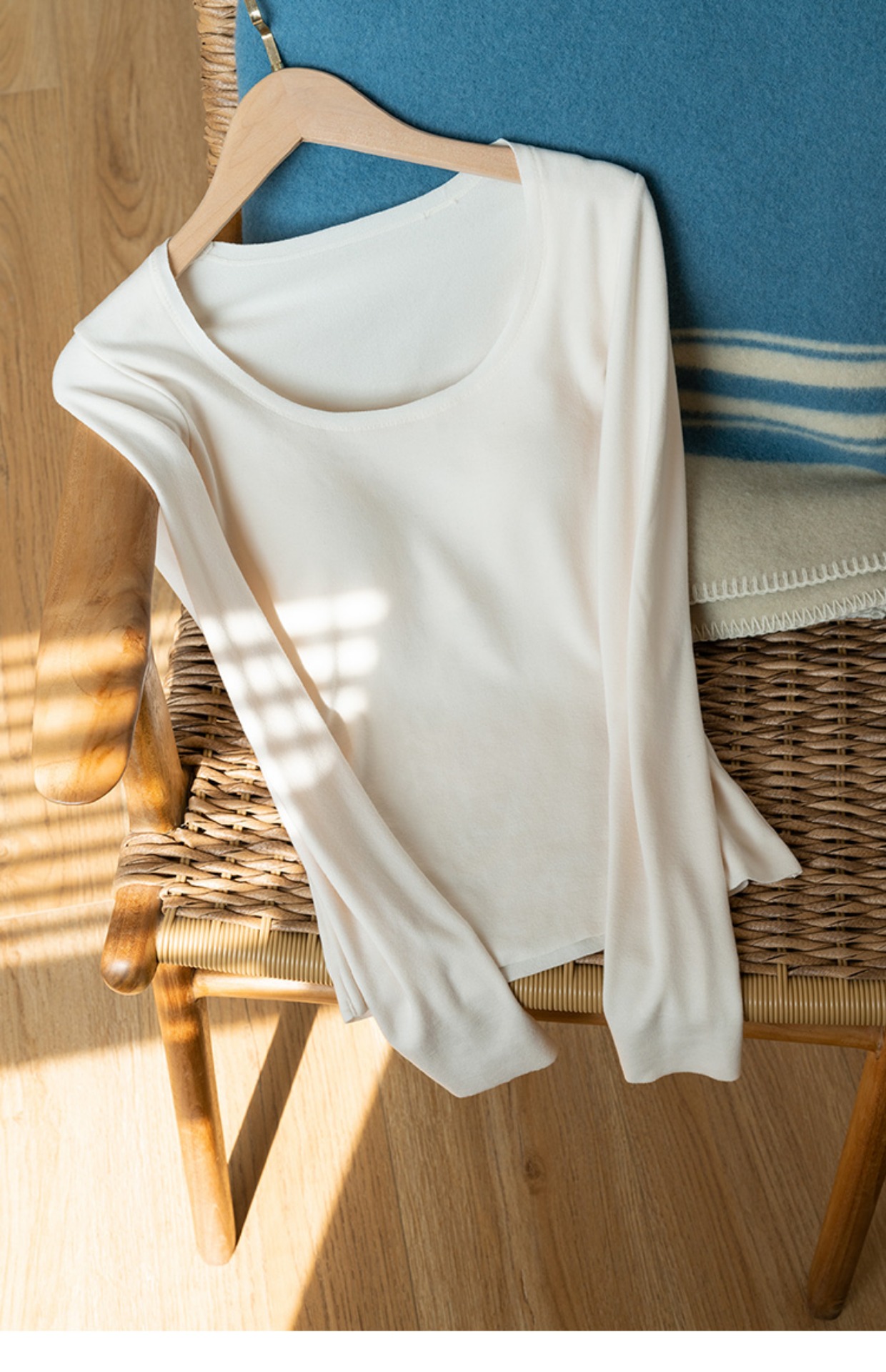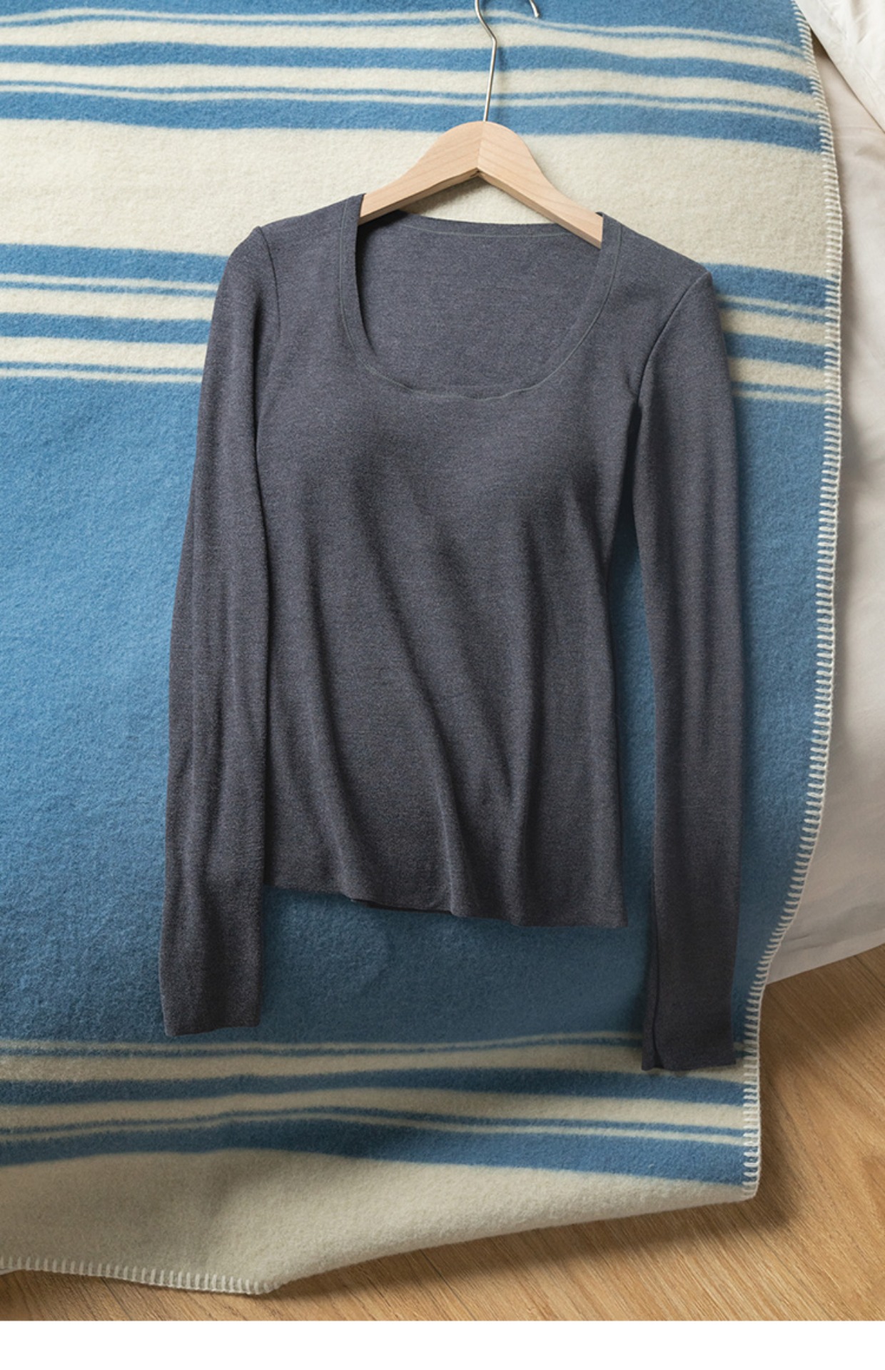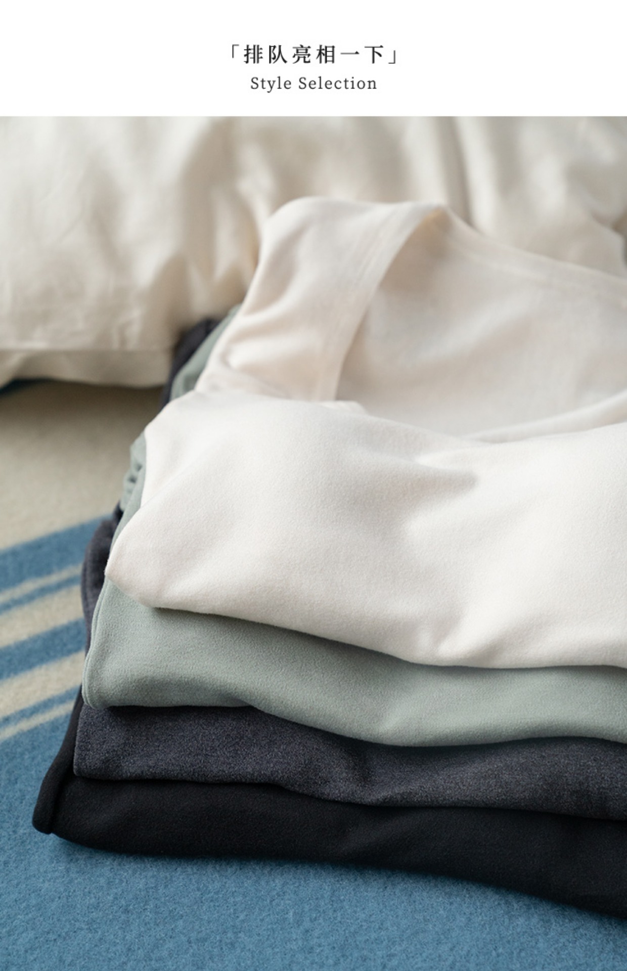 靴下物保暖内衣女秋冬纯色打底衫内搭圆领修身舒适长袖上衣带胸垫