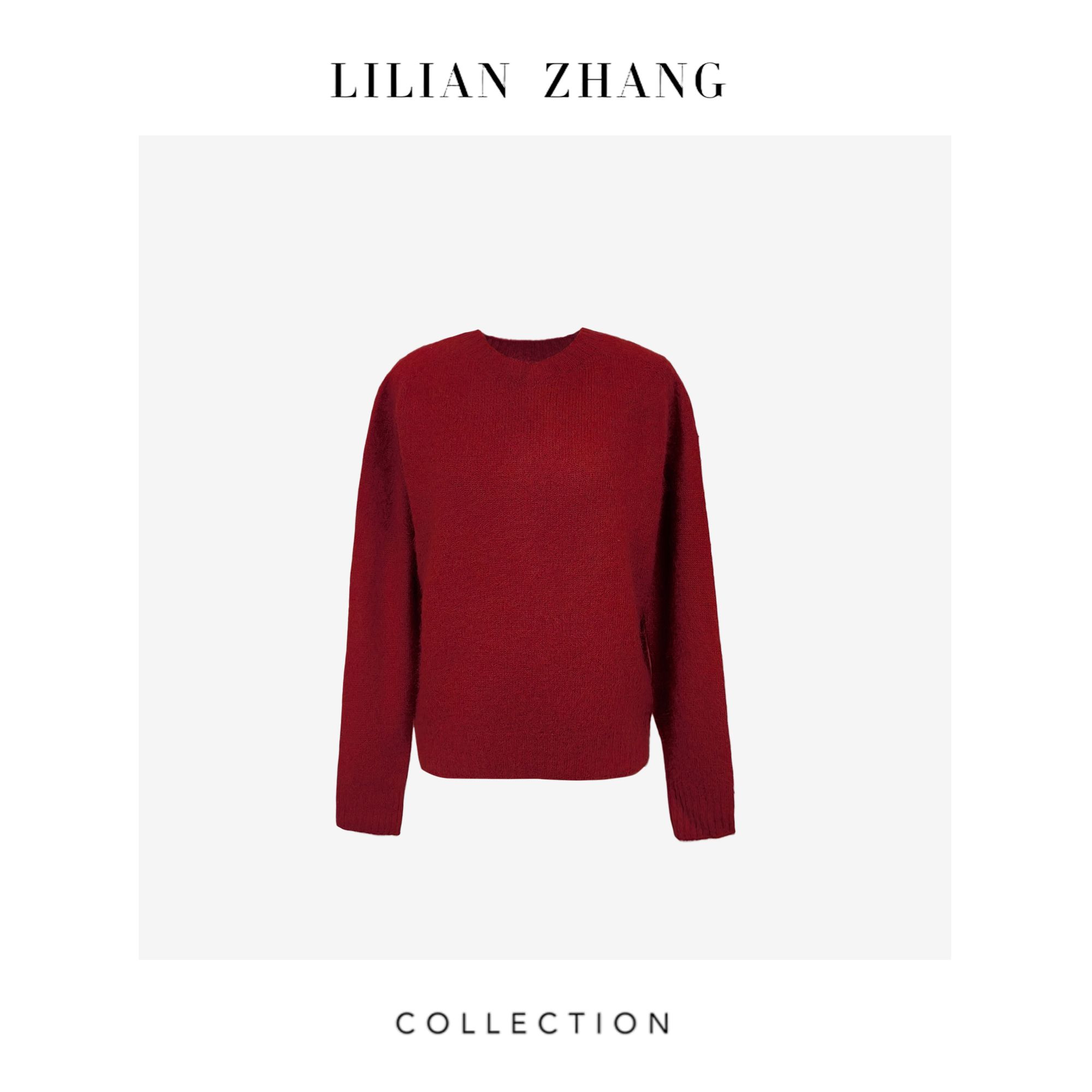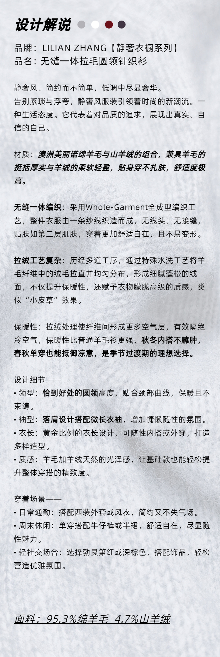 定制—“简影云柔”圆领软糯美丽诺绵羊毛羊绒无缝针织套衫 2608001