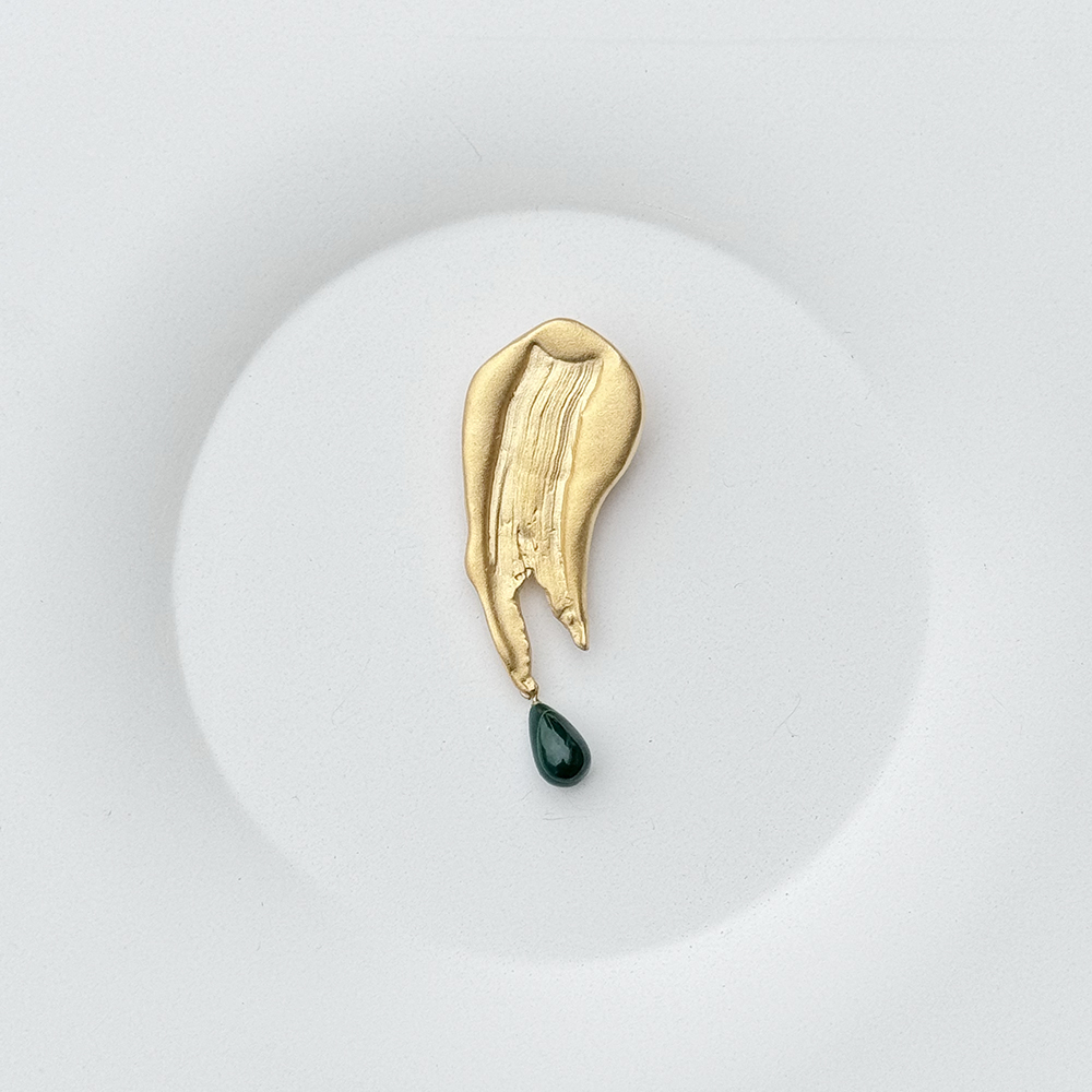 北京仓|Mass Lee-Atelier-金色 胸针(孔雀石)[比利时设计师]