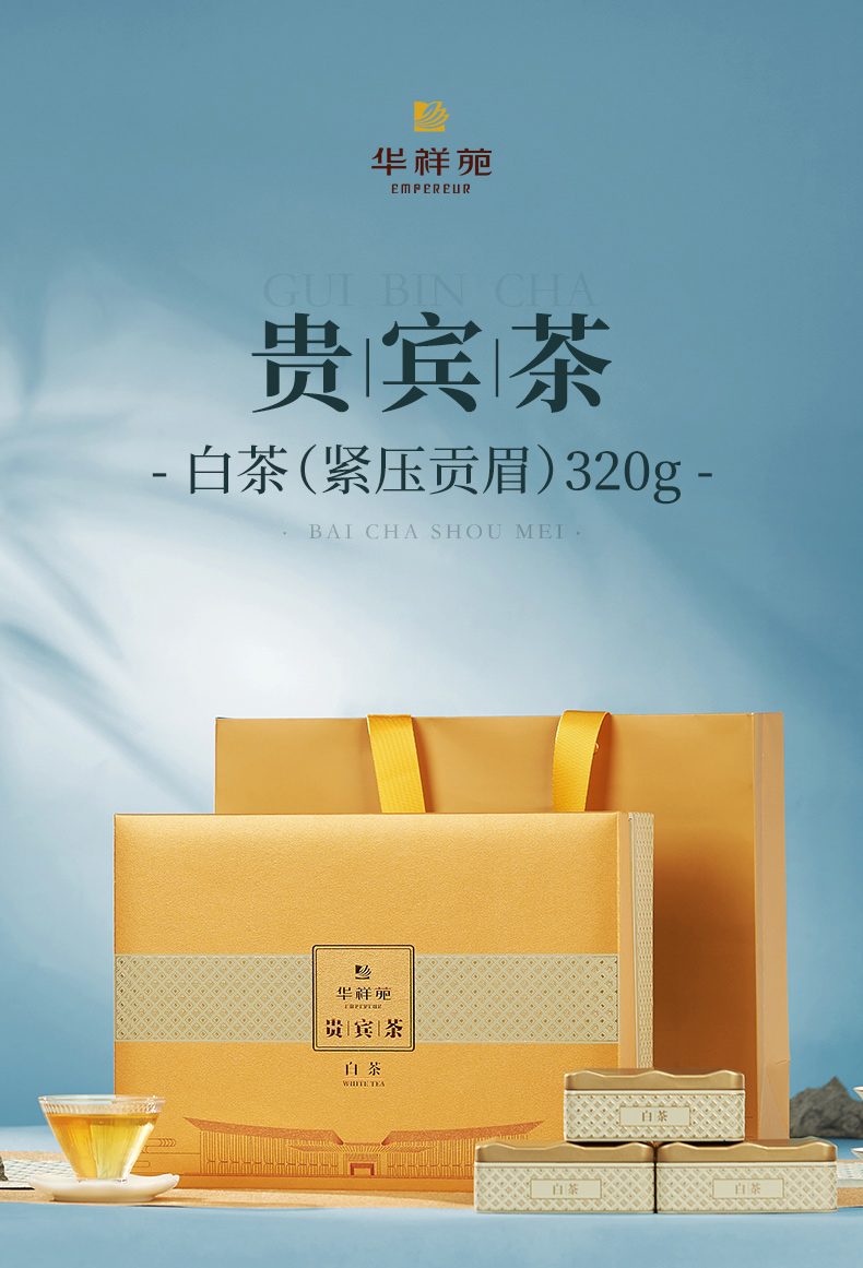 华祥苑-贵宾茶福鼎白茶紧压贡眉320g礼盒