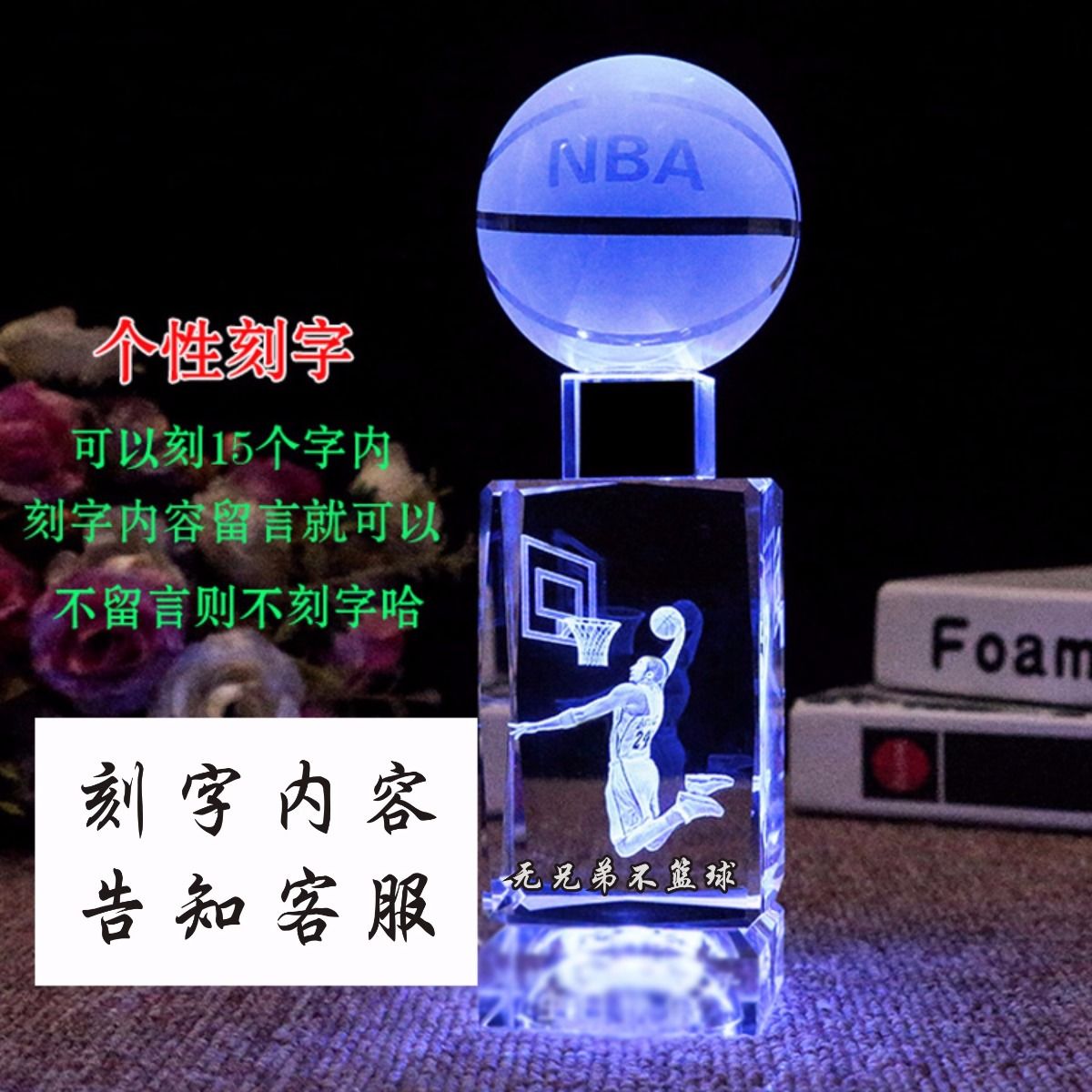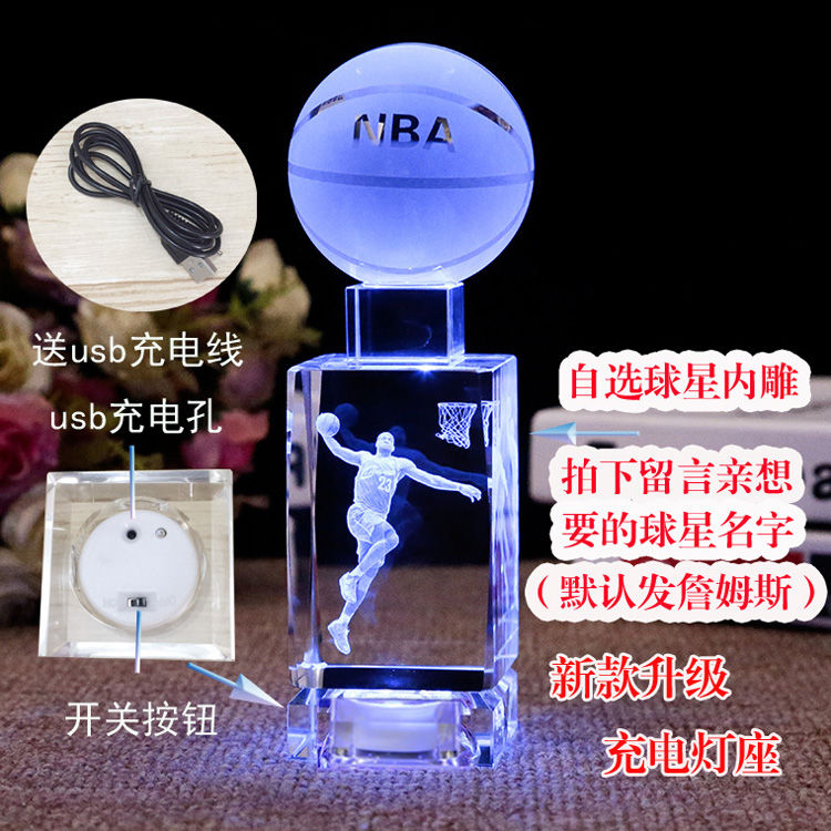 NBA球星科比詹姆斯水晶篮球摆件520送男友男生同学生日礼物DIY