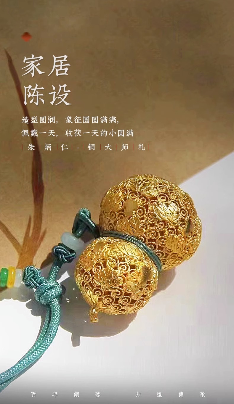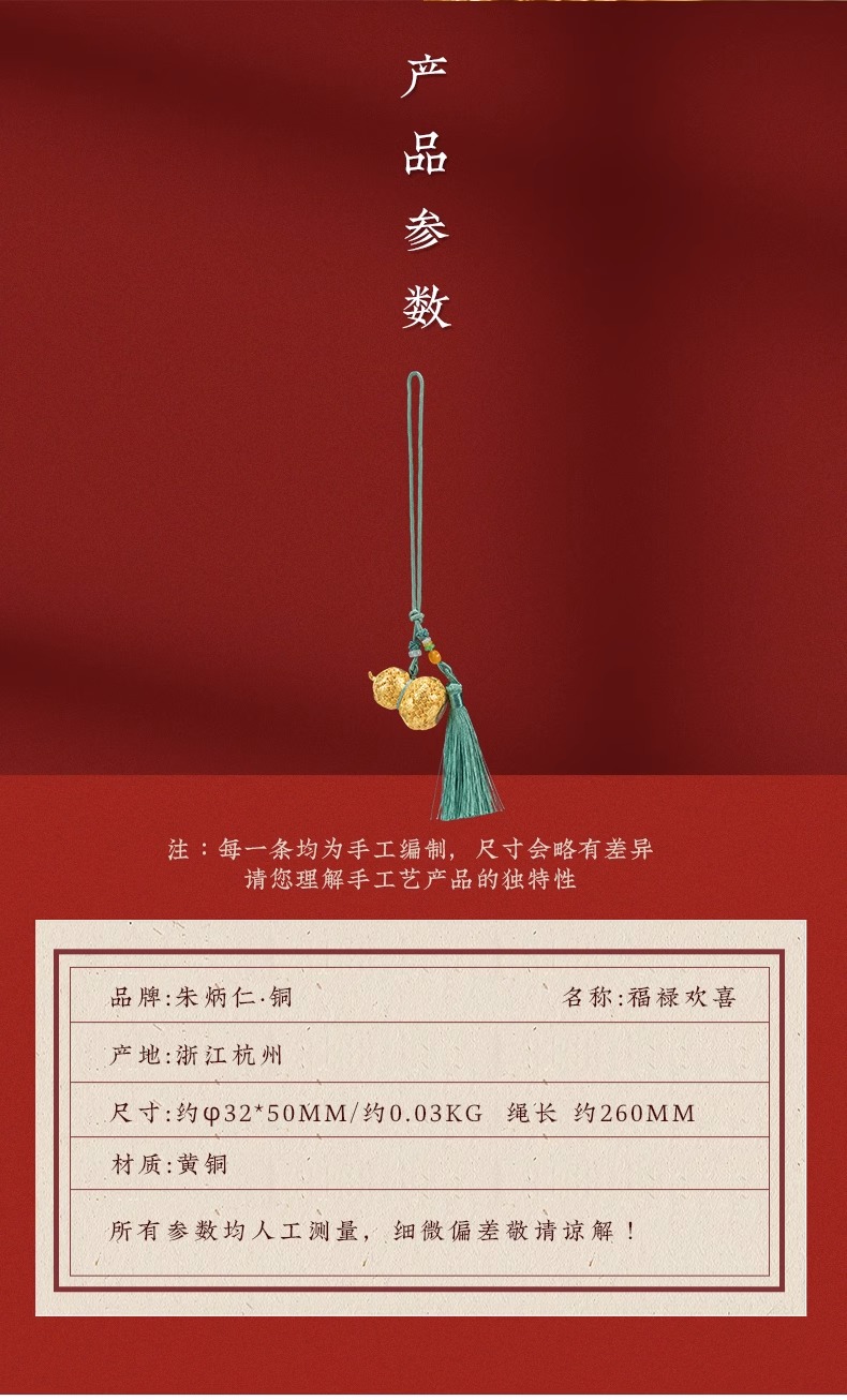 朱炳仁丨福禄欢喜挂件(大)摆件 黄铜