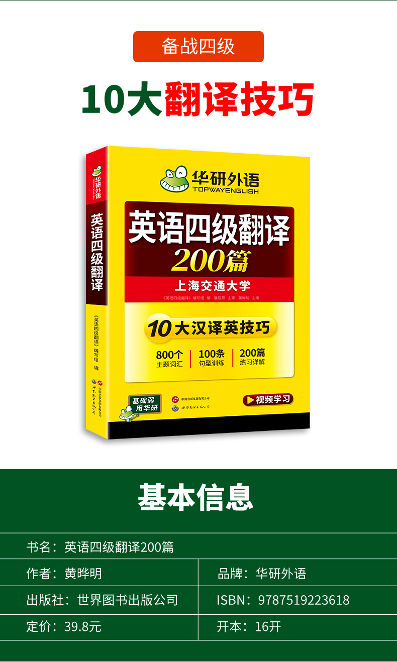 4.大开本,方便阅读与训练英语四级翻译试题;