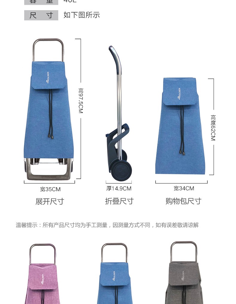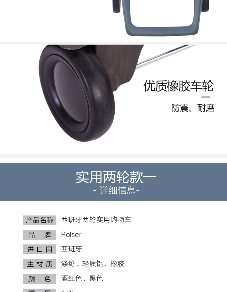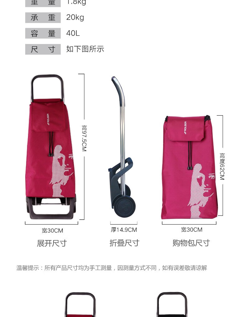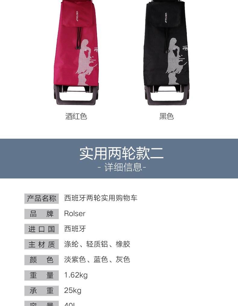 【6F】利快 家用购物车西班牙进口两轮便携手拉车买菜车轻便行李车大容量 【时尚】红色 32L