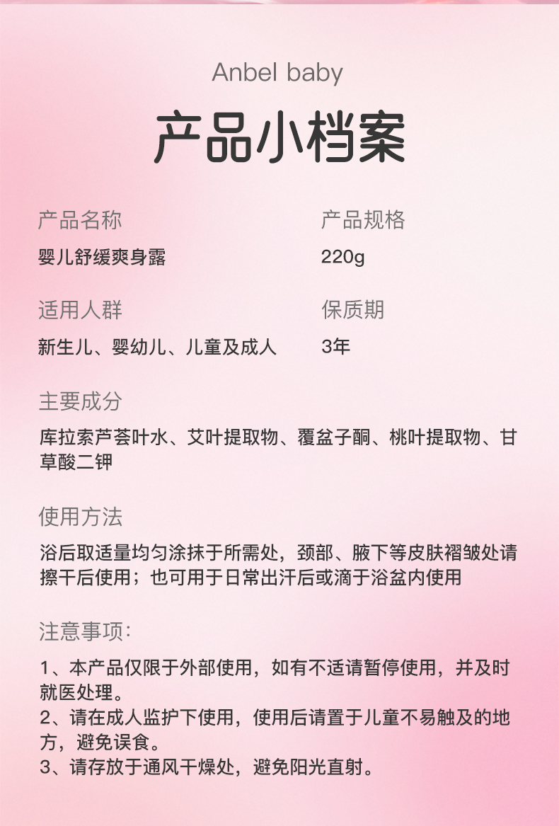婴儿舒缓爽身露220ml