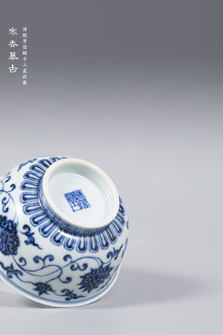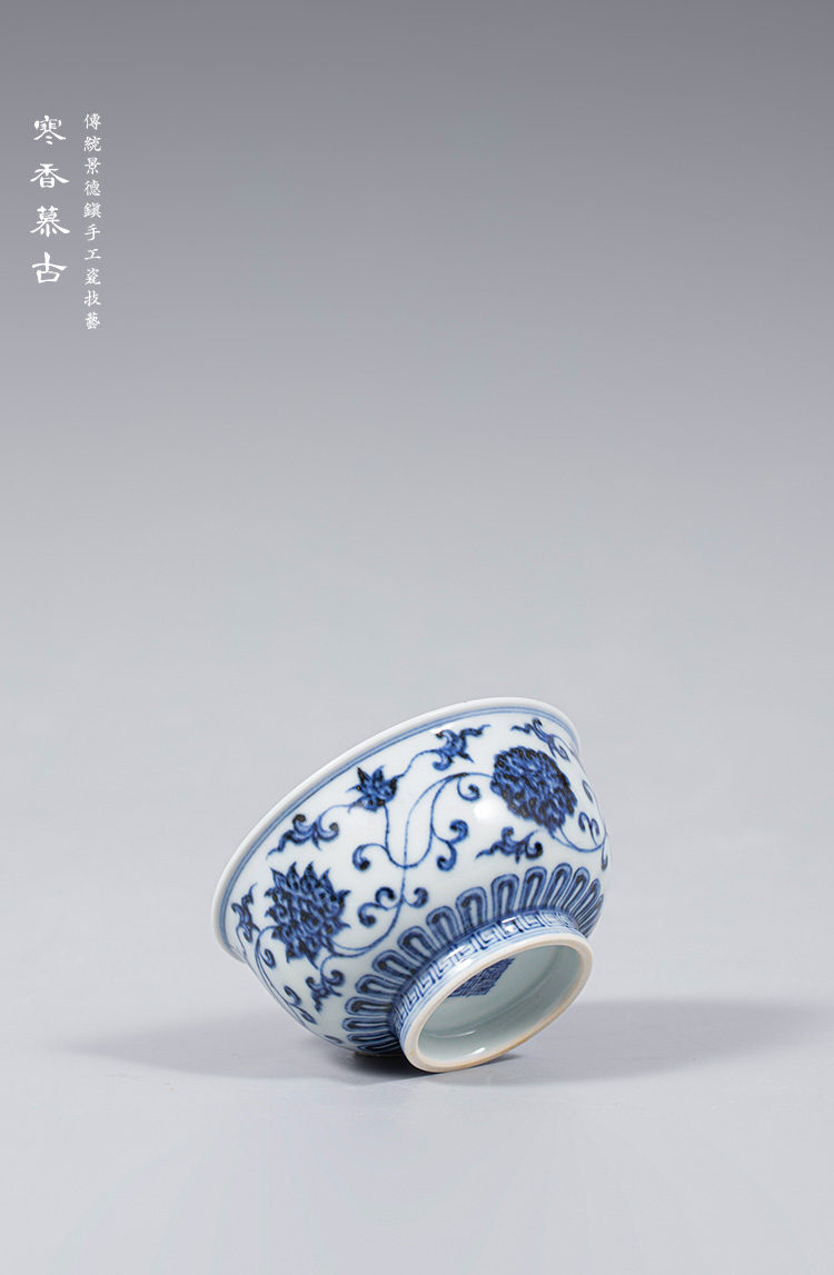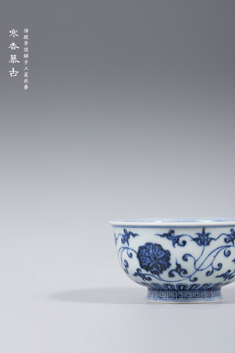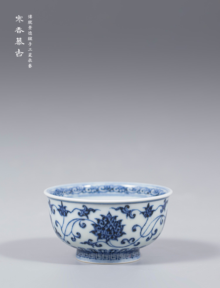 寒香慕古明青花缠枝莲敞口杯