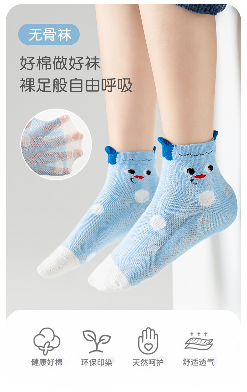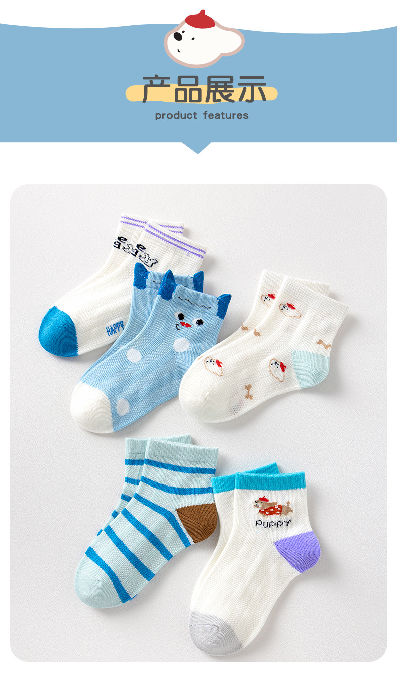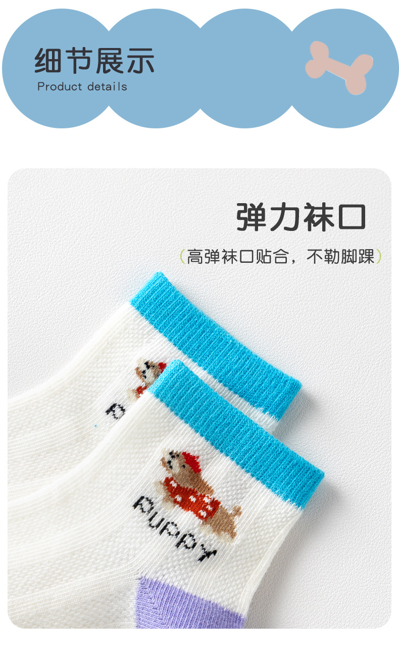 5双29.9包邮!26新款男女童春夏薄款短袜卡通小狗无骨透气a类精梳棉 21-37码