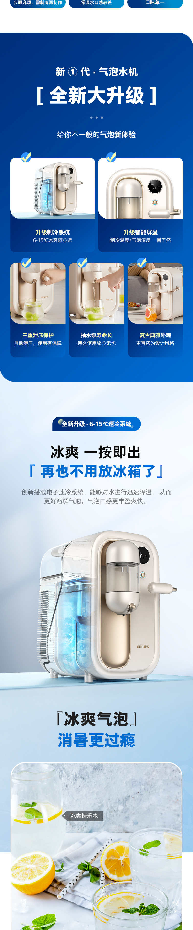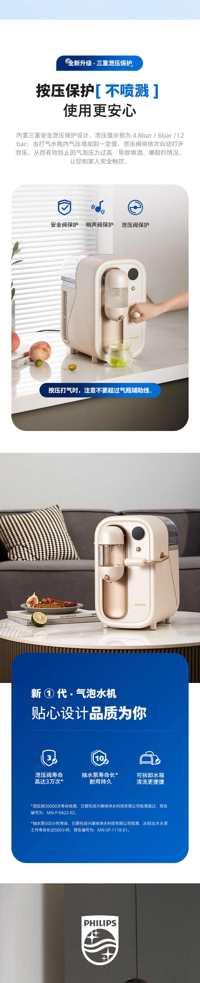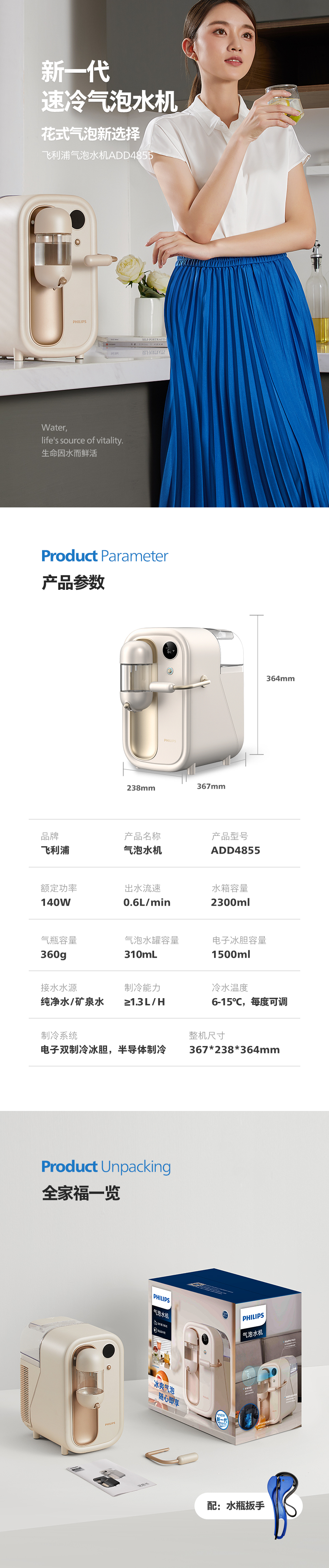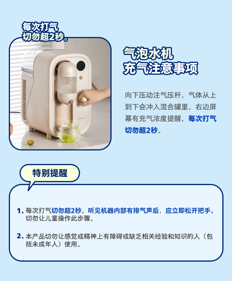 飞利浦(PHILIPS)气泡水机家用苏打水二氧化碳碳酸饮料制冷打气机ADD4855WH
