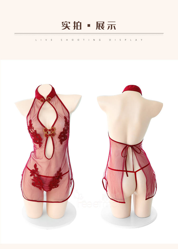 霏慕古典水溶花刺绣透纱旗袍6934 (有大码)