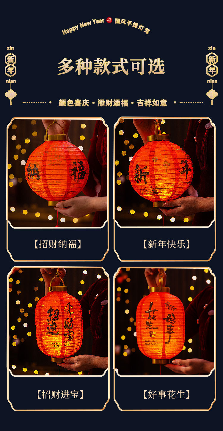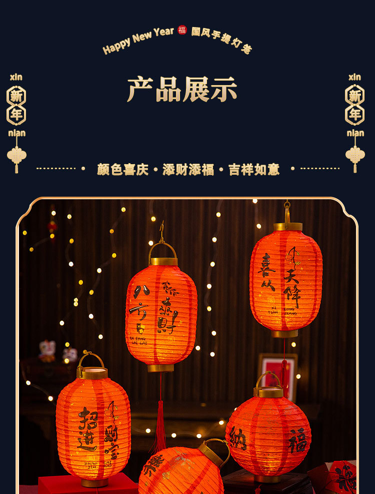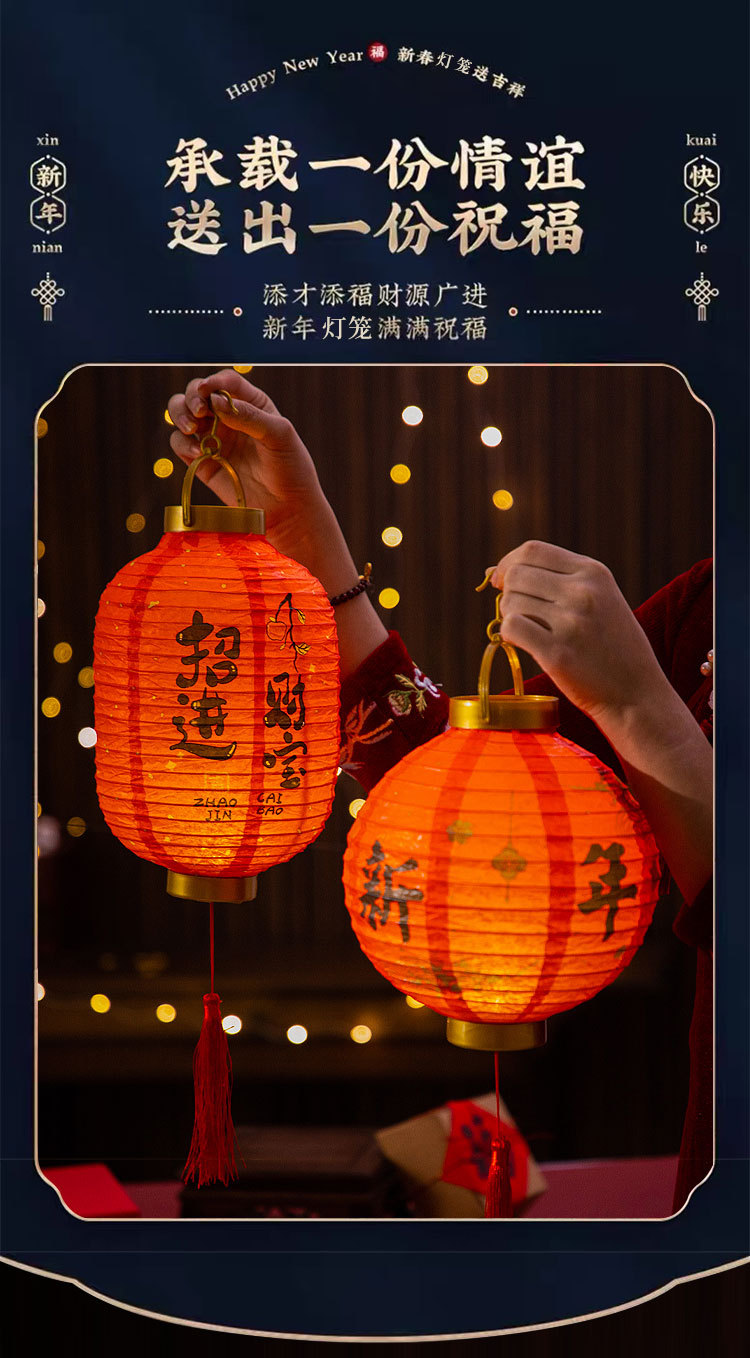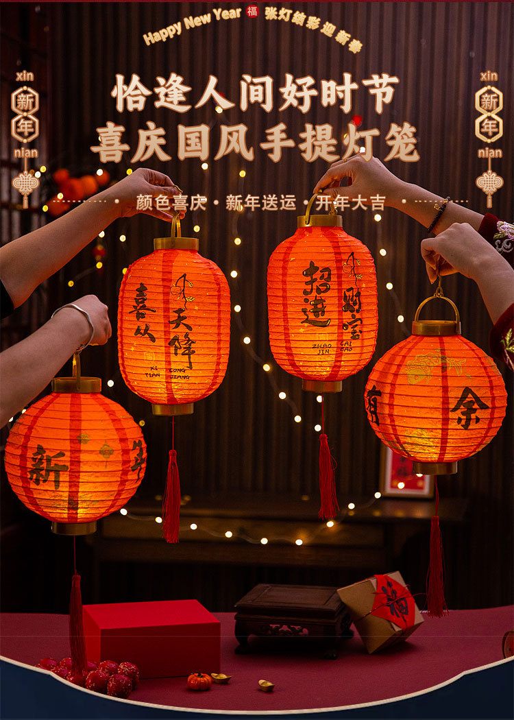 元旦新年灯笼2026新款儿童手提发光花灯马年装饰挂件纸灯笼红灯笼