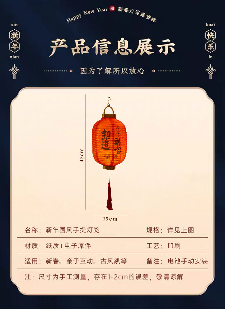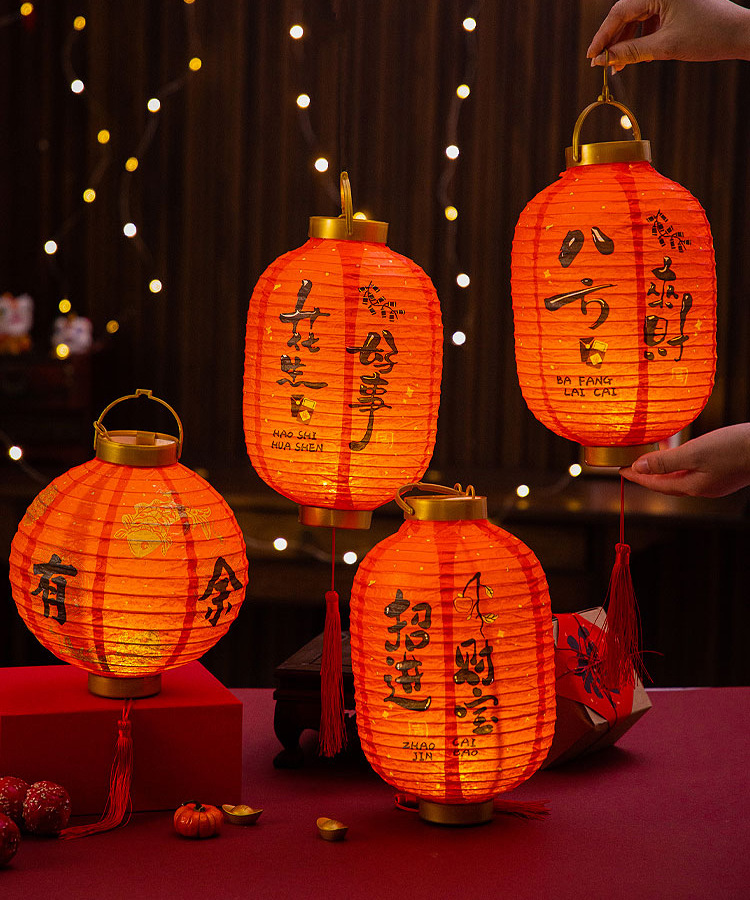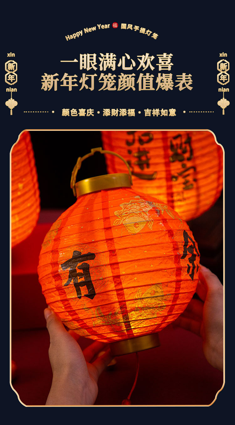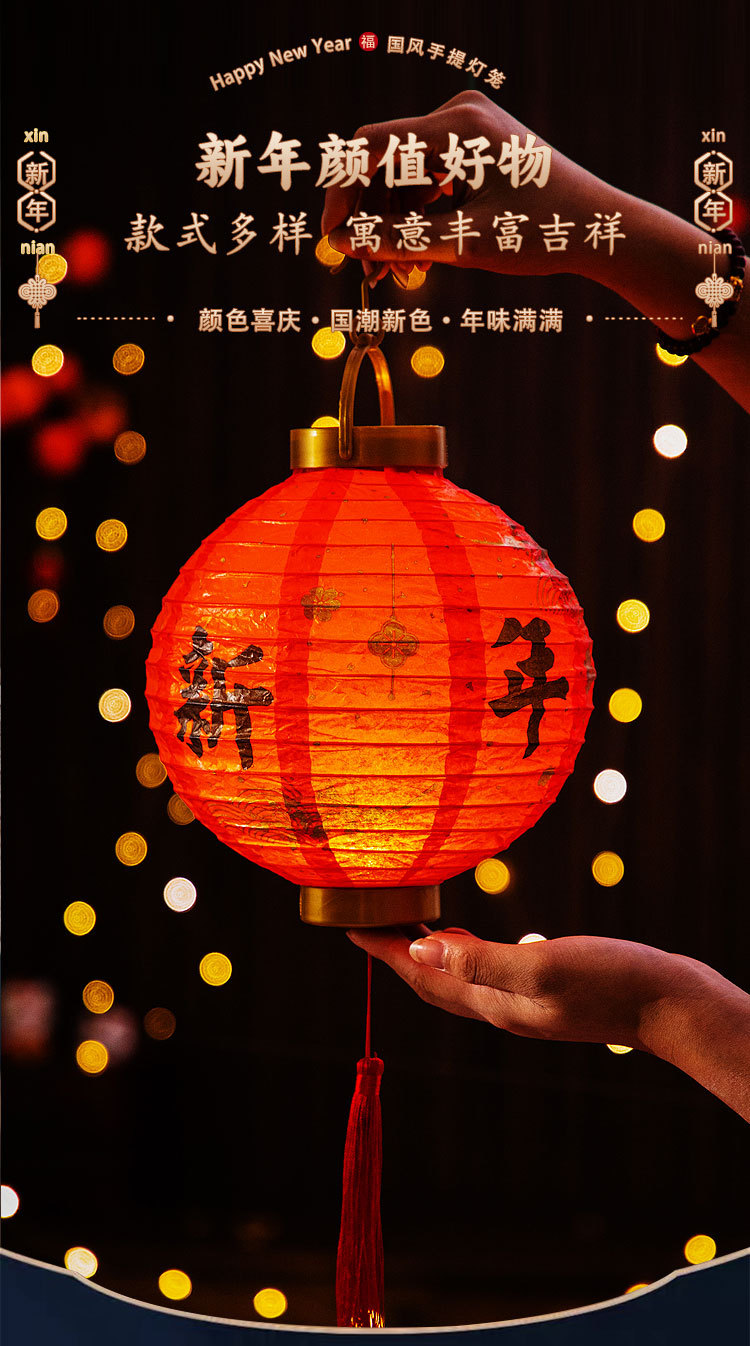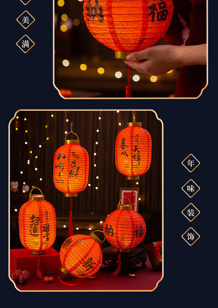 元旦新年灯笼2026新款儿童手提发光花灯马年装饰挂件纸灯笼红灯笼