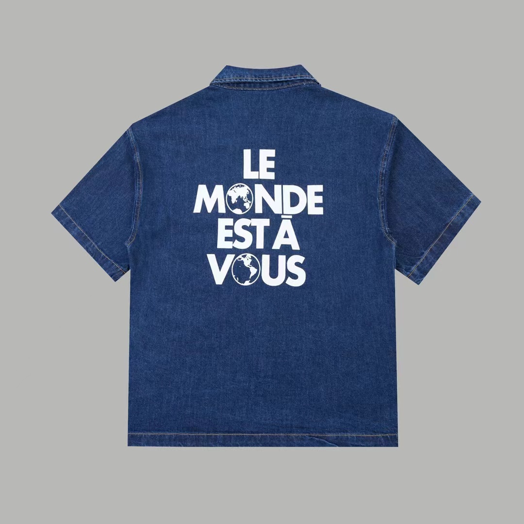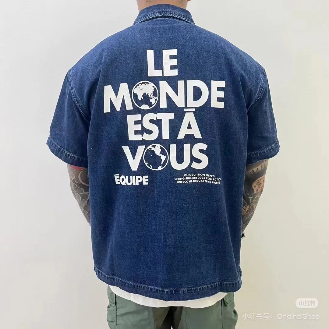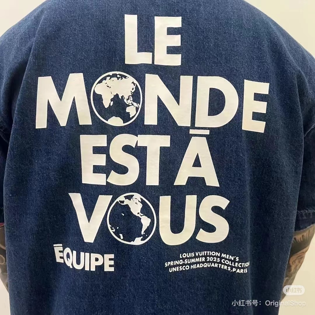 F022734早春新款后背植绒地球牛仔马甲衬衫