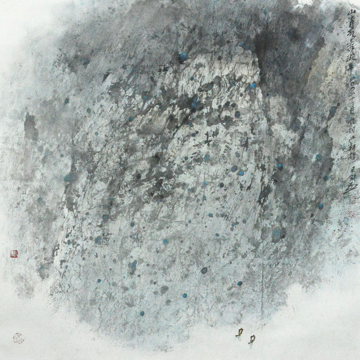 2002年,王盛烈先生历经一次手术。这一年的年底,王盛烈先生到北陵大女儿真真家调养身体,这幅作品既是创作于这个时间,在身体有恙的情况下挥毫不辍,作品取长江三峡景,俯角透视,雄浑大山呼之欲出,云雾的渲染,把欲隐还现的青山显得更为宏大、深远,一双帆船顺流而下,轻缓而自在。从画中可以看出大病初愈的先生的心境正如画名所说“山青、水秀、波平”。