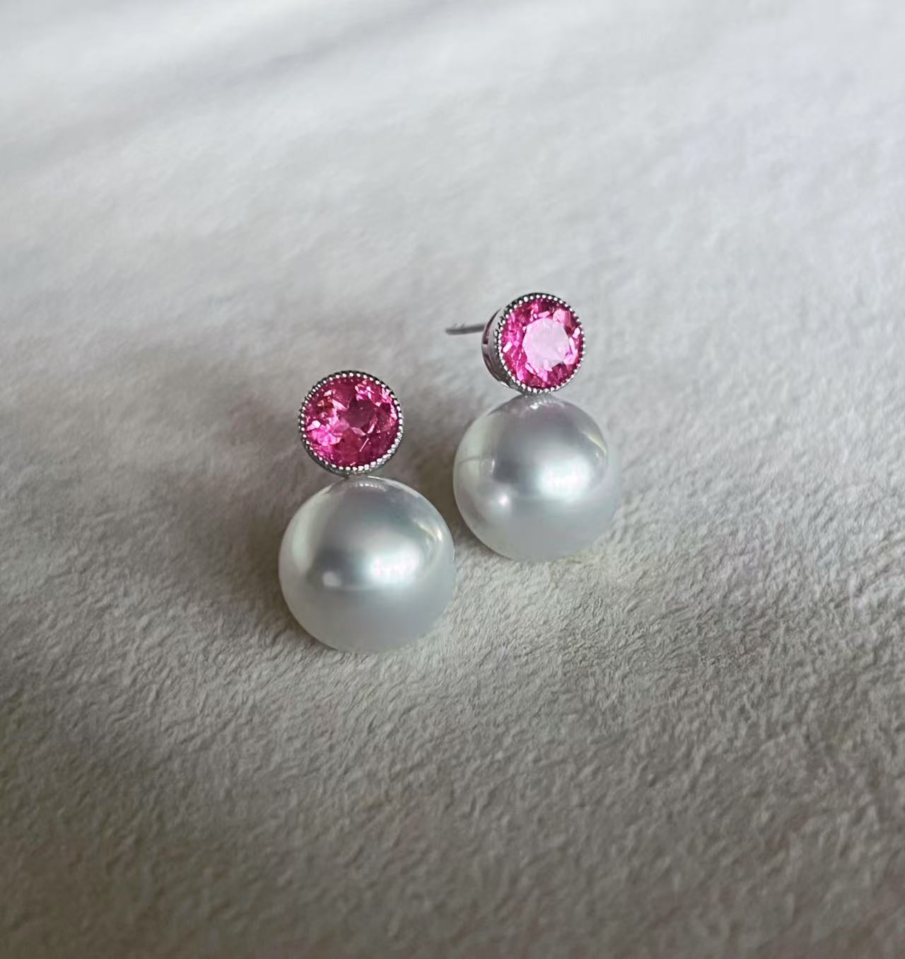 作品名称:18K镶碧玺和南洋珍珠耳钉