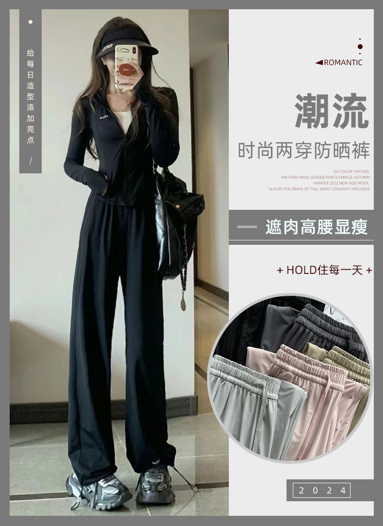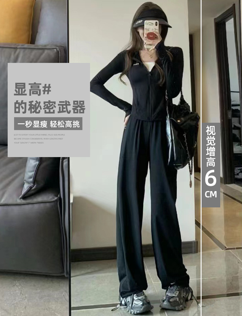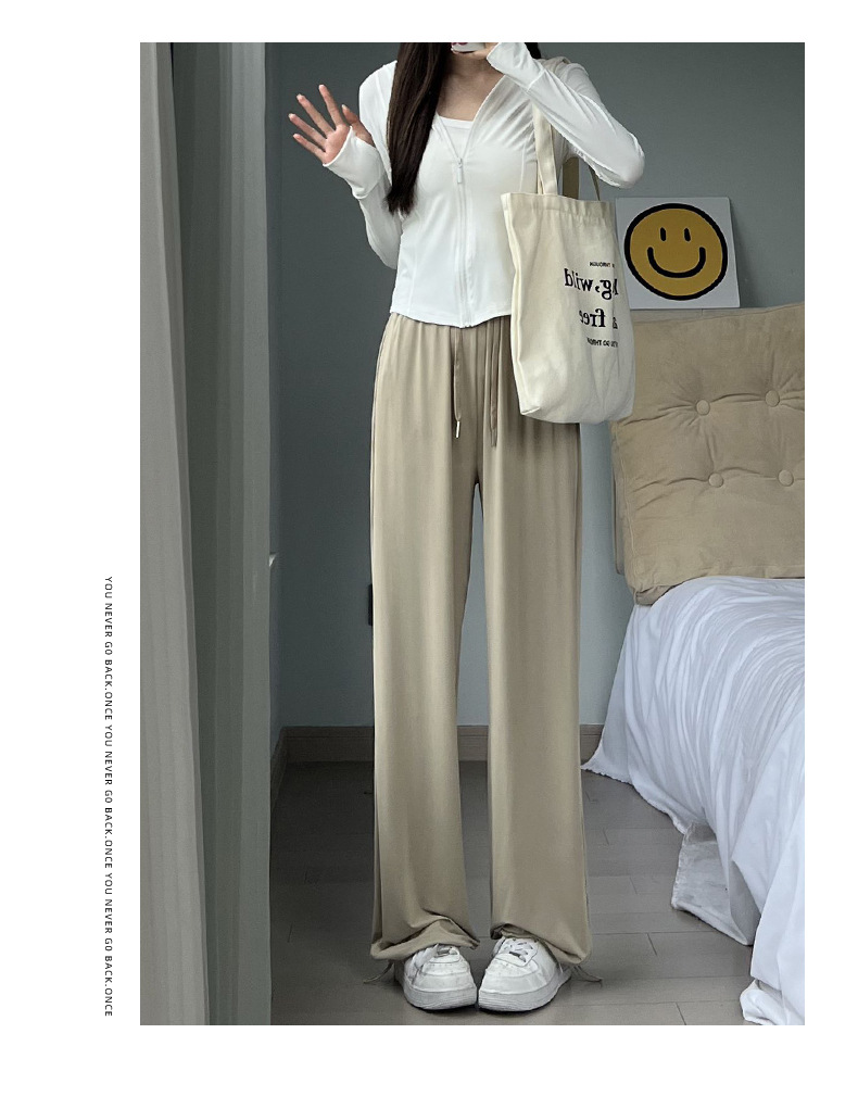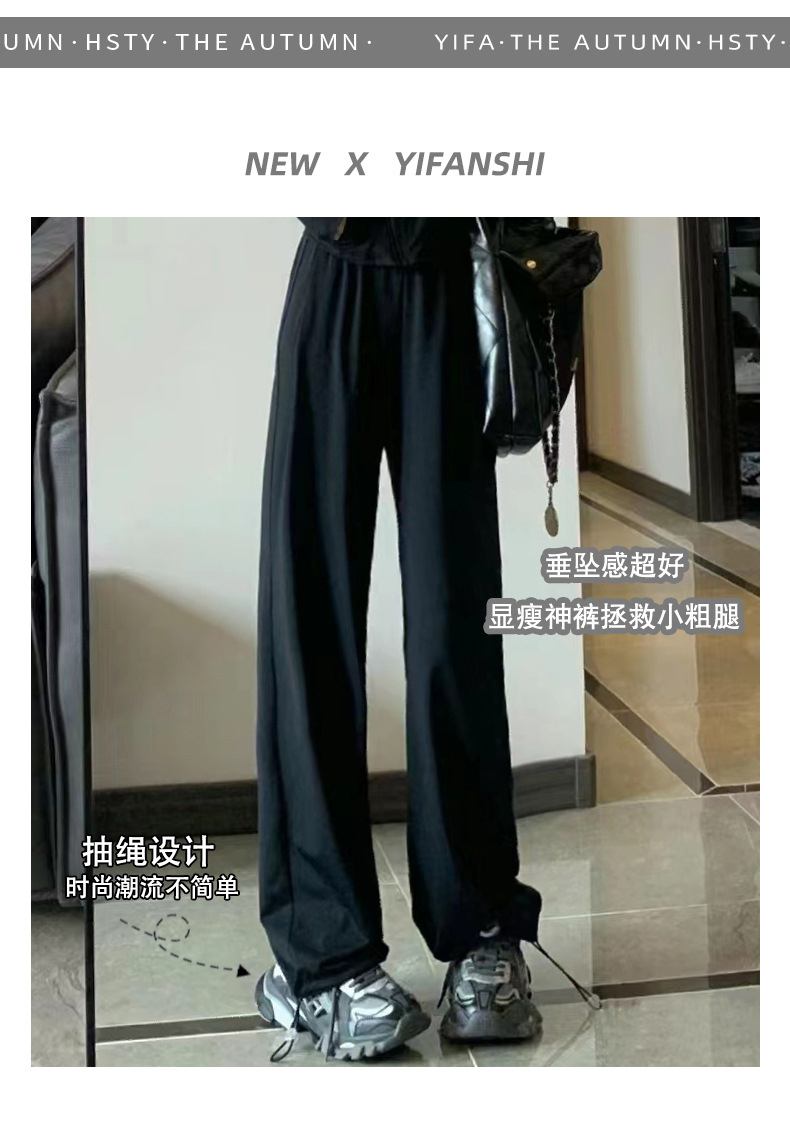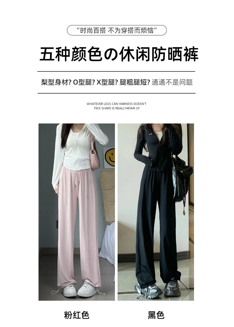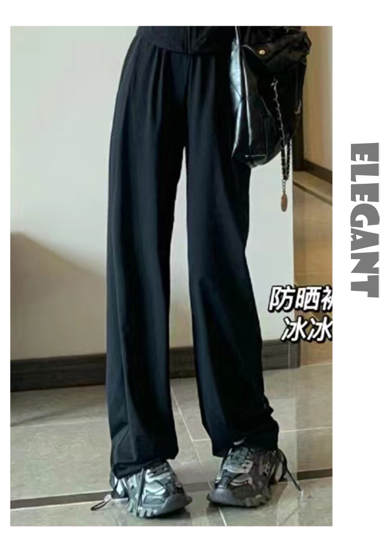 黑色防晒裤女夏2025新款高腰垂感直筒休闲阔腿裤抽绳冰丝运动裤子
