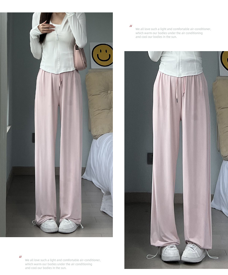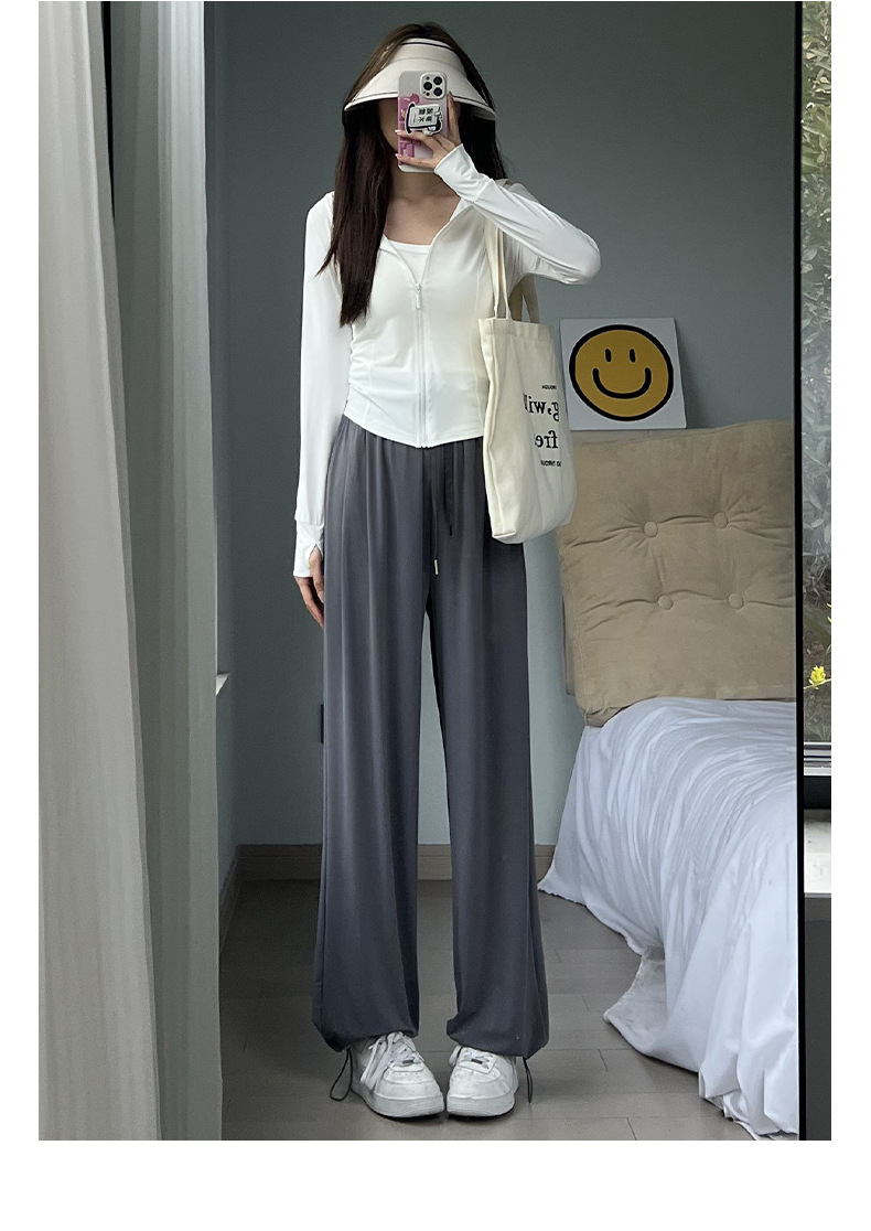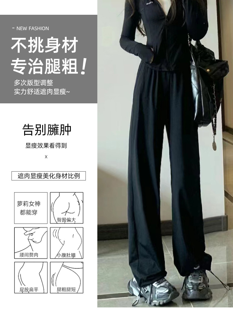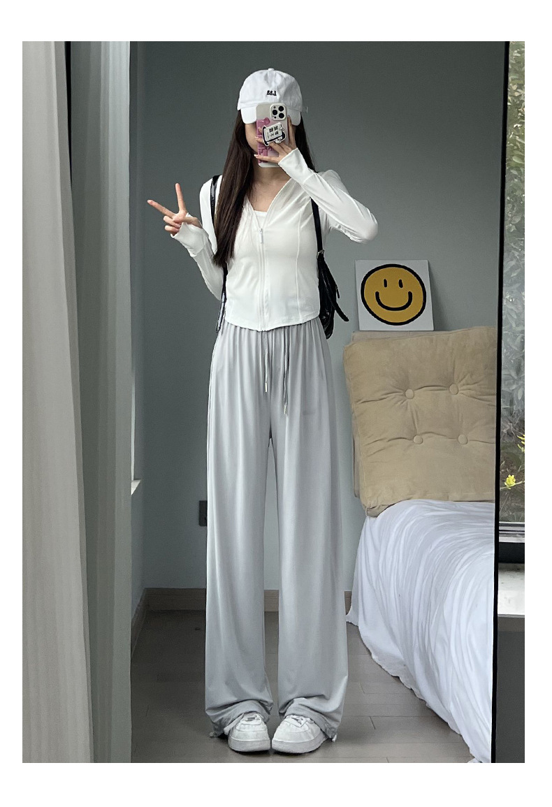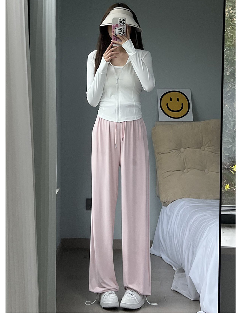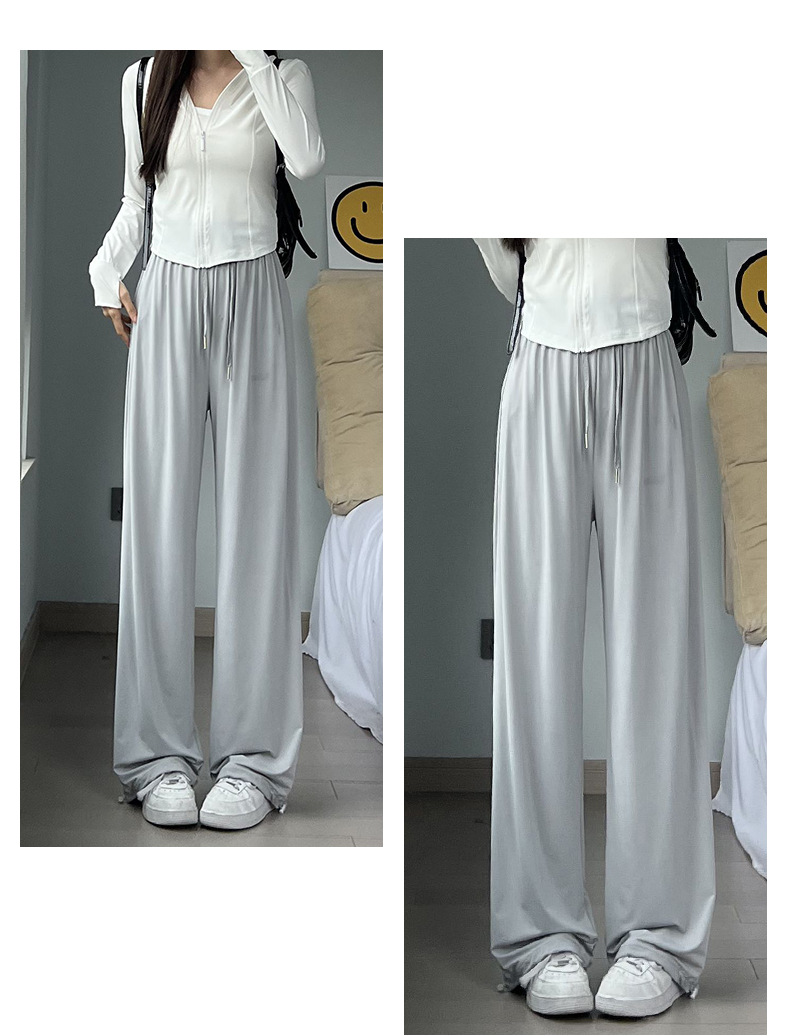 黑色防晒裤女夏2025新款高腰垂感直筒休闲阔腿裤抽绳冰丝运动裤子