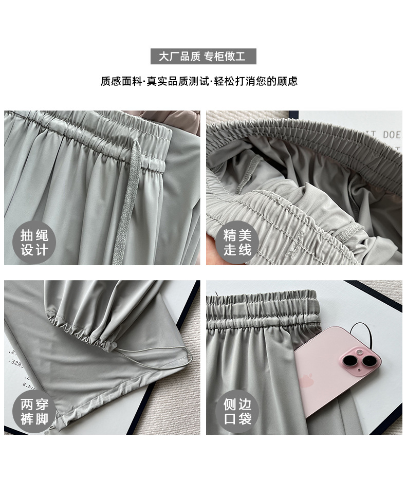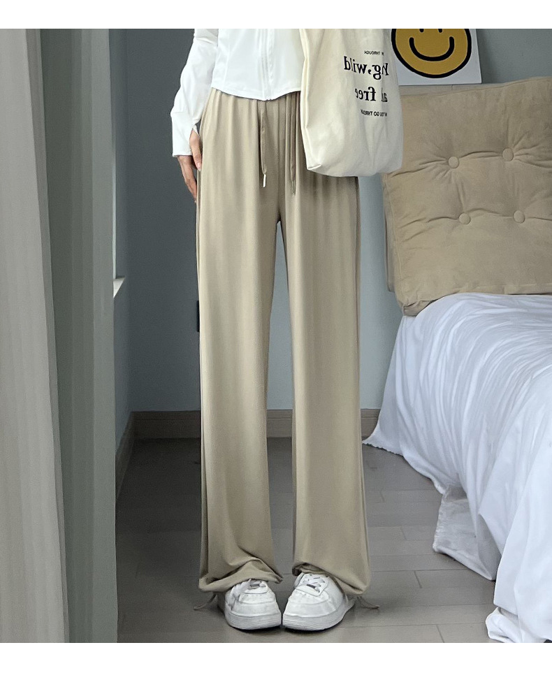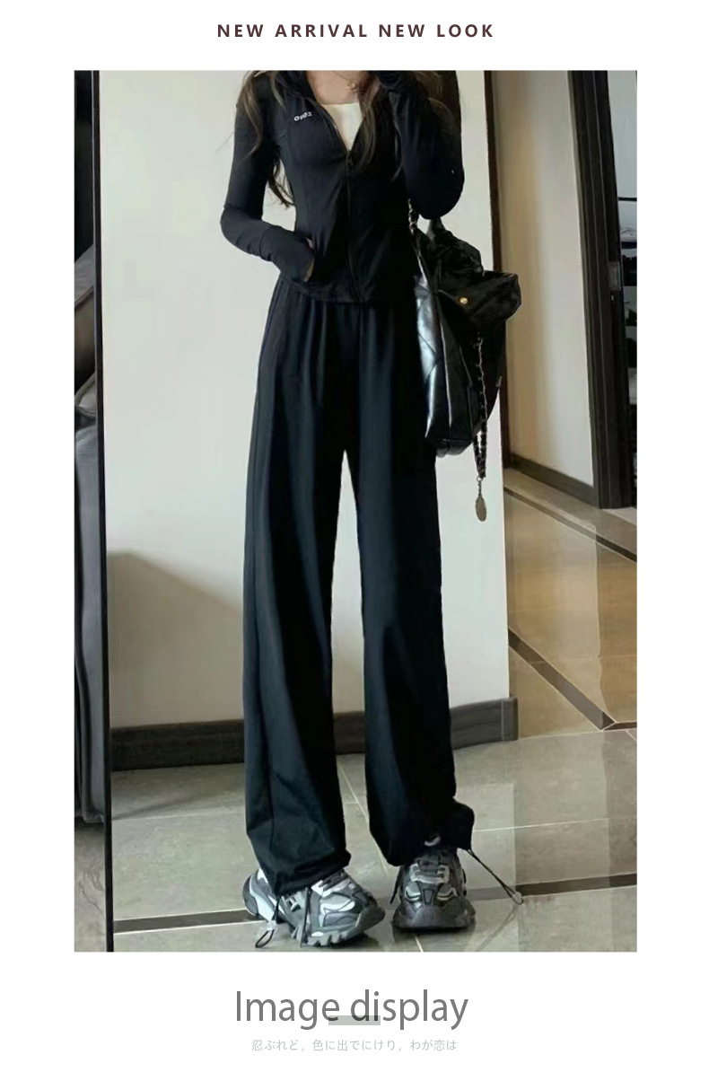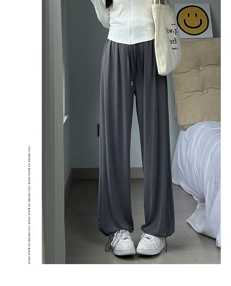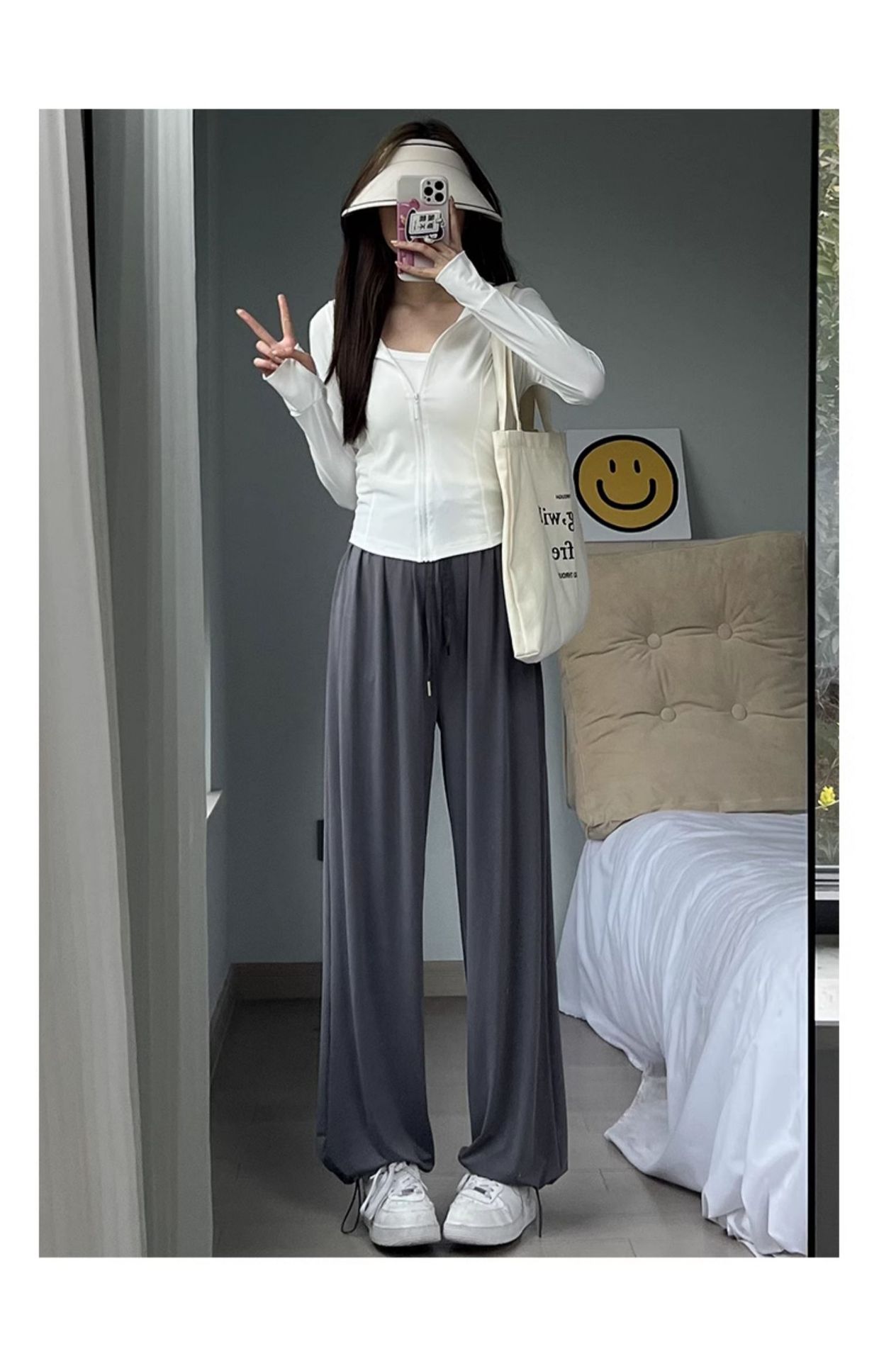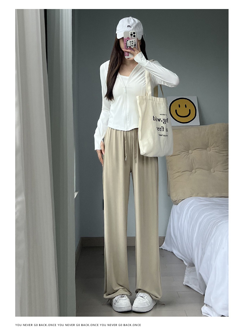 黑色防晒裤女夏2025新款高腰垂感直筒休闲阔腿裤抽绳冰丝运动裤子