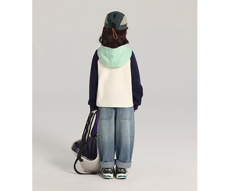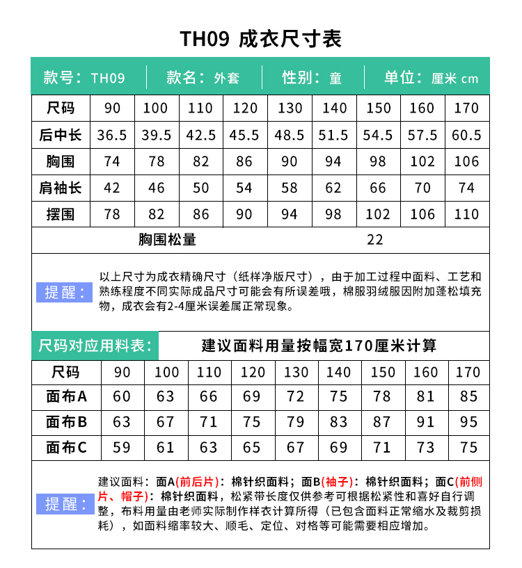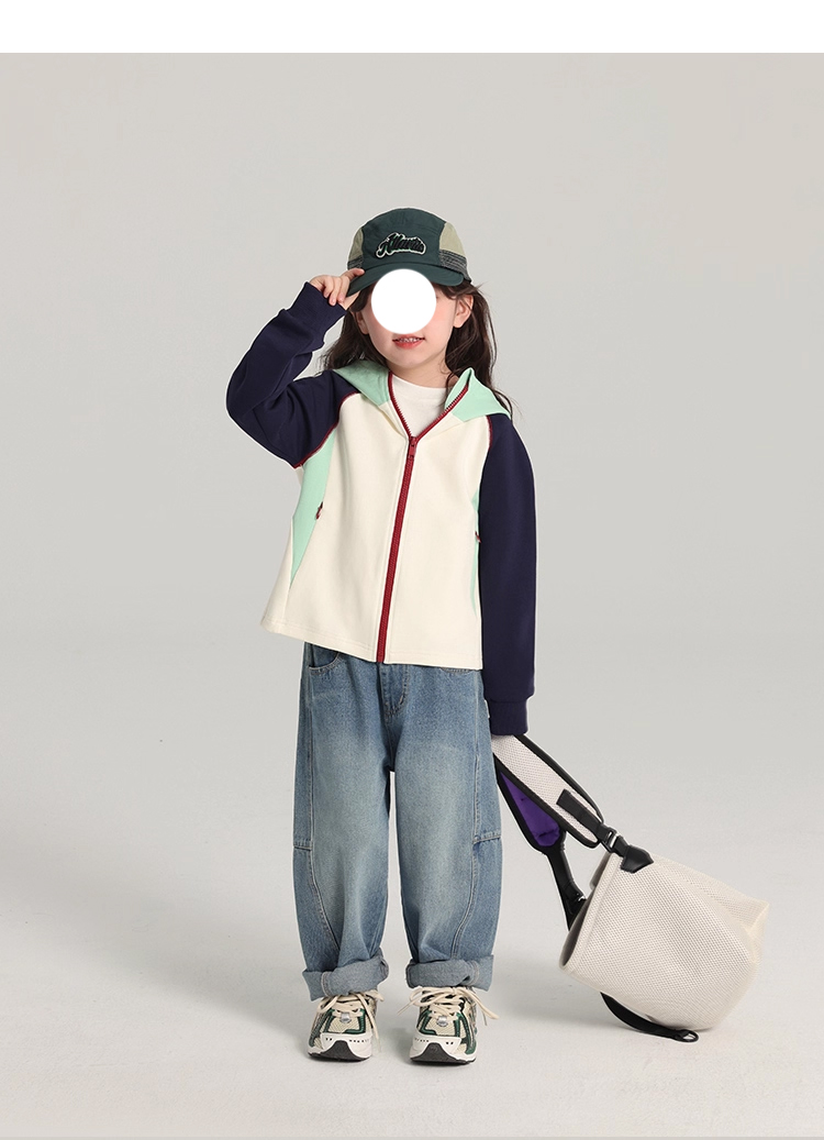 裁缝学苑TH09儿童撞色连帽冲锋外套纸样童装插肩上衣样板打版图纸