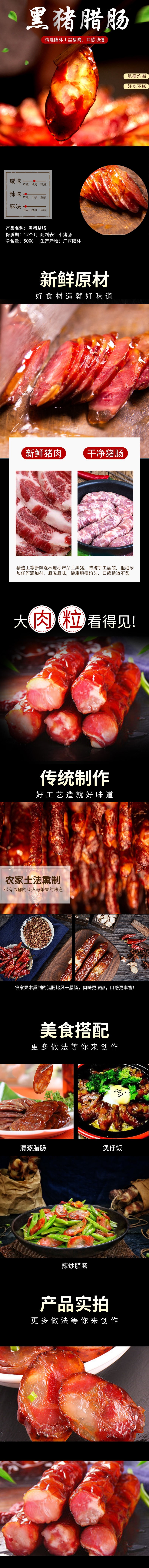黑猪腊肠--广西隆林特产烟熏隆林黑猪腊肠500克