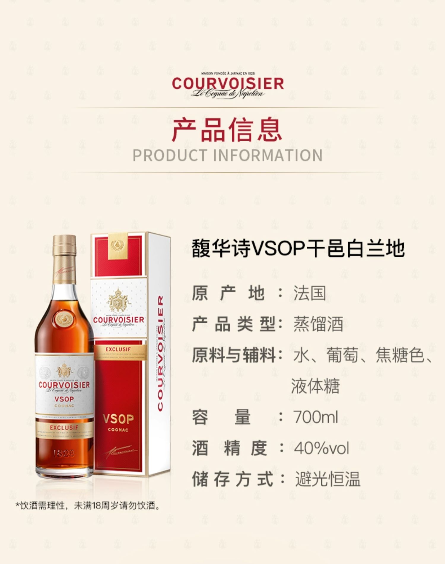 【行货】三得利 法国馥华诗VSOP干邑白兰地洋酒