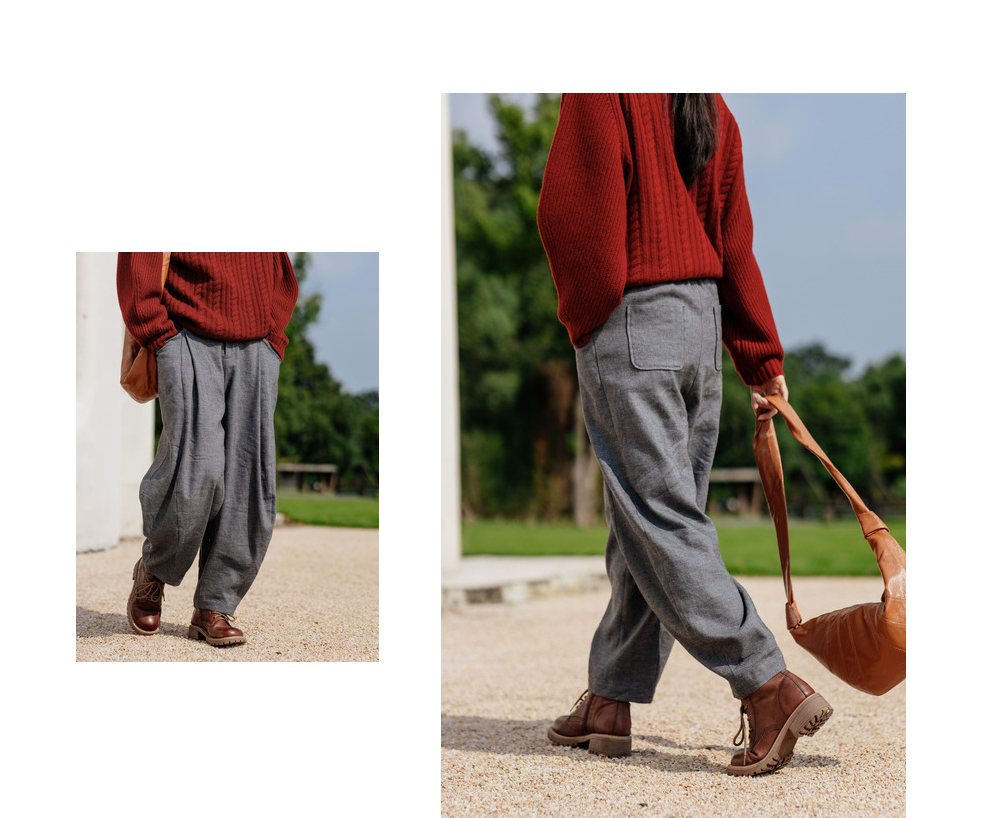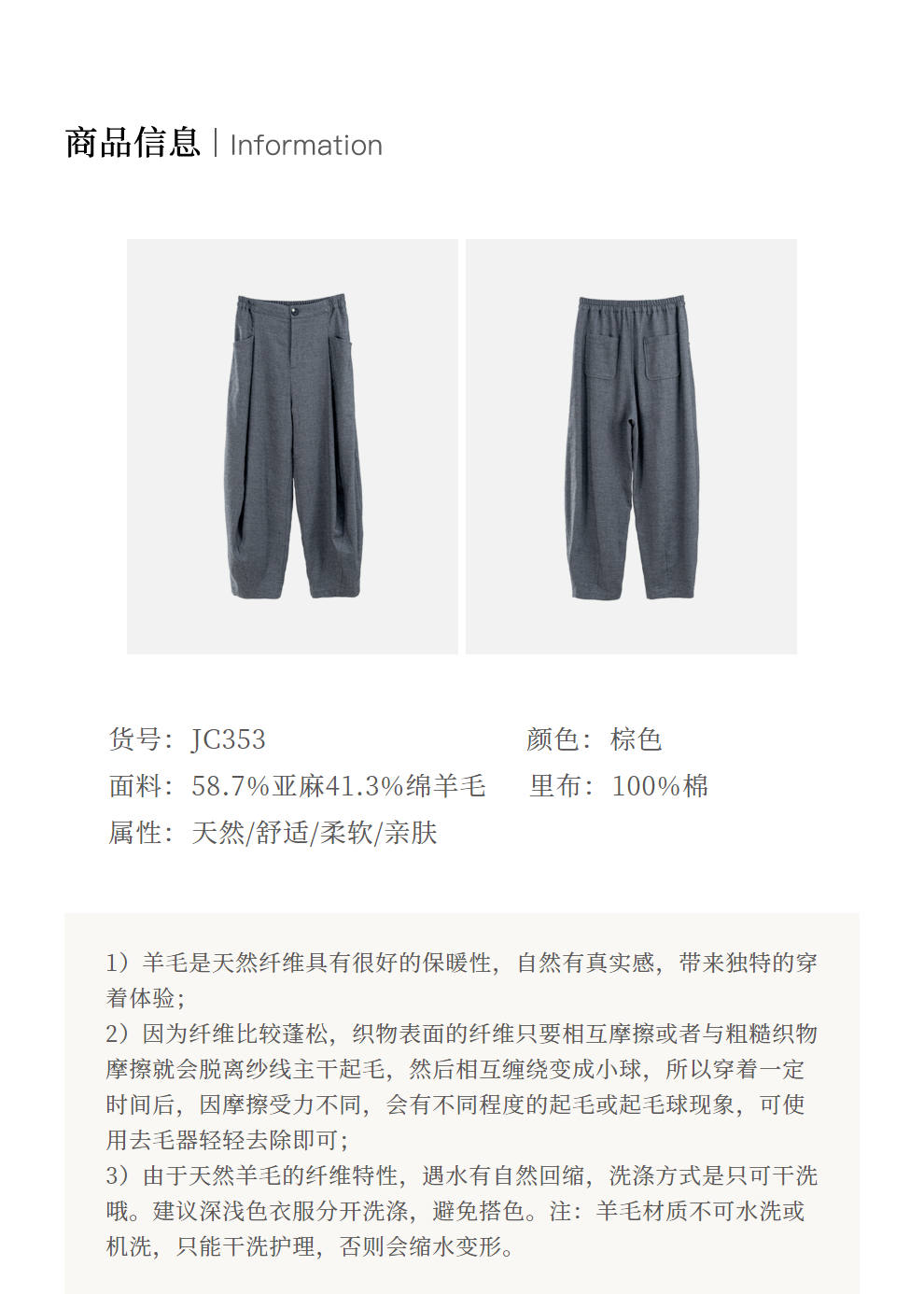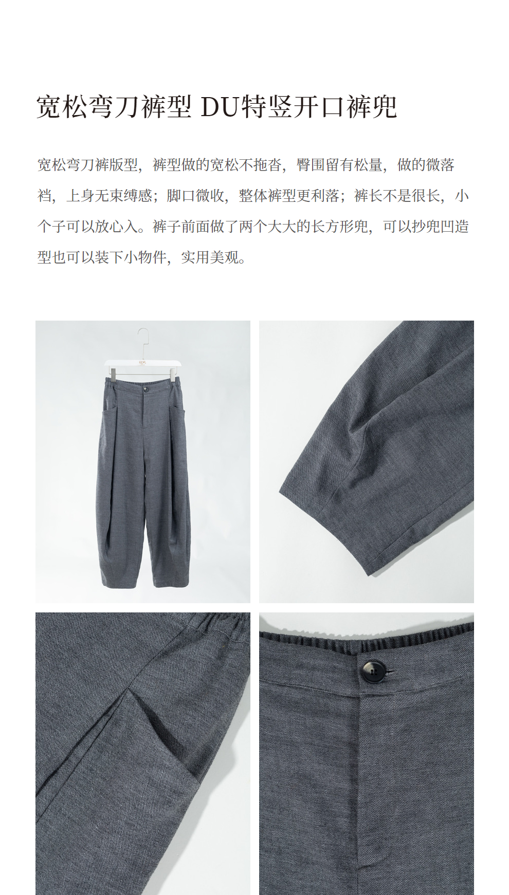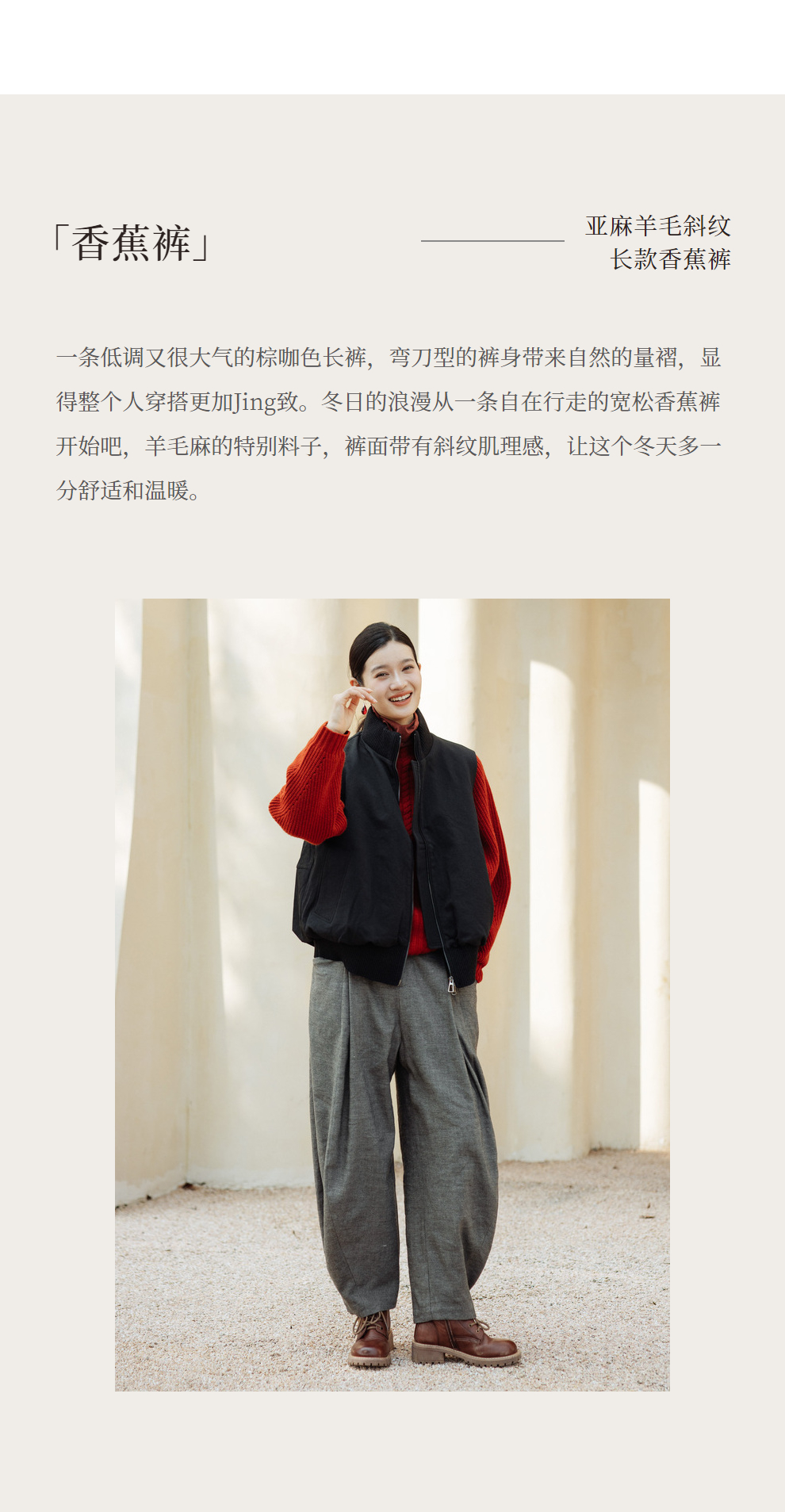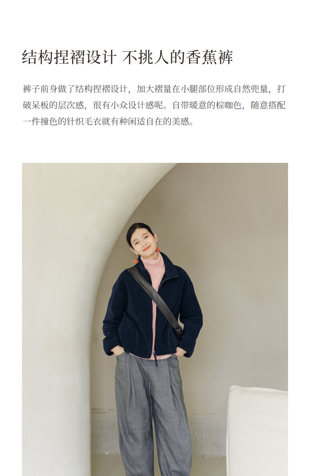 绽放353朵/冬季亚麻羊毛斜纹长款香蕉库宽松弯刀裤型保暖休闲裤