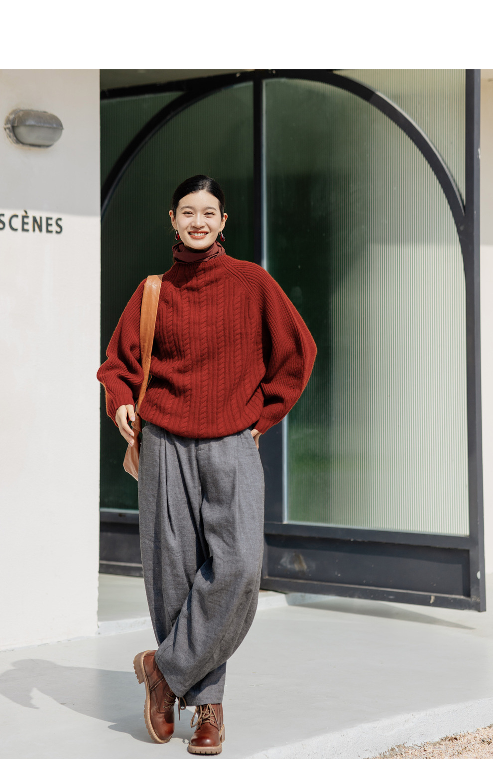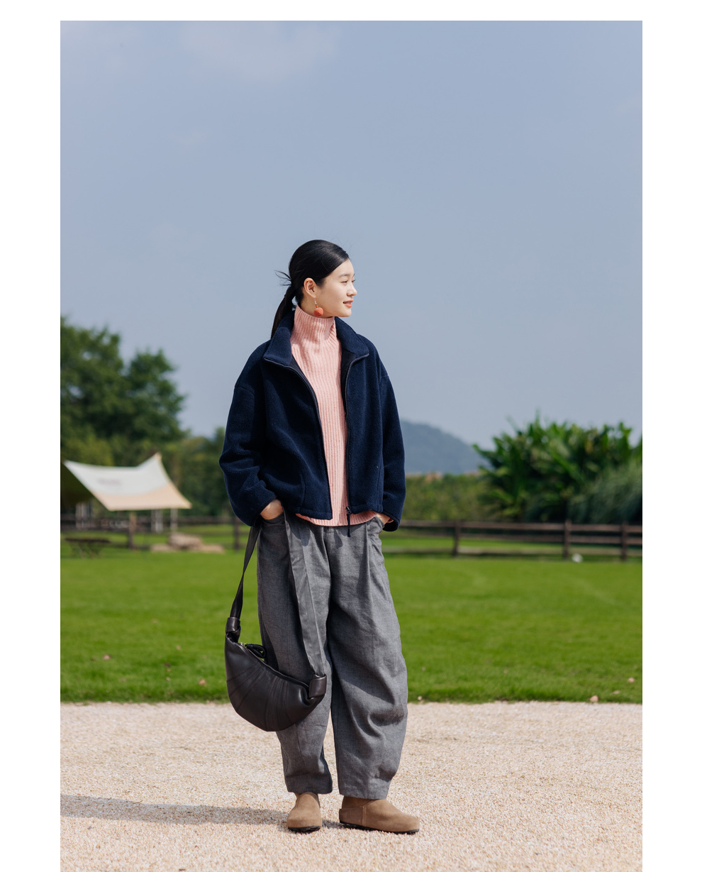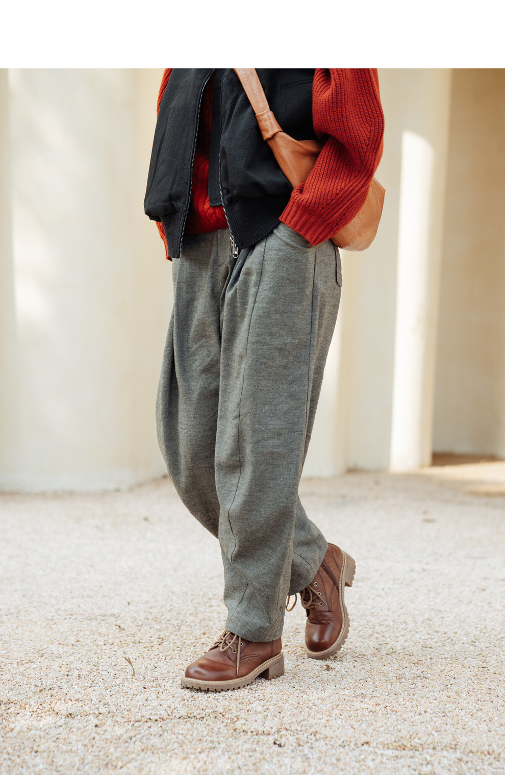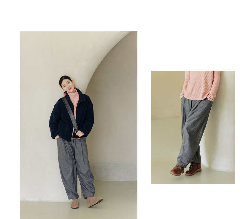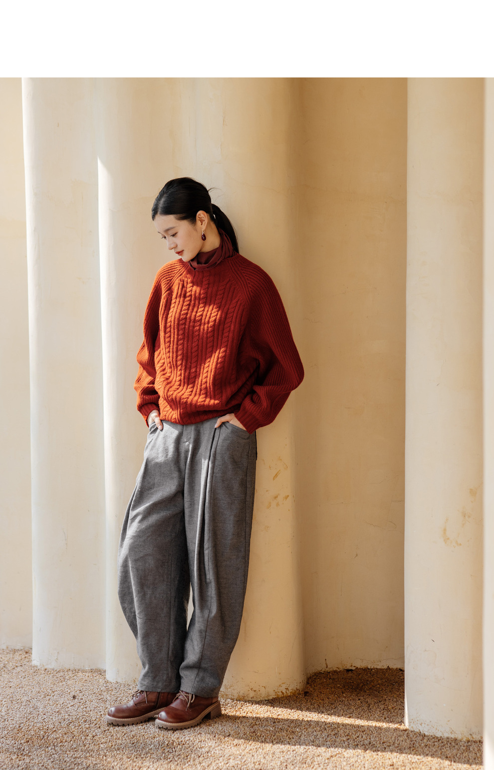 绽放353朵/冬季亚麻羊毛斜纹长款香蕉库宽松弯刀裤型保暖休闲裤