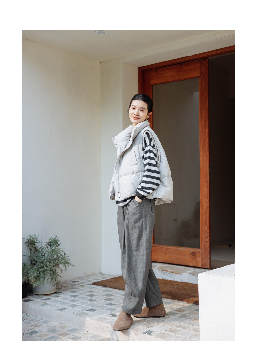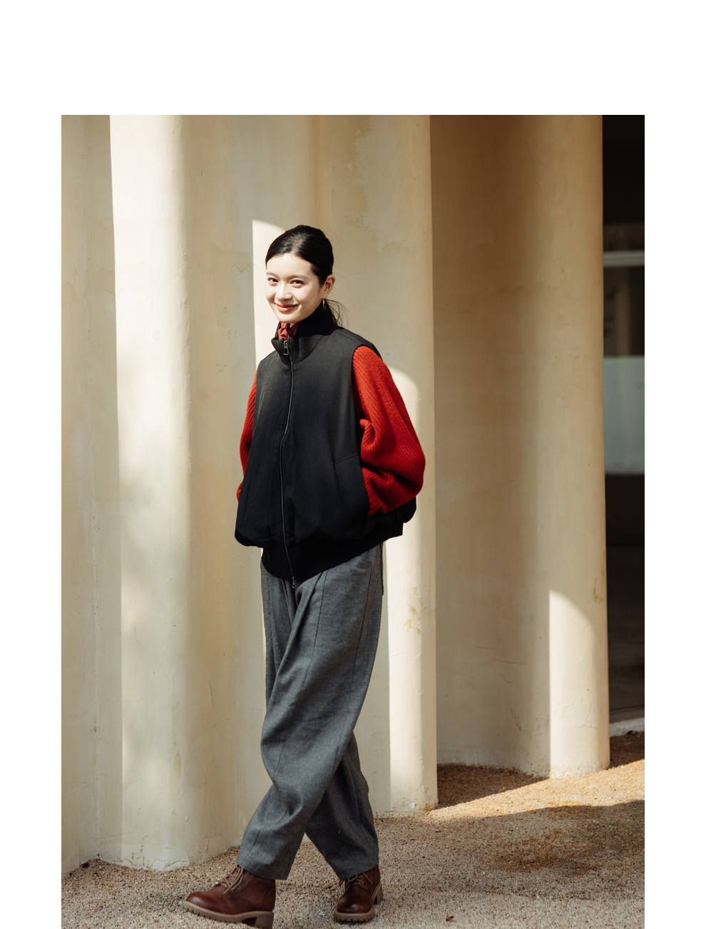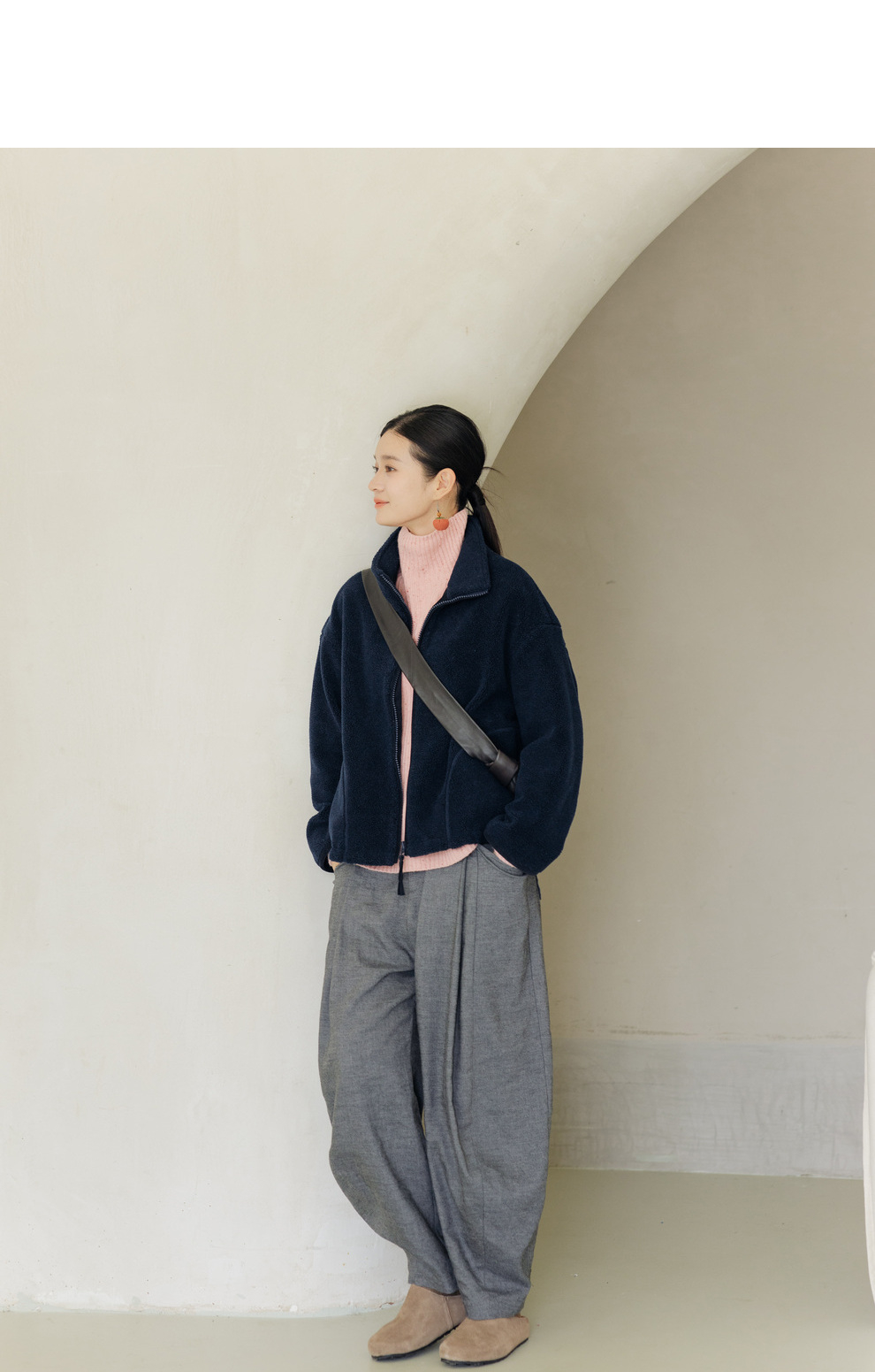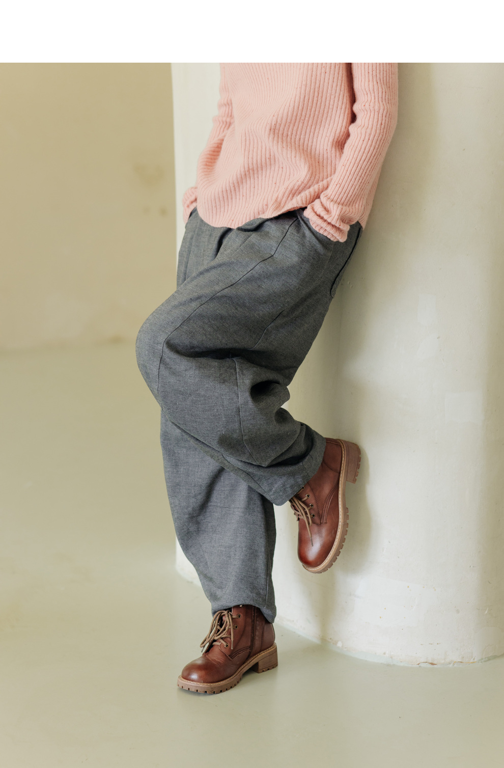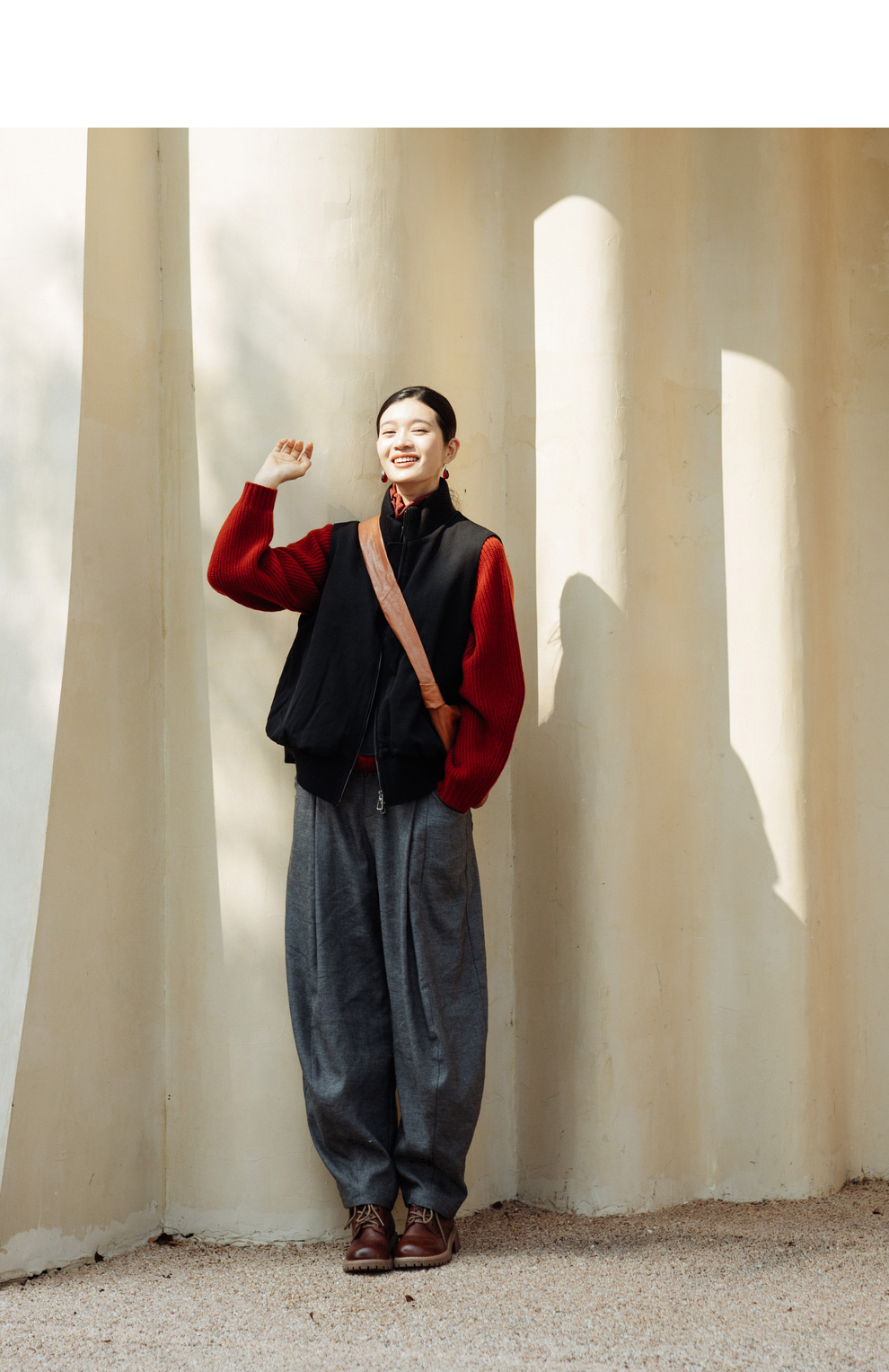 绽放353朵/冬季亚麻羊毛斜纹长款香蕉库宽松弯刀裤型保暖休闲裤