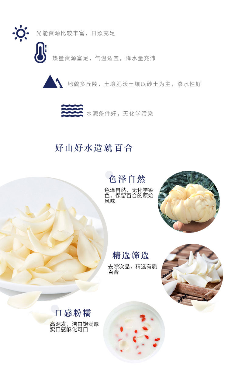 2、百合干制作过程的焯水环节,为了避免百合氧化变黑,会在沸水里放入植物油,冲洗过程中会有油残留在百合片上,也会有味道,但是这个不影响食用。