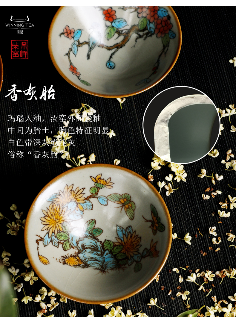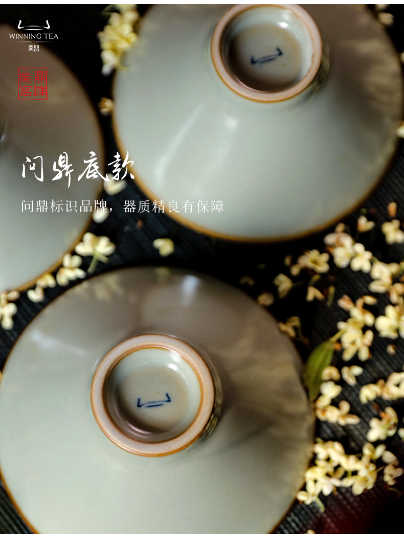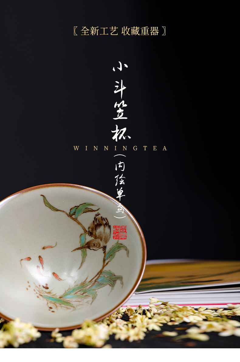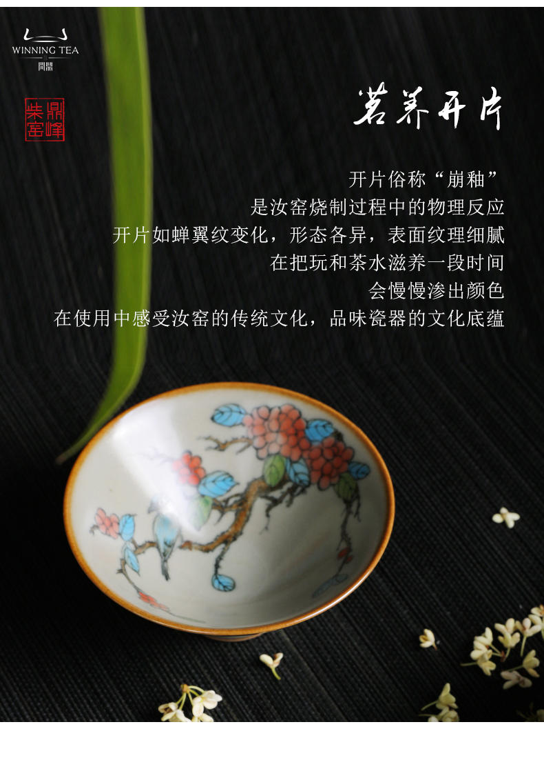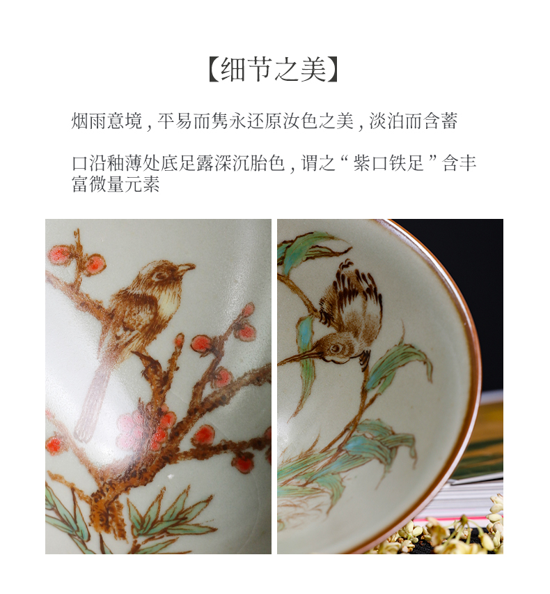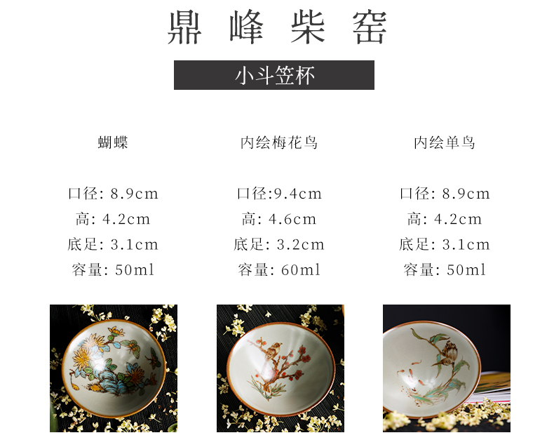 问鼎汝瓷鼎峰柴窑小斗笠杯(蝴蝶)(内绘梅花鸟) (内绘丹鸟)(缺货)