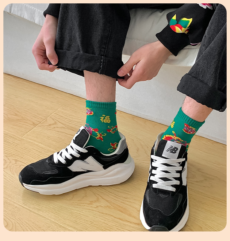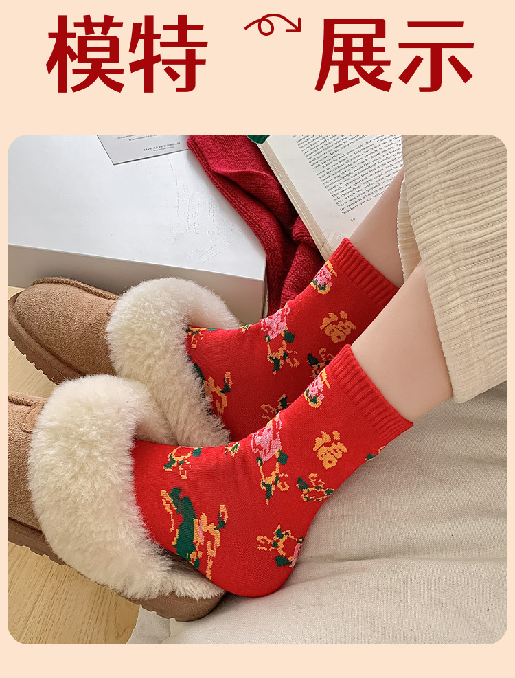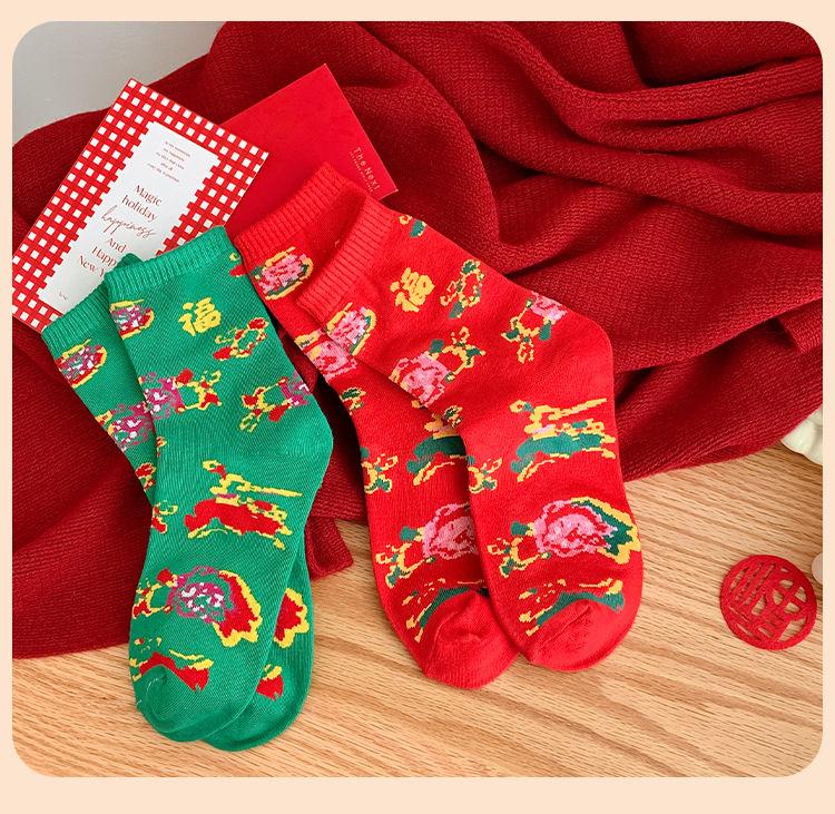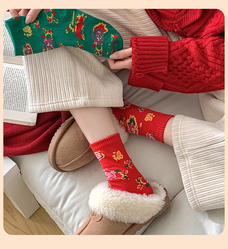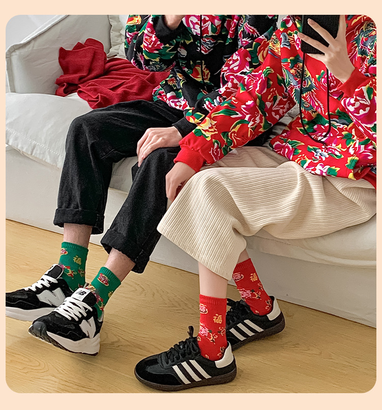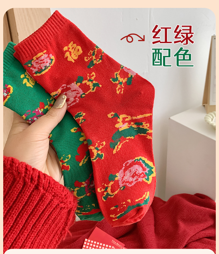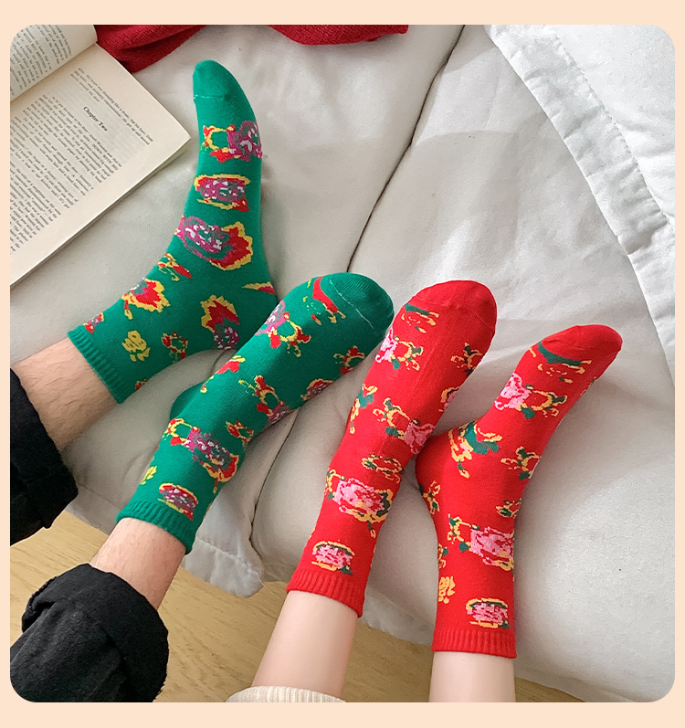 【秒杀❗️19.9抢8双🔥东北风福袜】穿红袜行鸿运,红绿相间配色,感受满满的东北风,高密织造工艺,保暖不臃肿,秋冬情侣网红潮袜新年潮流男女款保暖耐穿棉QQ