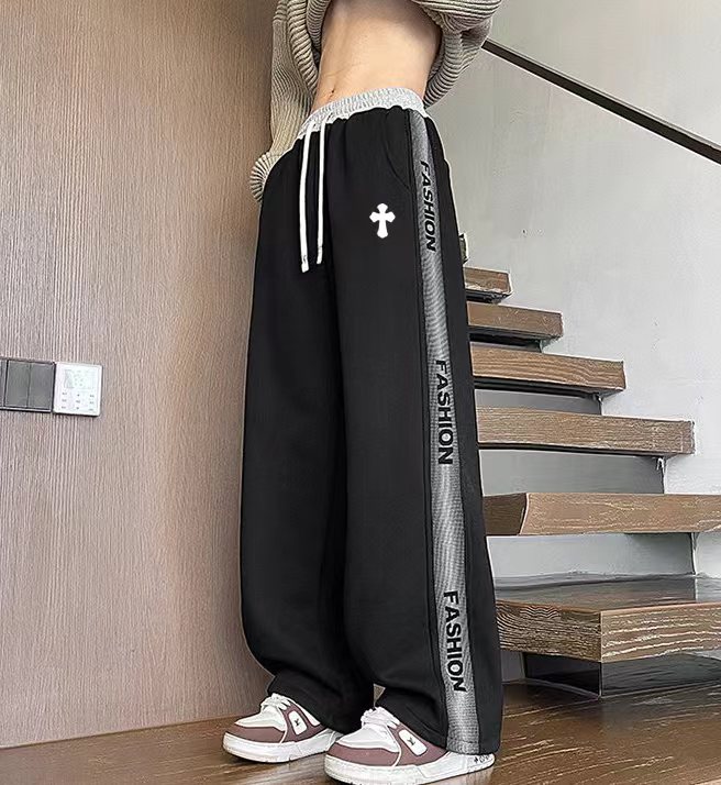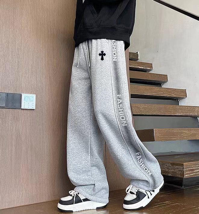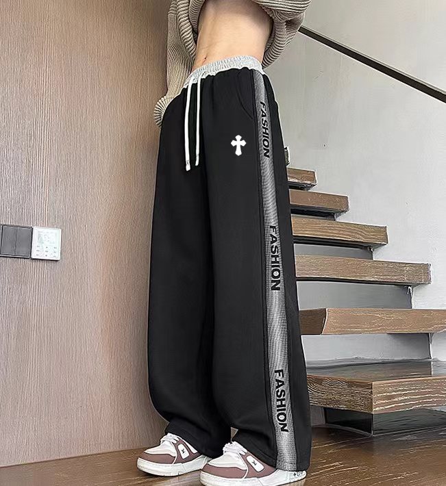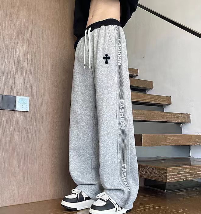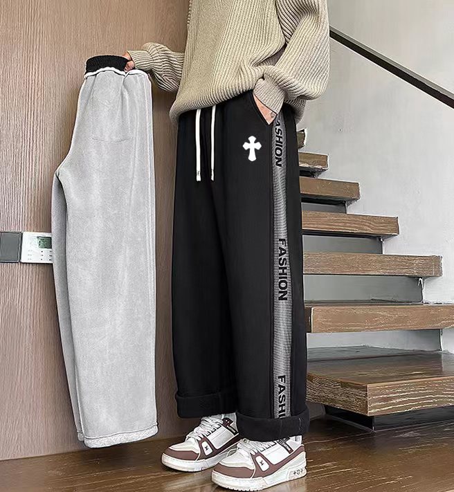 25ss新款水洗磨毛刺绣串标相拼加绒加厚休闲运动裤 裤子版型宽松 细节丸美 全棉针织加绒加厚面料耐磨耐脏 立体裁剪宽松版型 进口机器印花反复水洗不会开裂脱落 男女同款情侣款