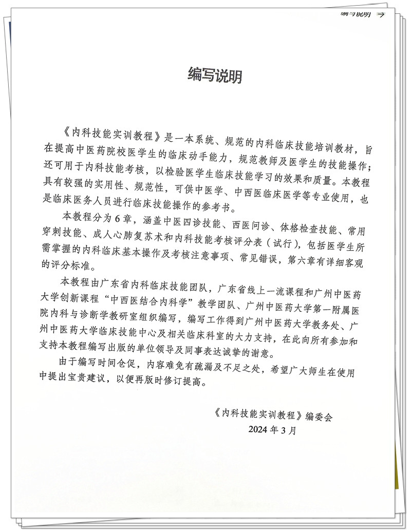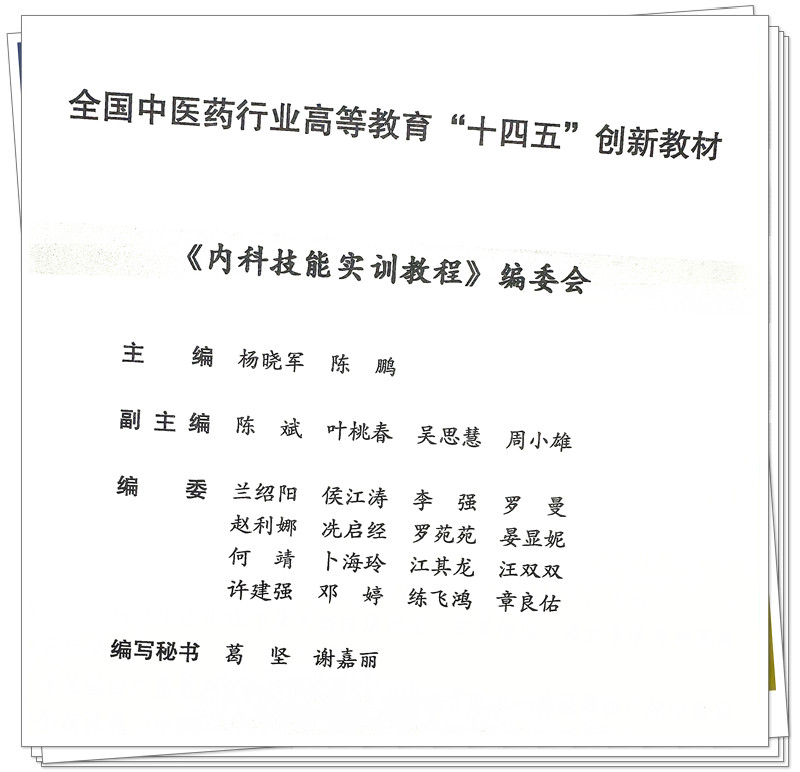 内科技能实训教程 杨晓军 陈鹏 主编 中国中医药出版社 全国中医药行业高等教育十四五创新教材
