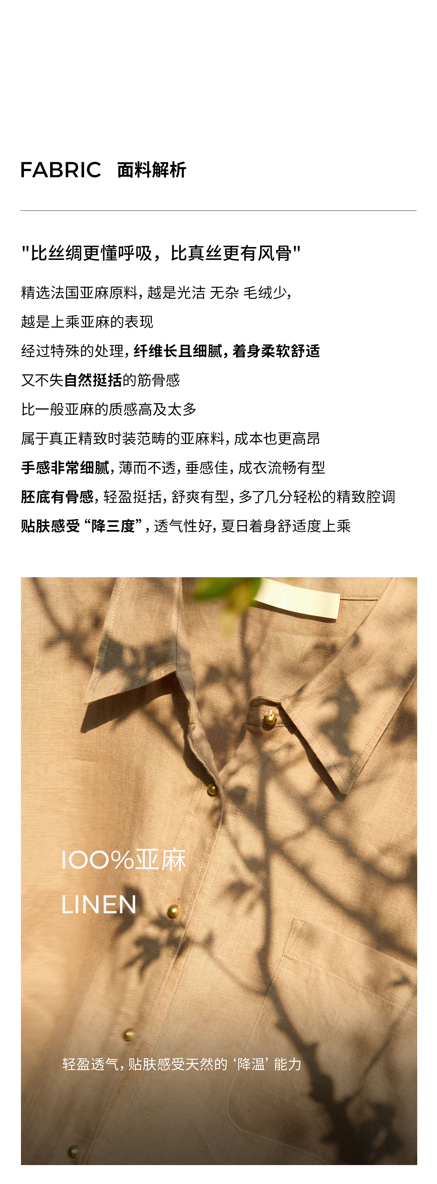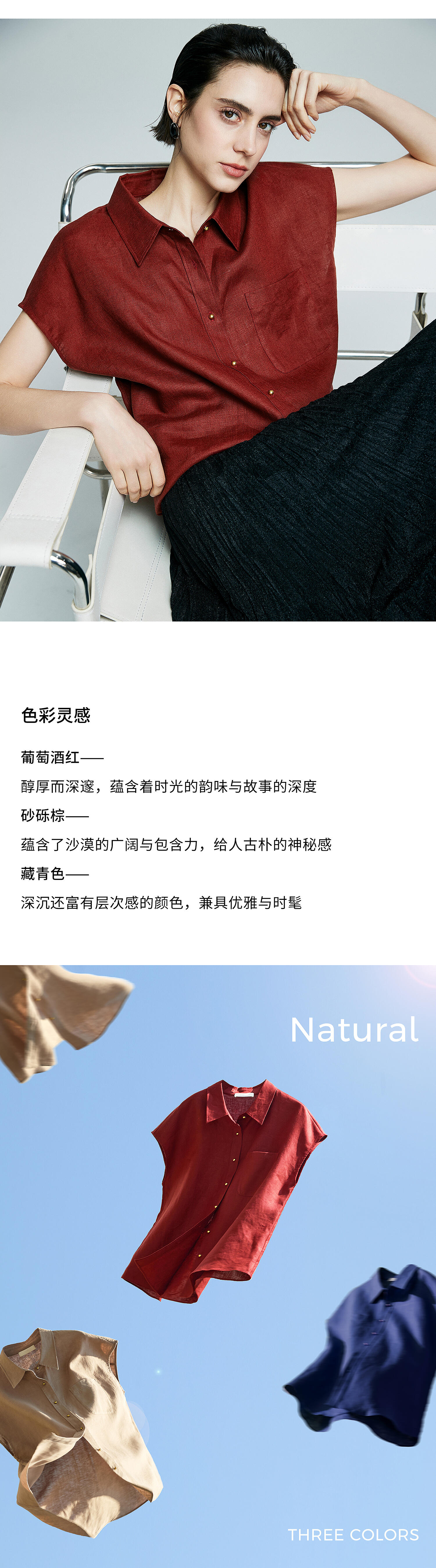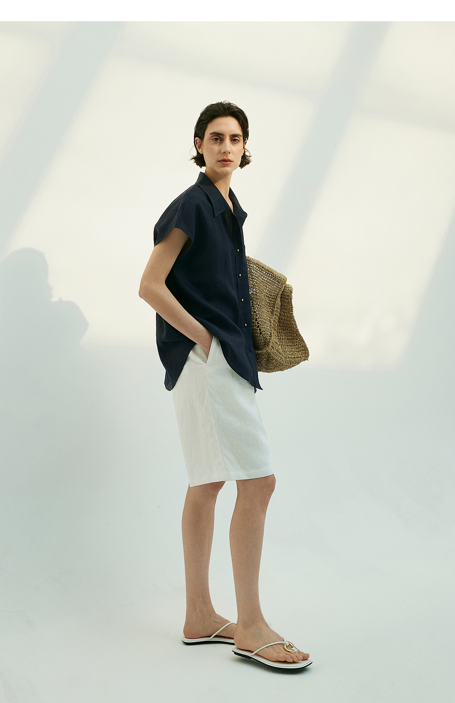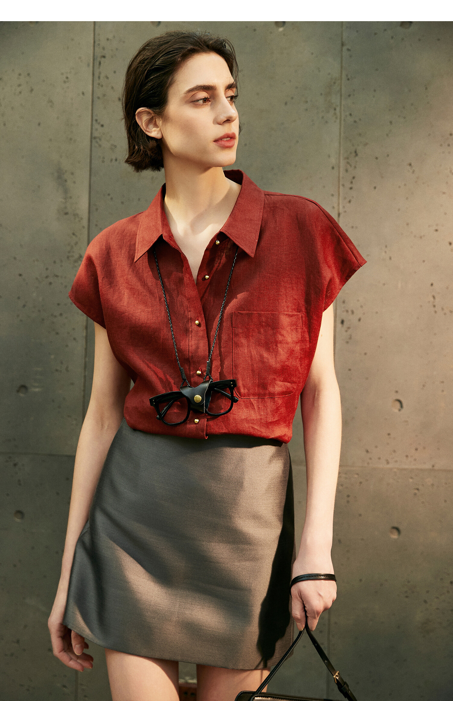 棉仓363604012-初棉无袖口袋小金扣宽松版亚麻衬衫