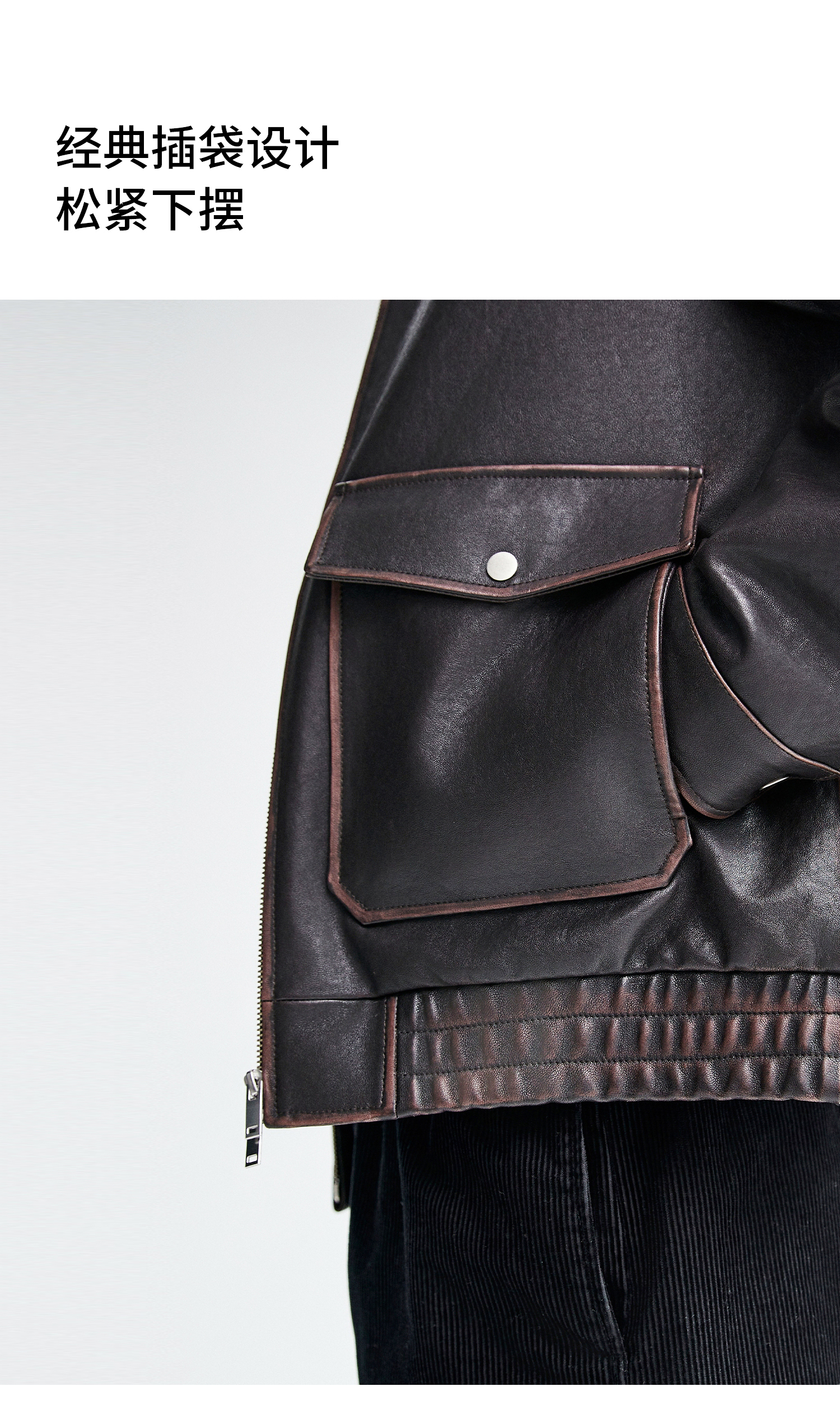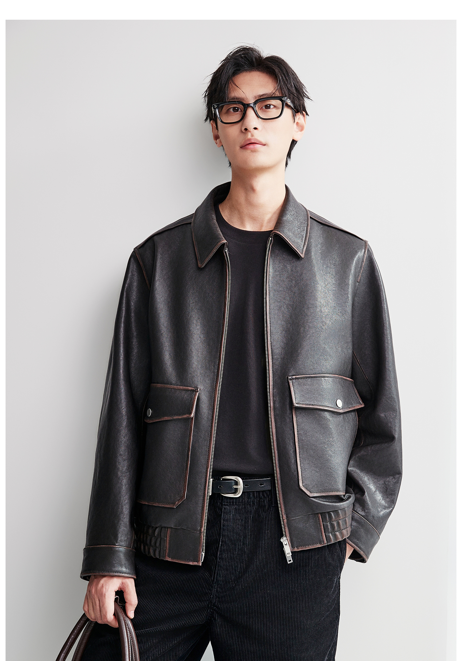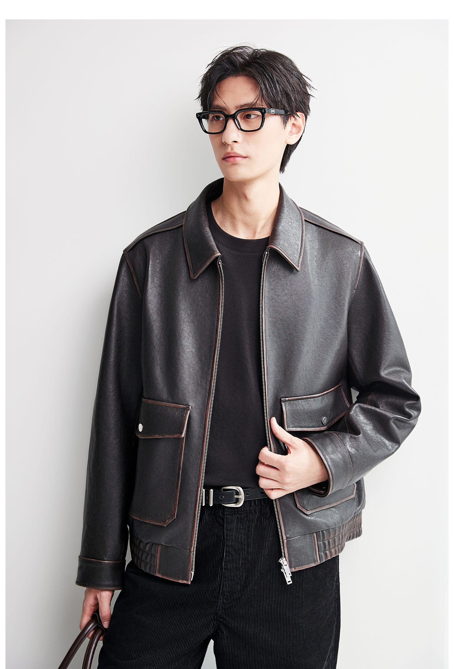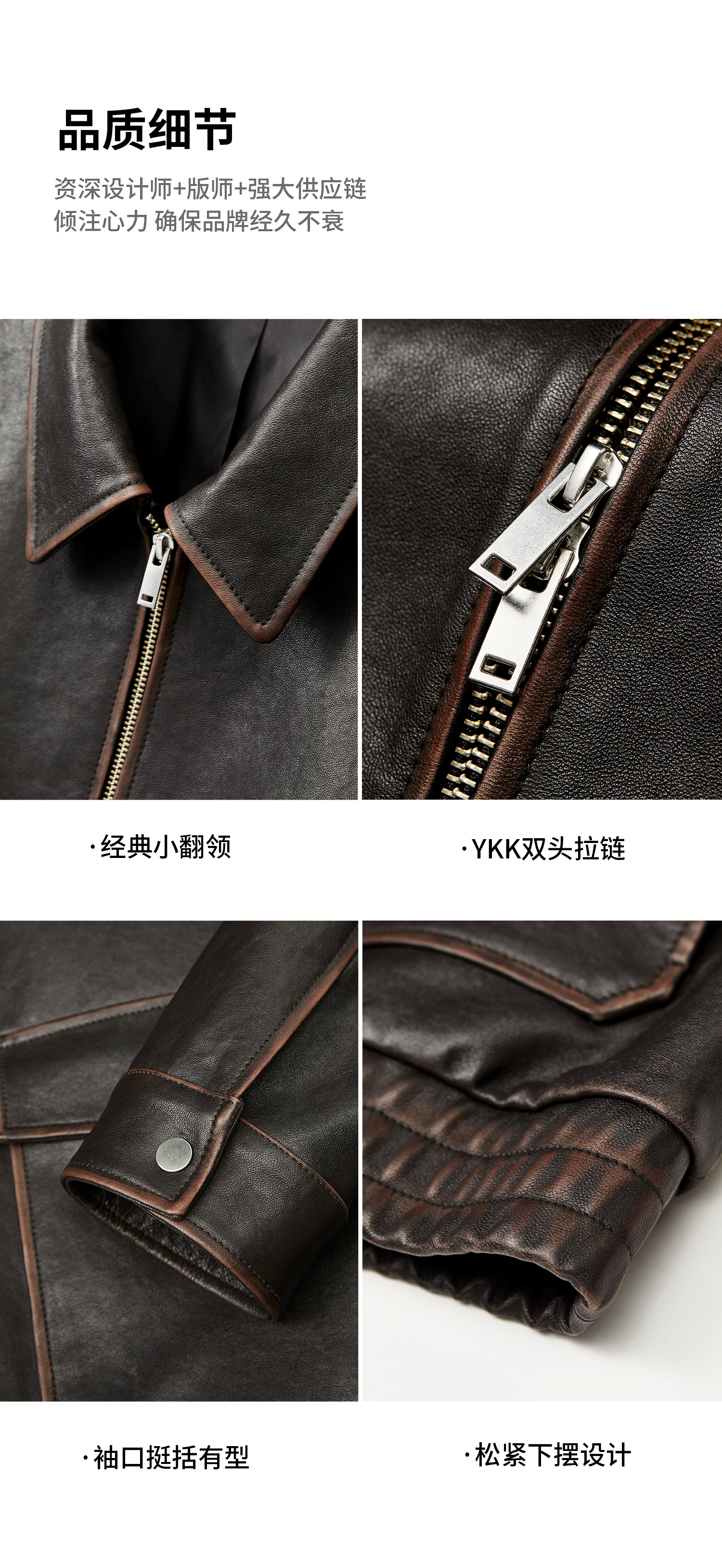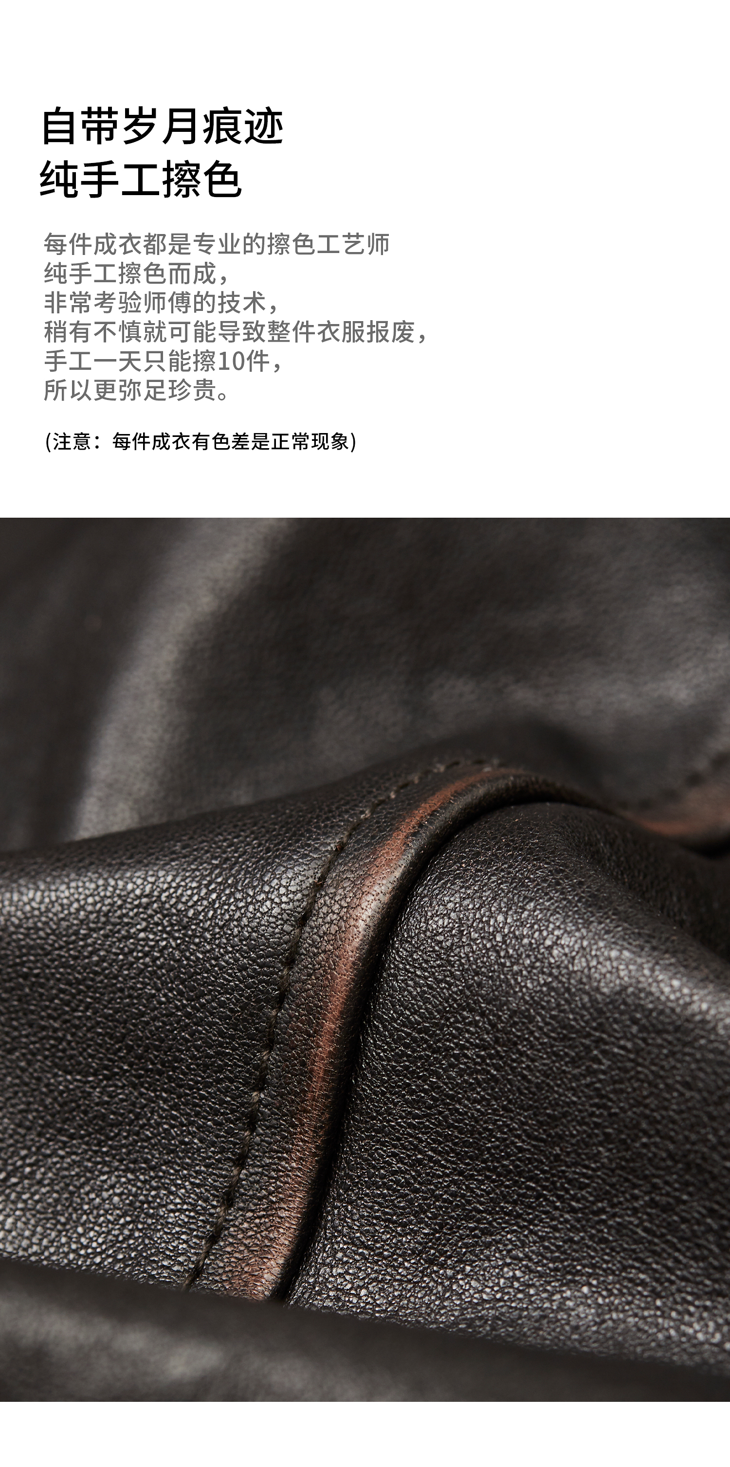 棉仓366827002-7系复古老钱风擦色底特律皮夹克男 秋冬绵羊皮翻领真皮皮衣